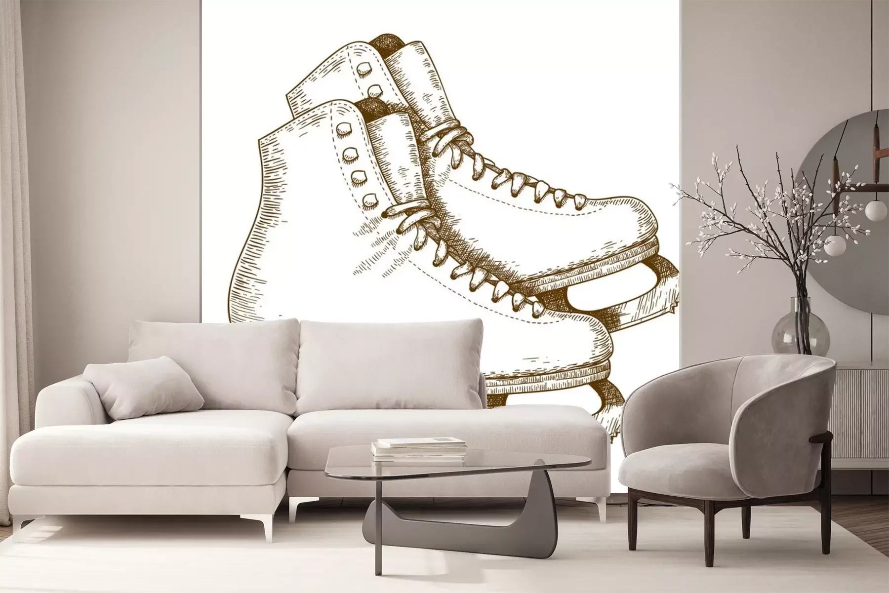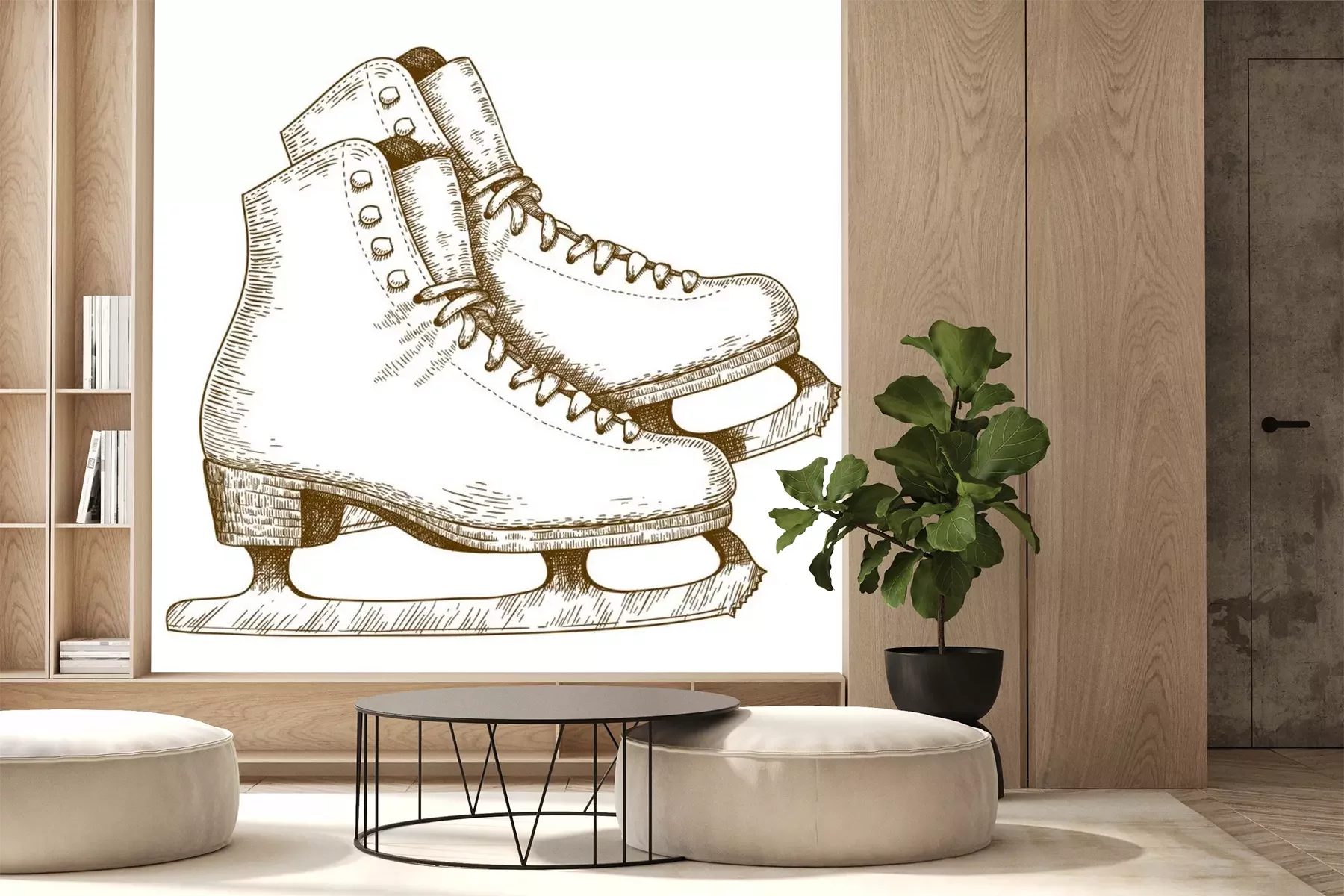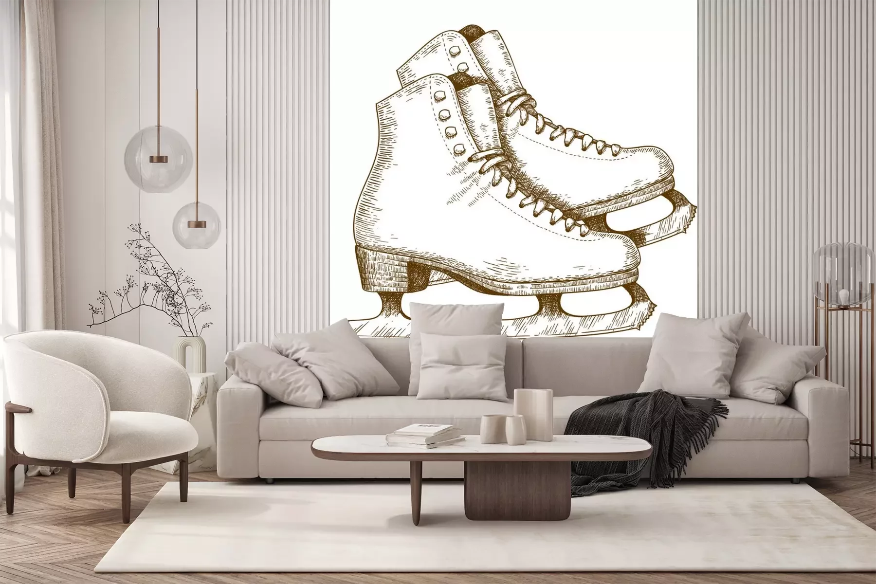 Sticker Gravurillustration von Eislaufschuhen und -klingen