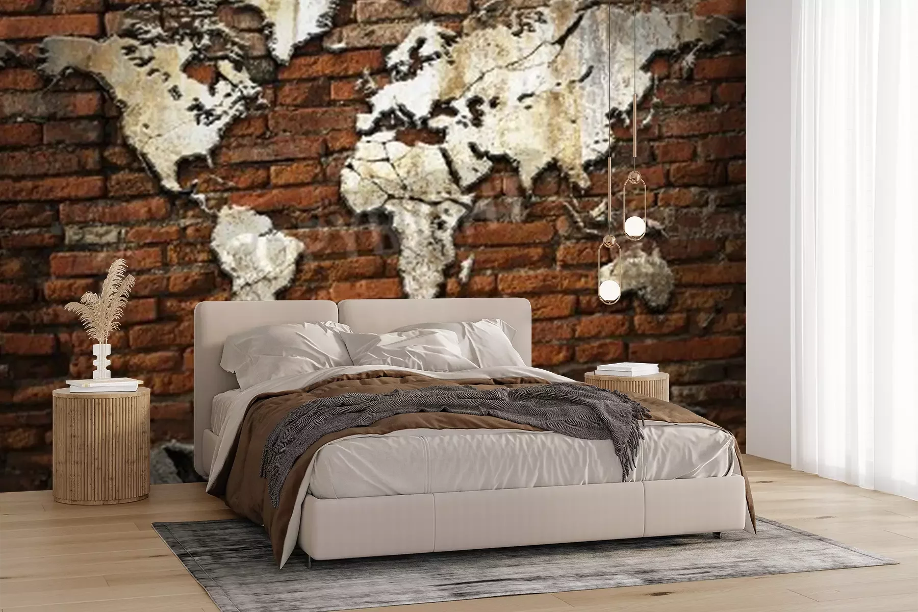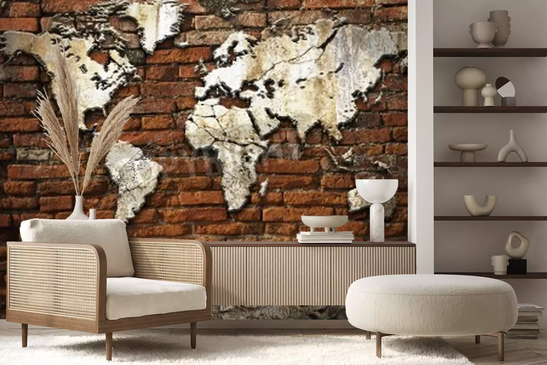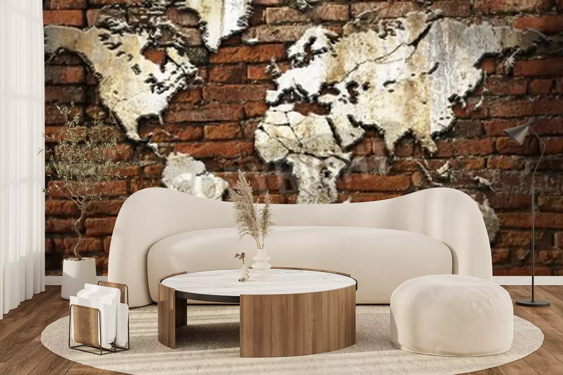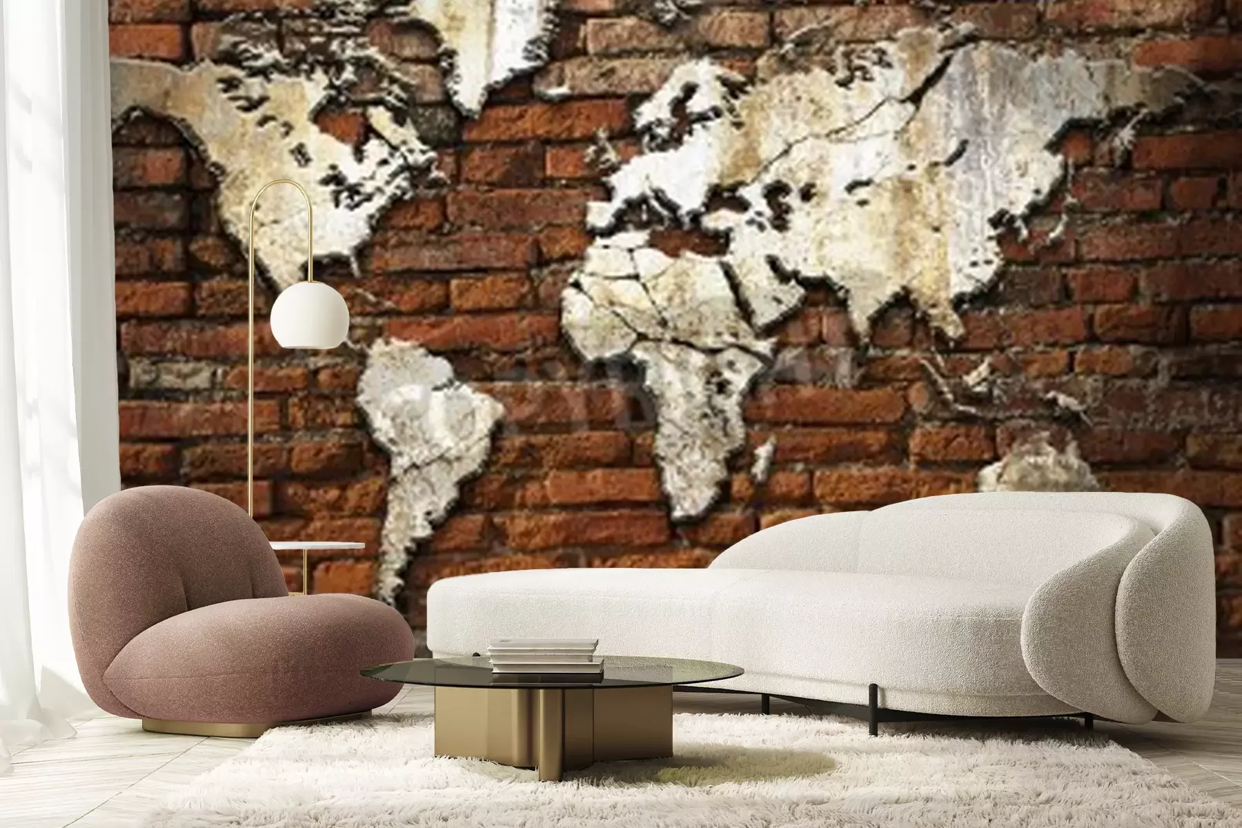 Sticker Grunge konkrete Weltkarte auf alter Mauer