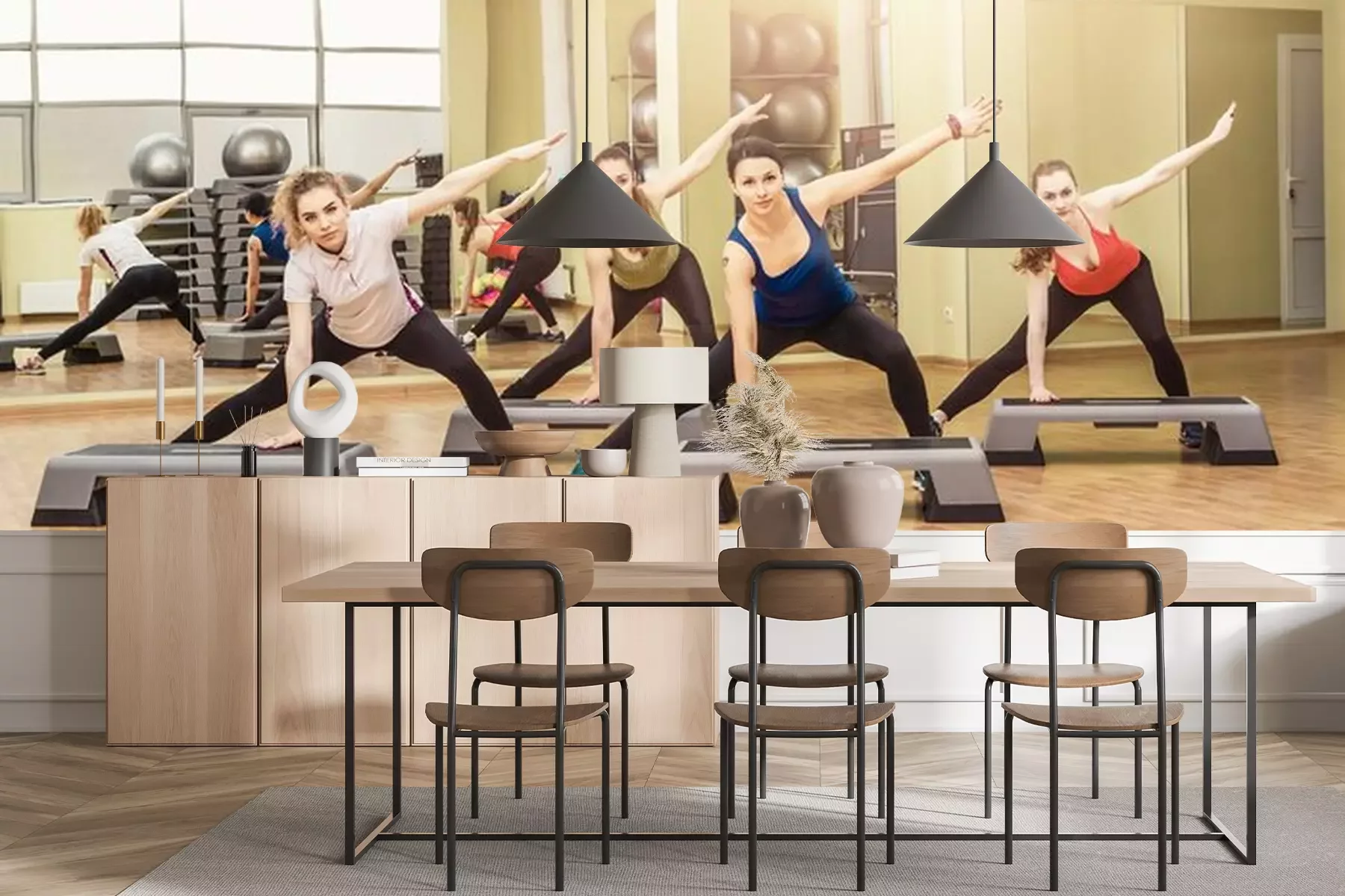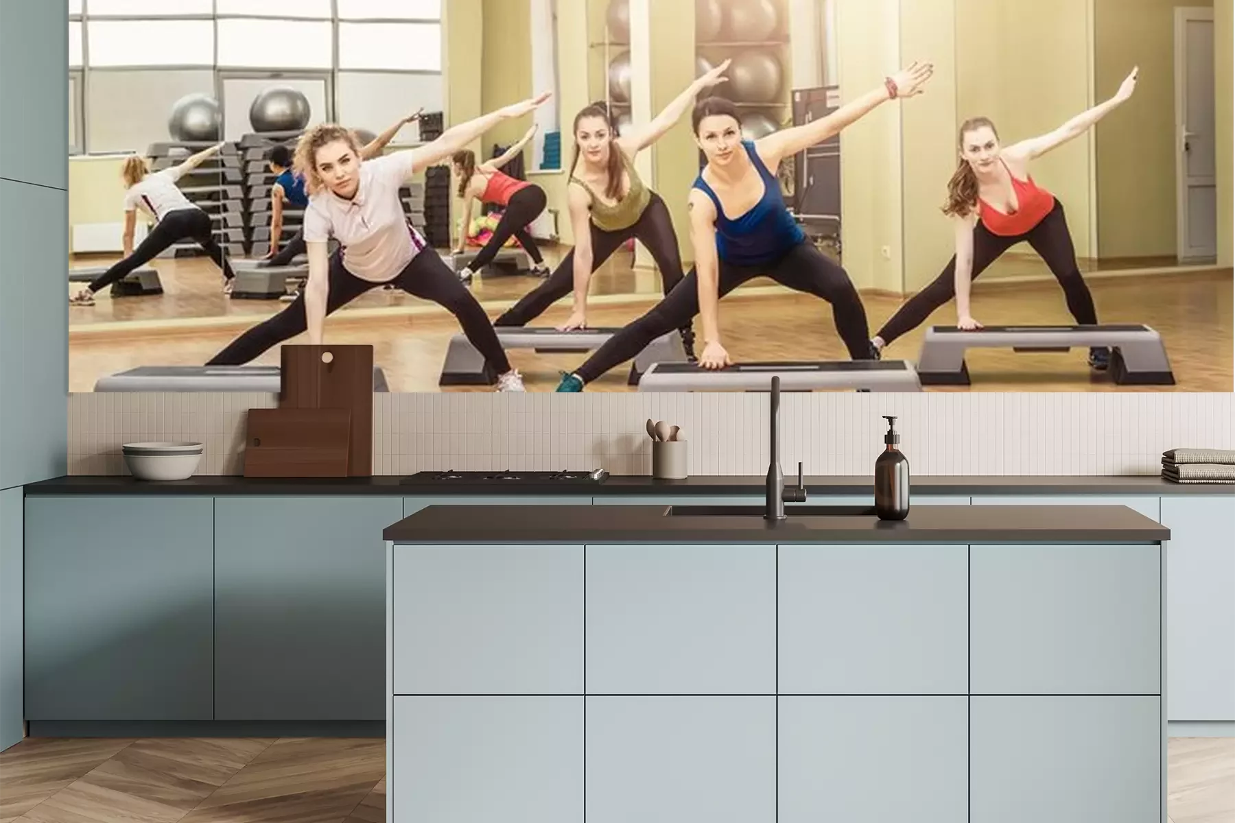 Sticker Gruppe von Frauen, die Step-Aerobic