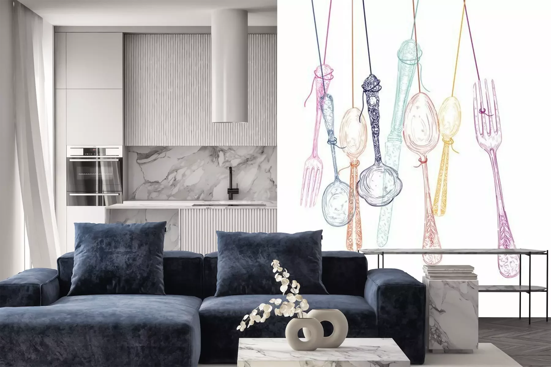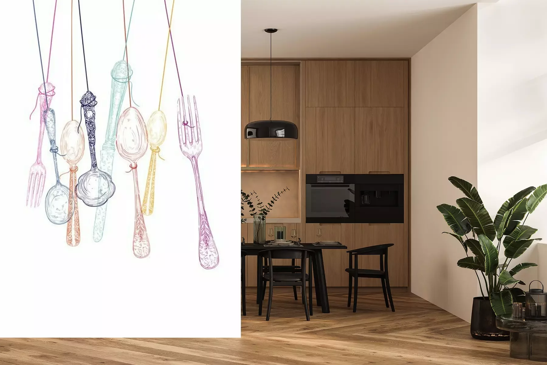 Besteck auf Neon-HintergründenFototapete