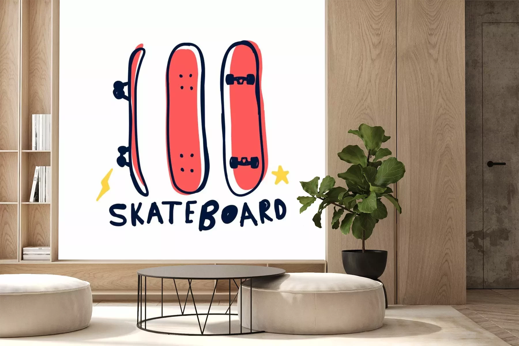 Sticker Hand drawing skateboards and hand writing slogan  illustration vector.