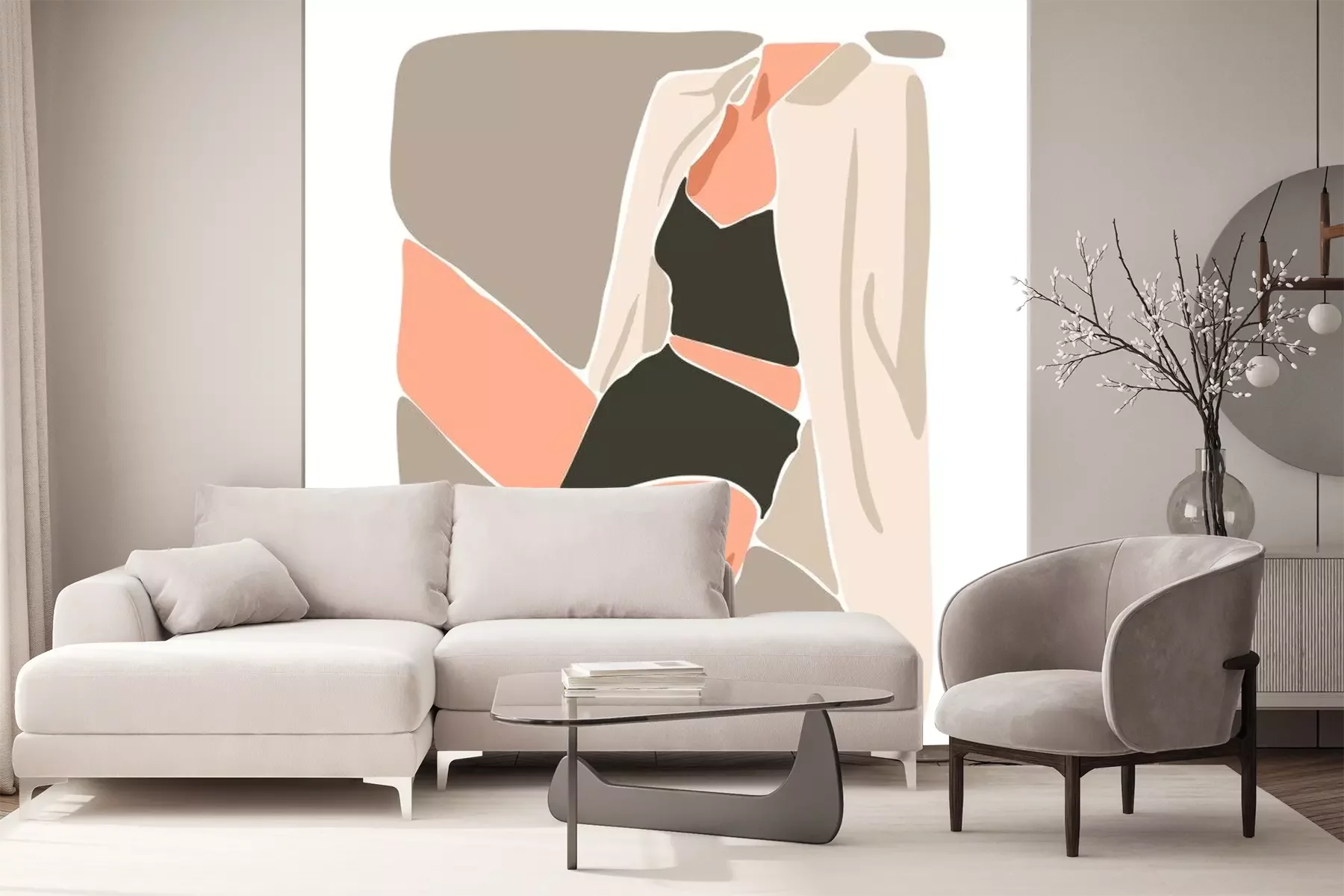 Sticker Hand drawn vector abstract flat graphic contemporary aesthetic fashion illustration with bohemian,beautiful portrait of modern female in simple trendy minimal style isolated on pastel background