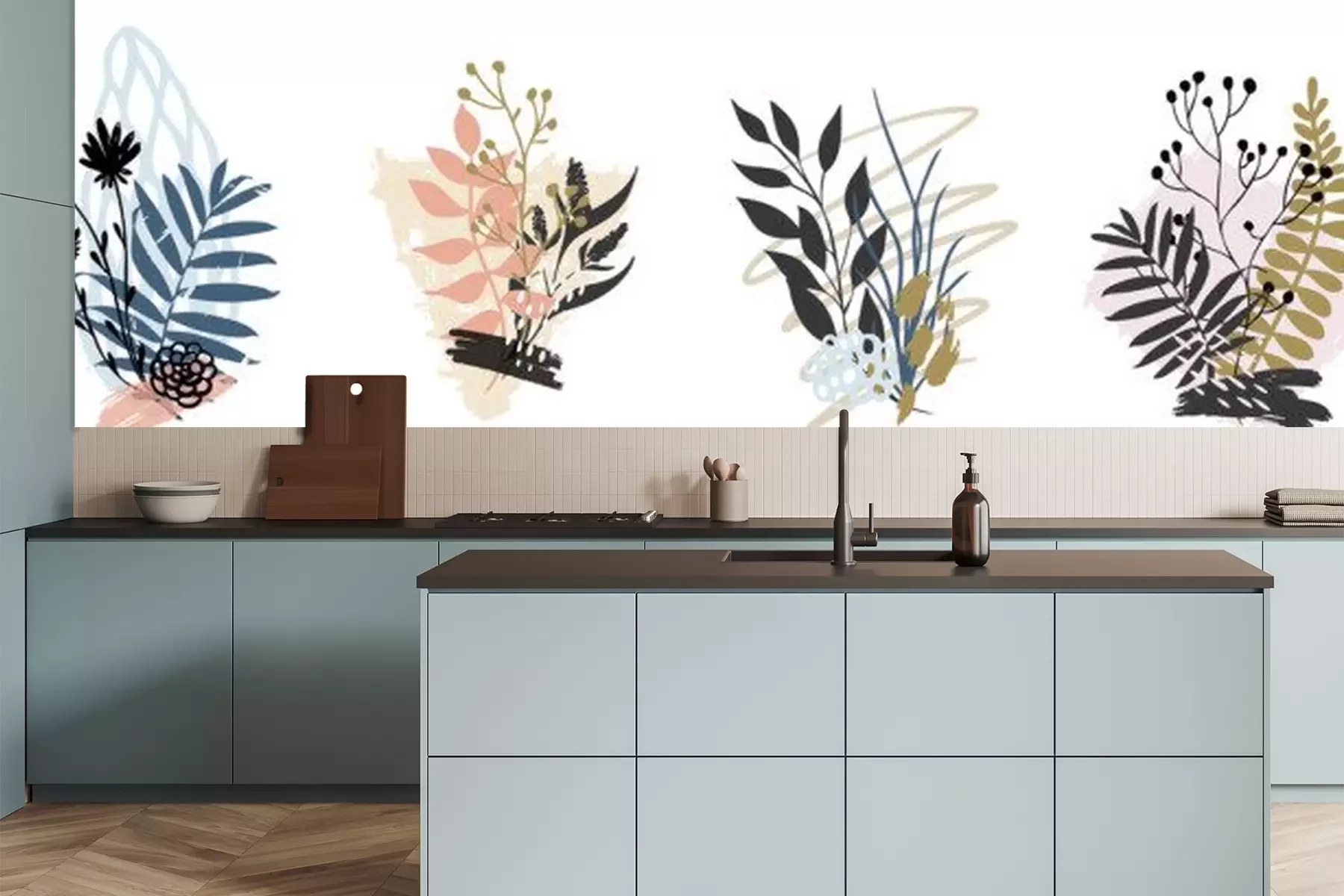 Sticker Hand drawn vector abstract tropical leaves background isolated on white. Vector