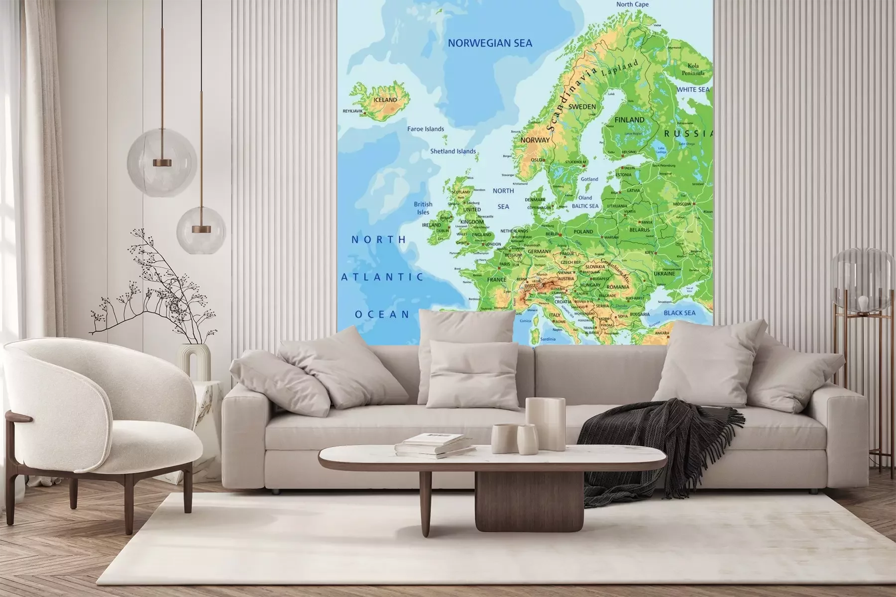 Sticker Hochdetaillierte physische Europa-Karte mit Beschriftung