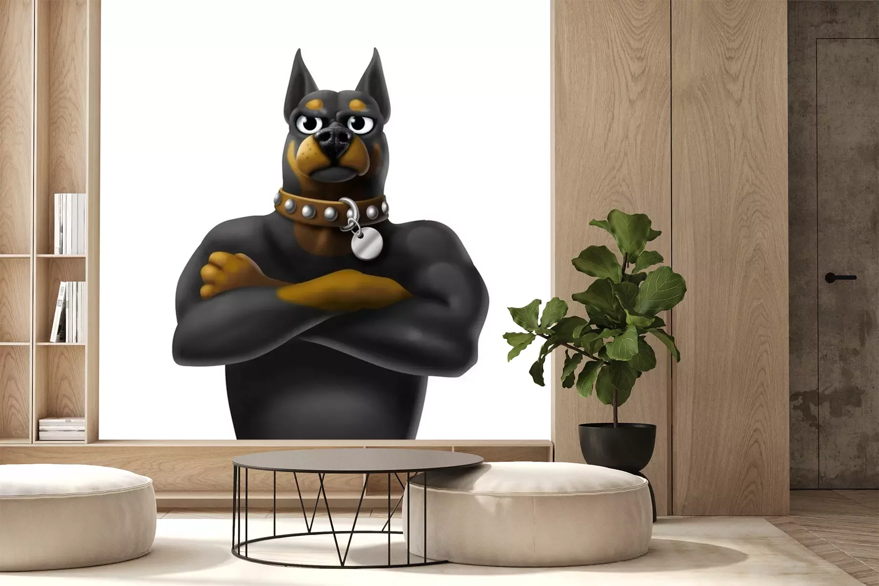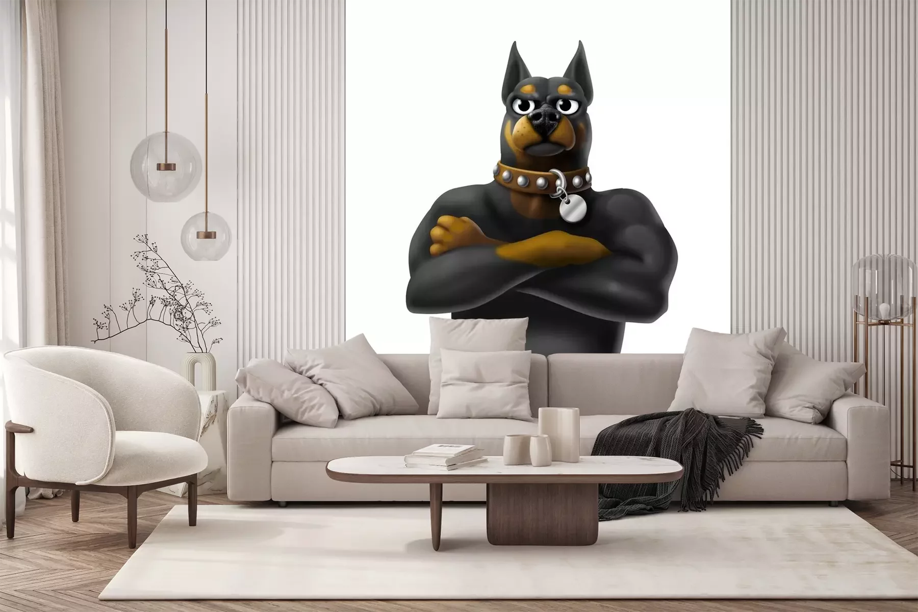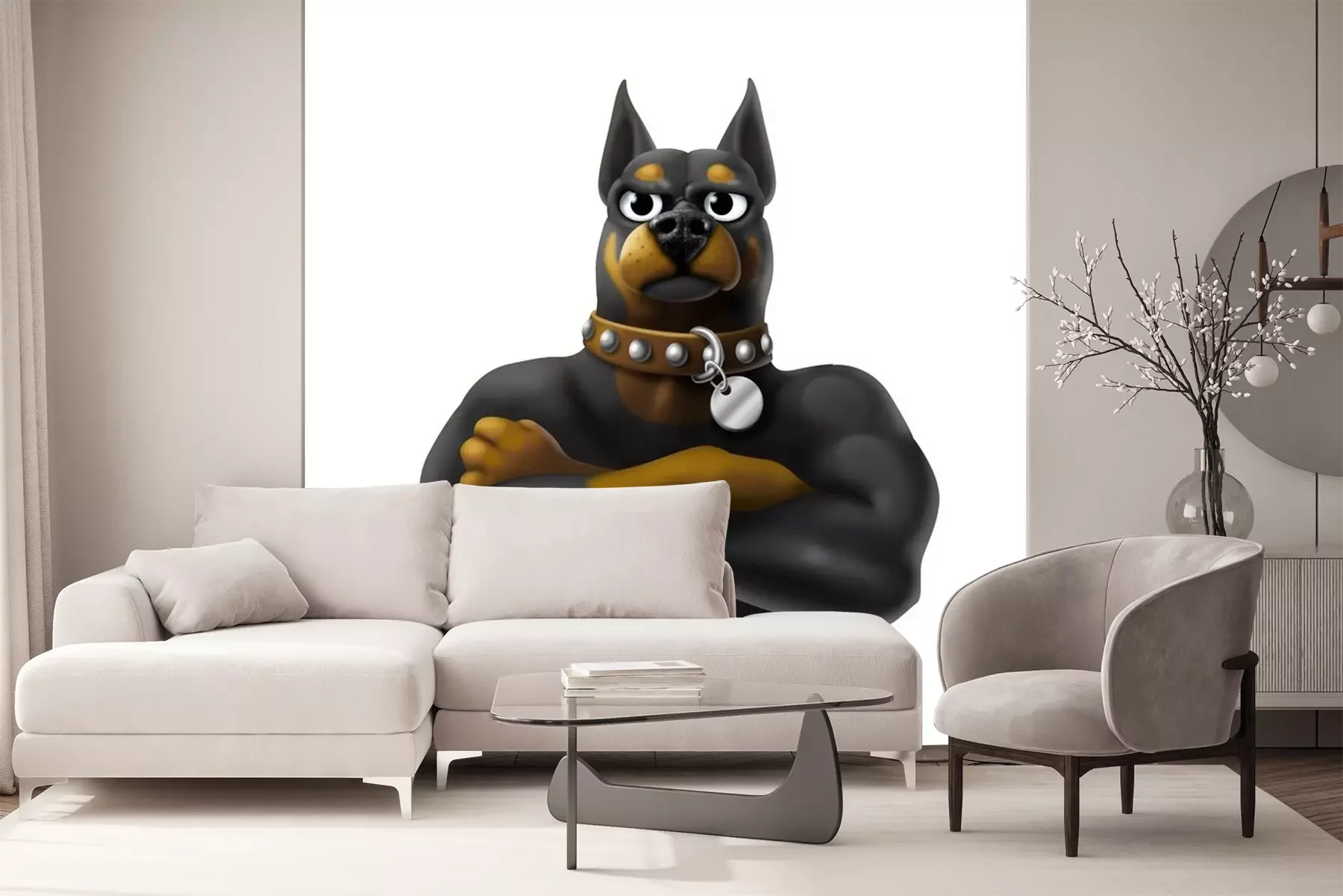 Sticker Hunde Grafik eines großen muskulösen Hundes mit Halsband