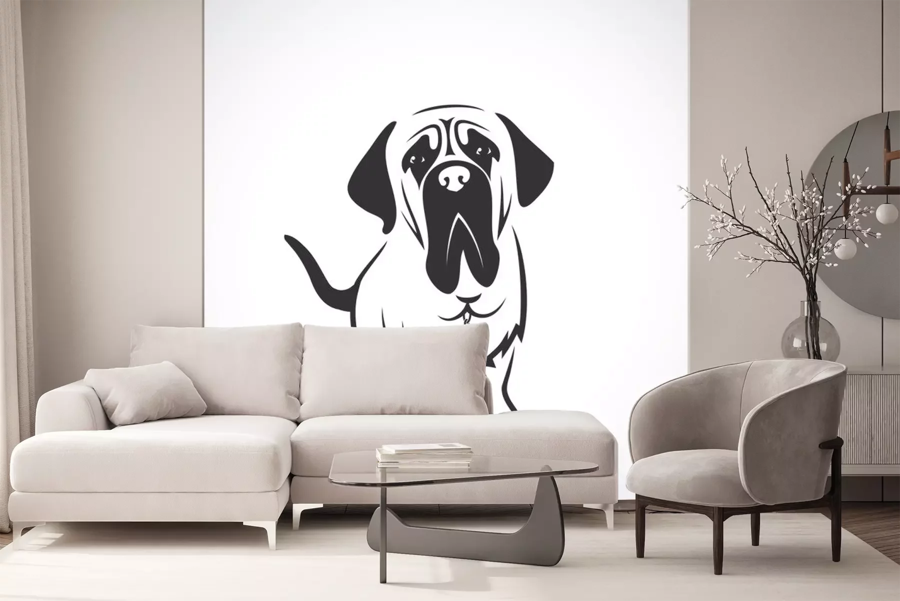 Sticker Hunde minimalistische Grafik Mastiff mit schwarzen Ohren