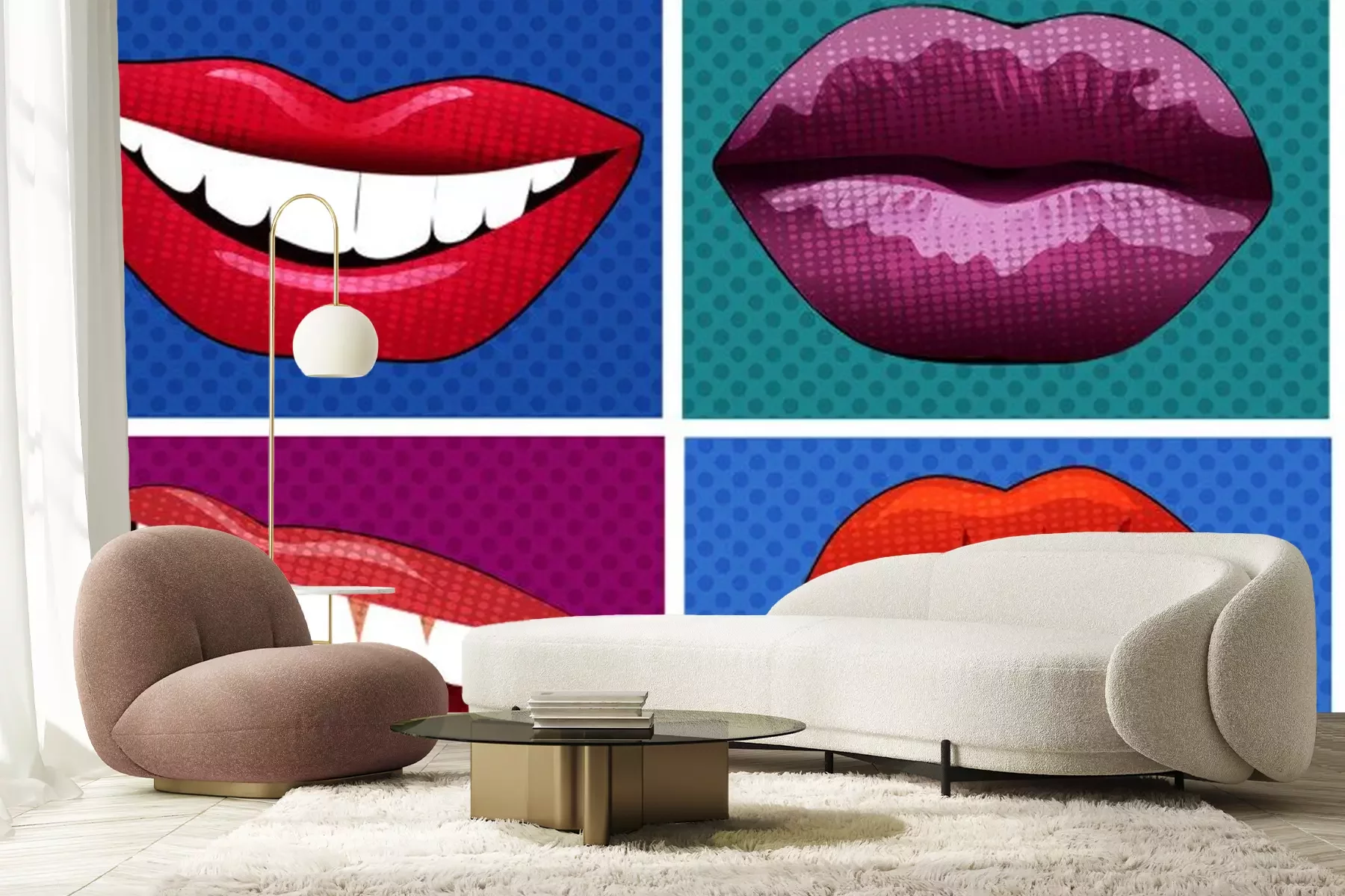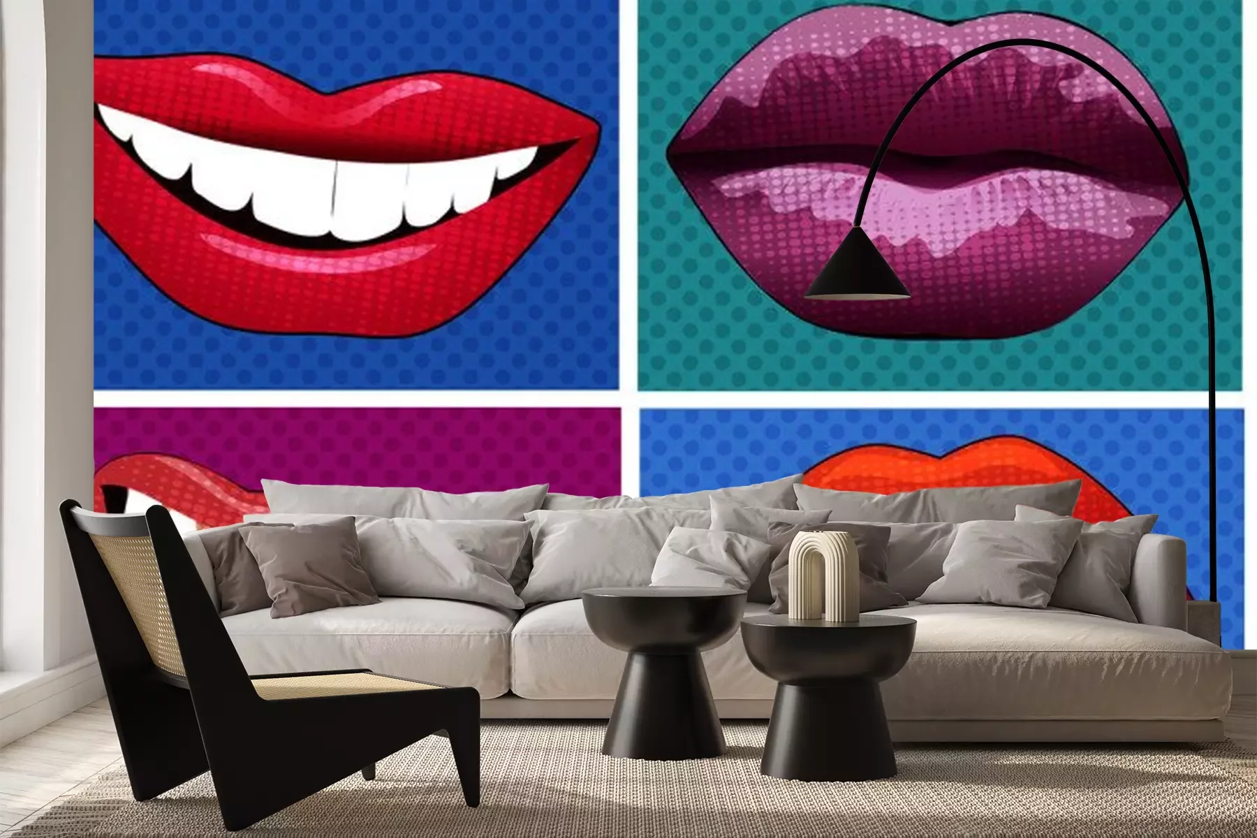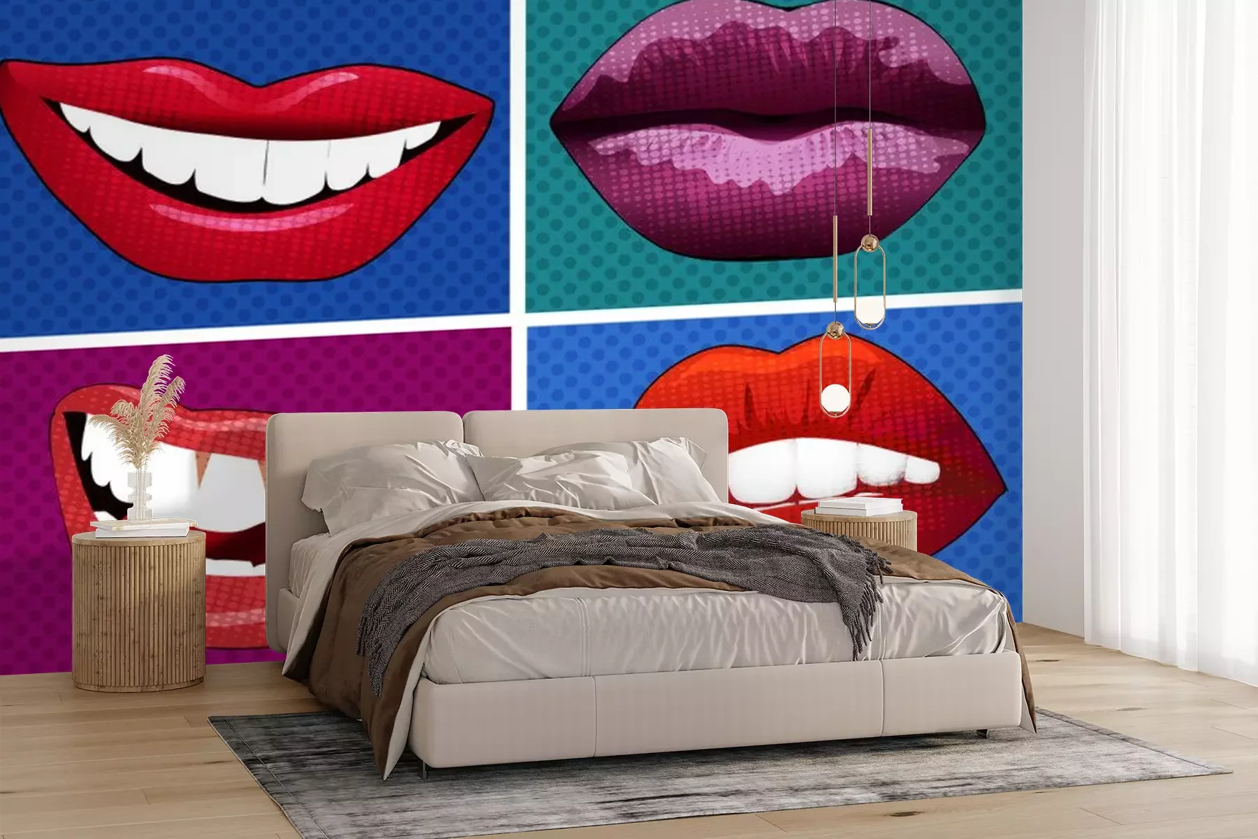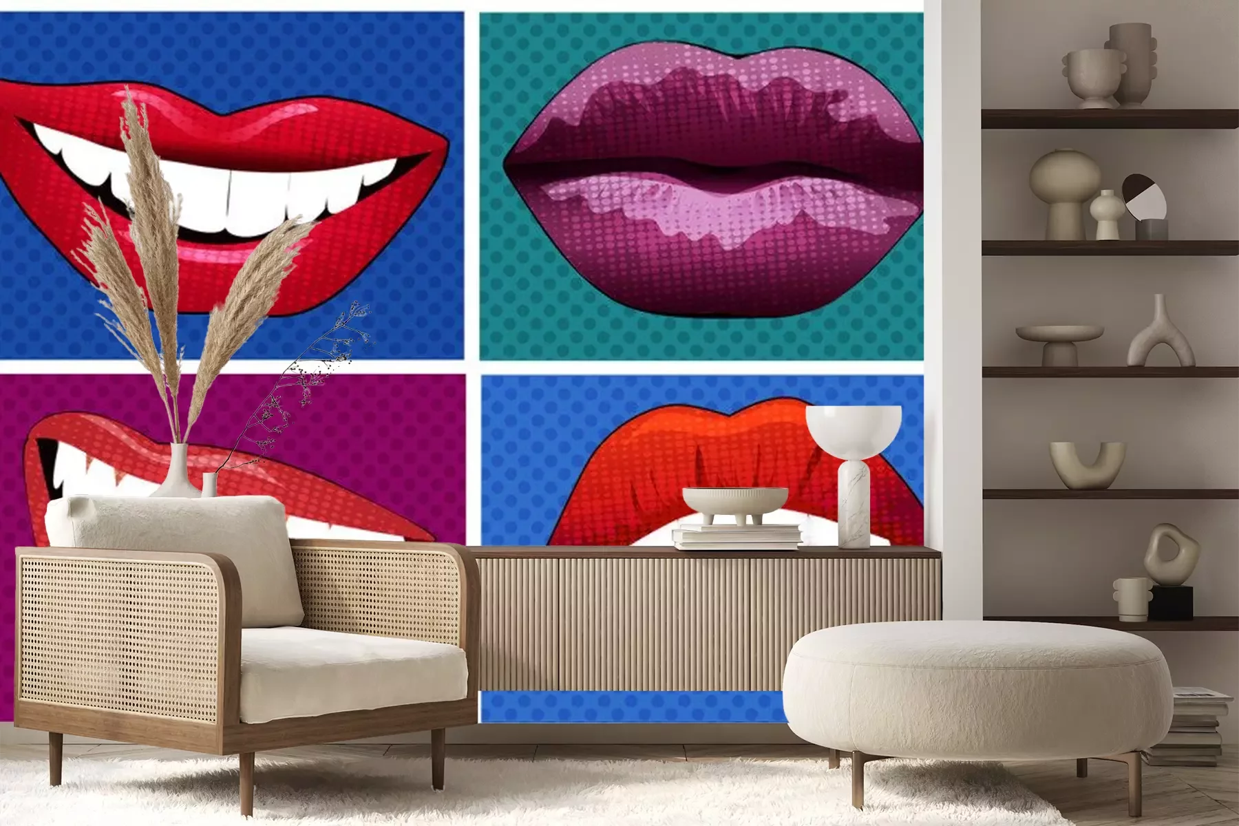 Sticker Illustration der Symbole gesetzt in Pop-Art Stil Lippen