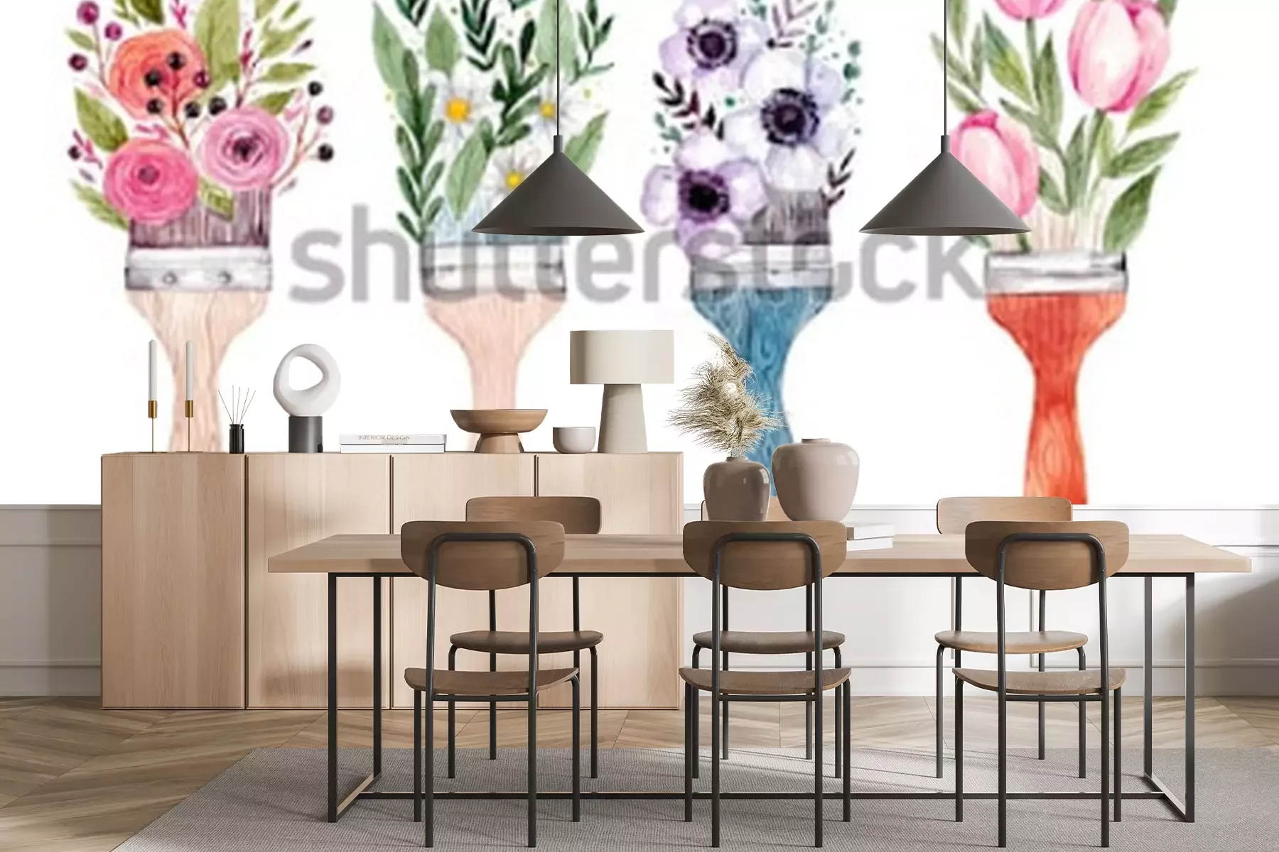 Sticker Illustration mit Blumen auf Pinseln