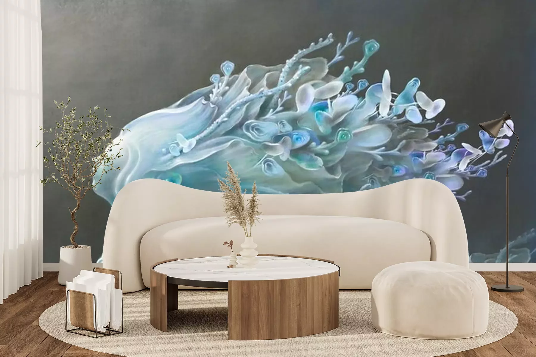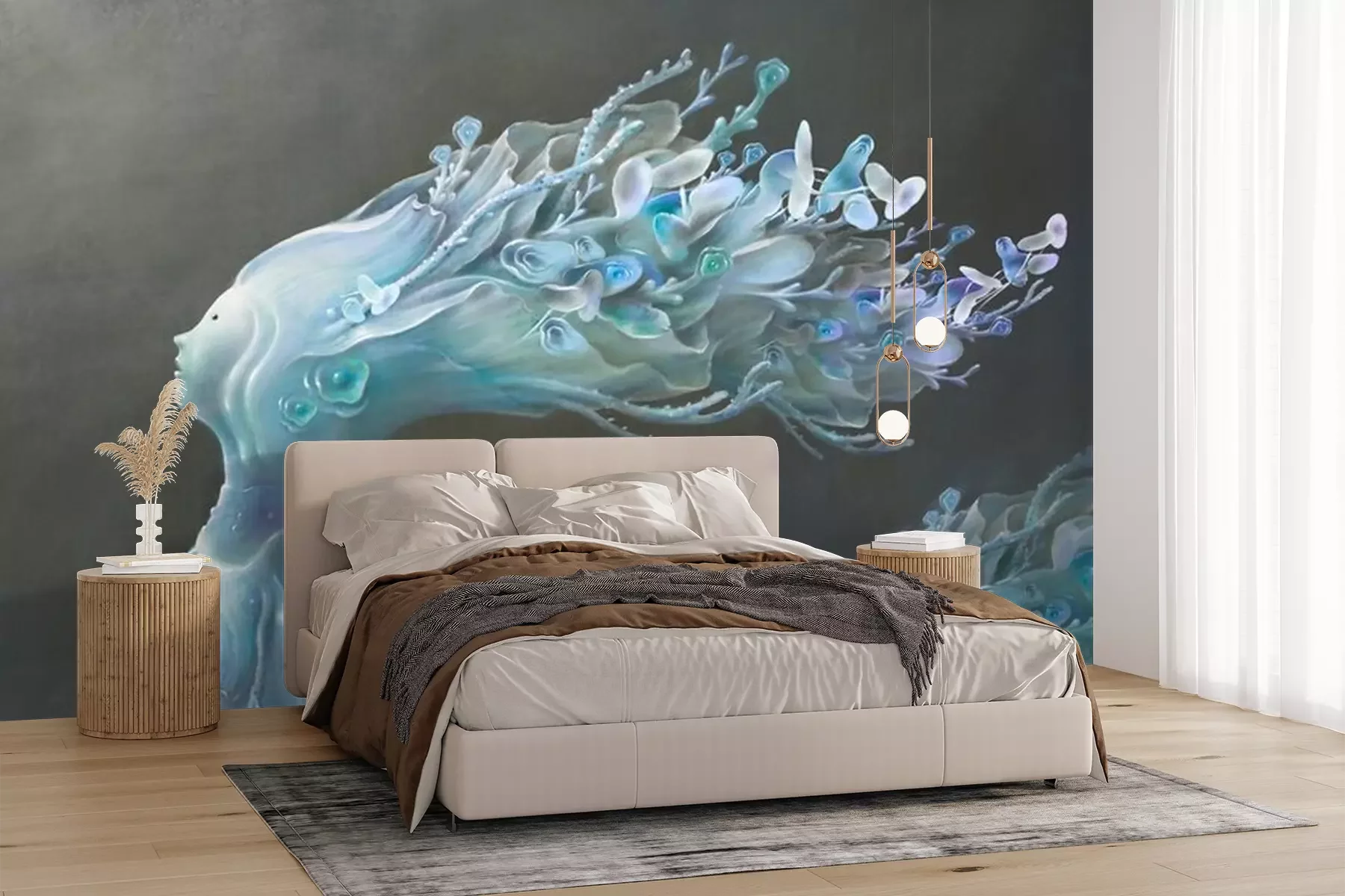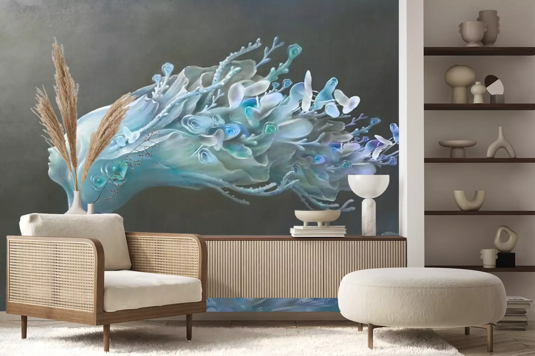 Sticker Imagination lonely girl with nature head looking for the light, fantasy art, hope concept, surreal painting, freedom