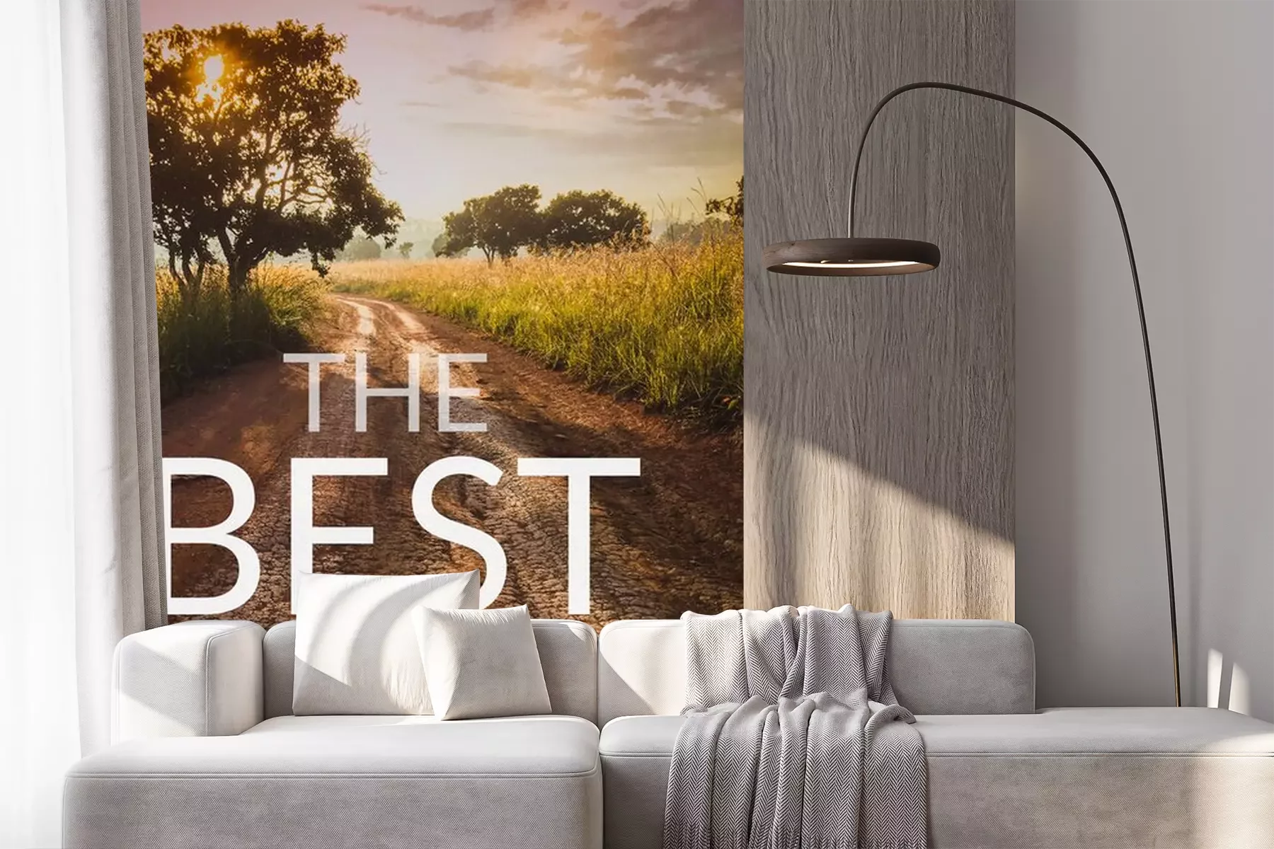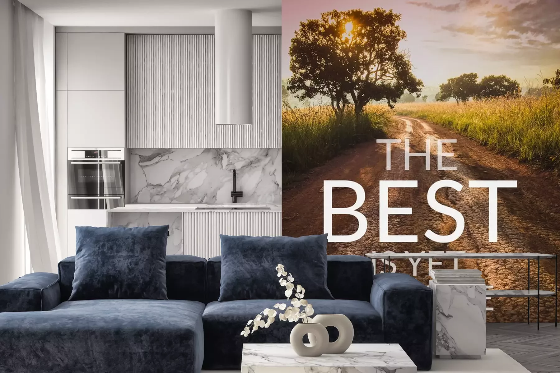 Sticker Inspirational and motivation quote on road in nature background with vintage filter.
