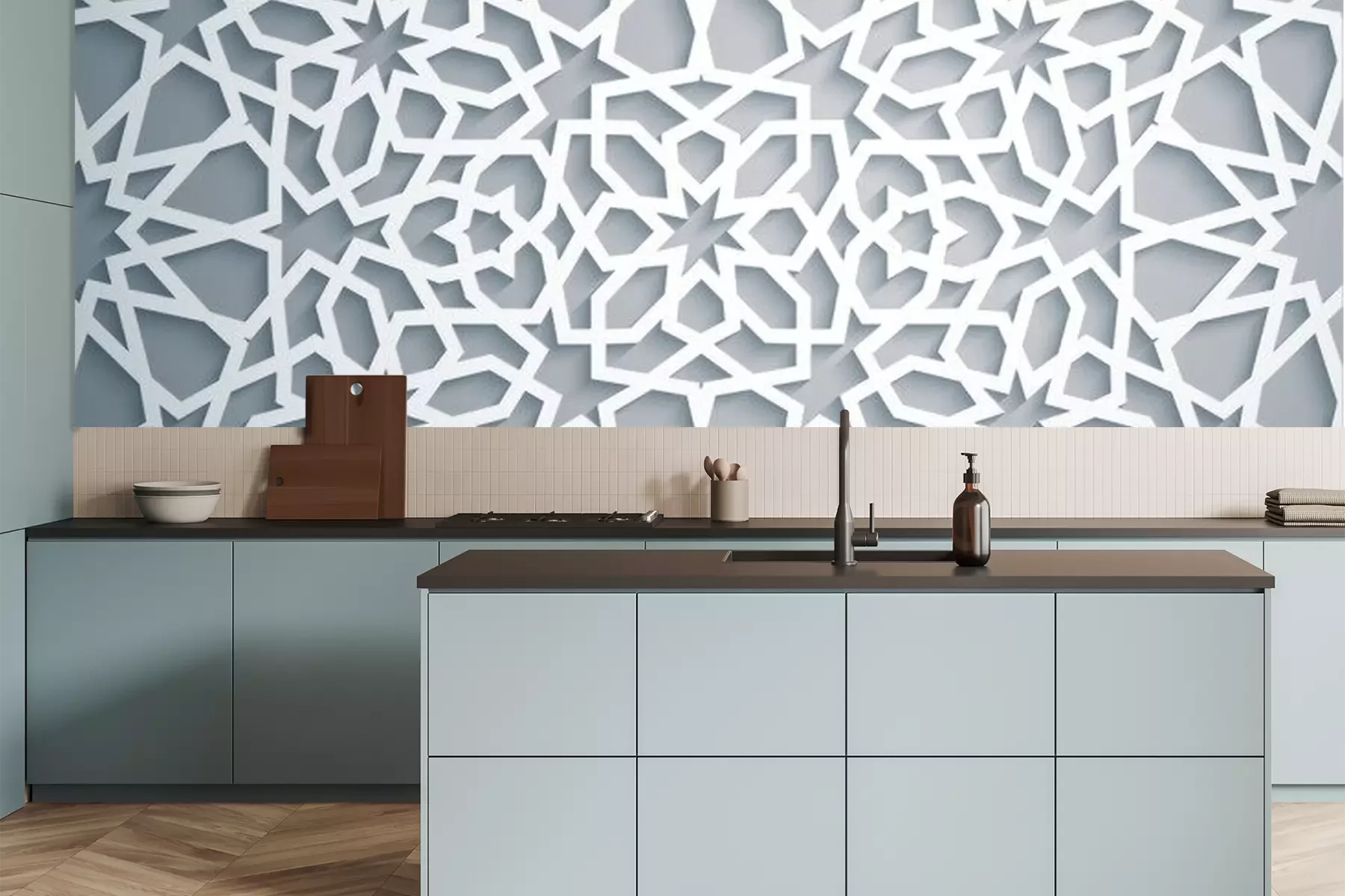Super schöne Küchentapete, genau nach Maß, passt perfekt.