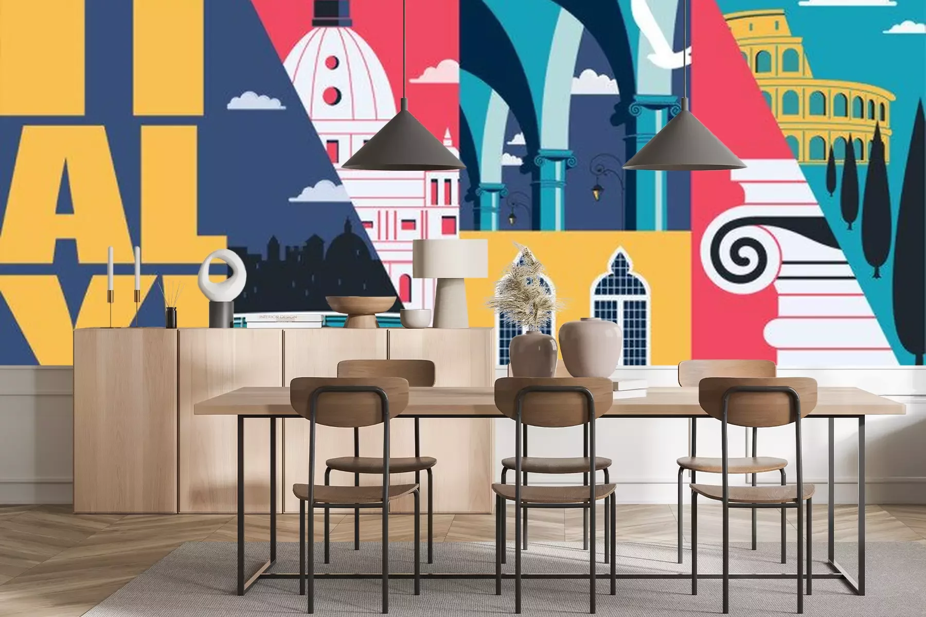 Sticker Italy vector skyline illustration, postcard. Travel to Italy, Rome