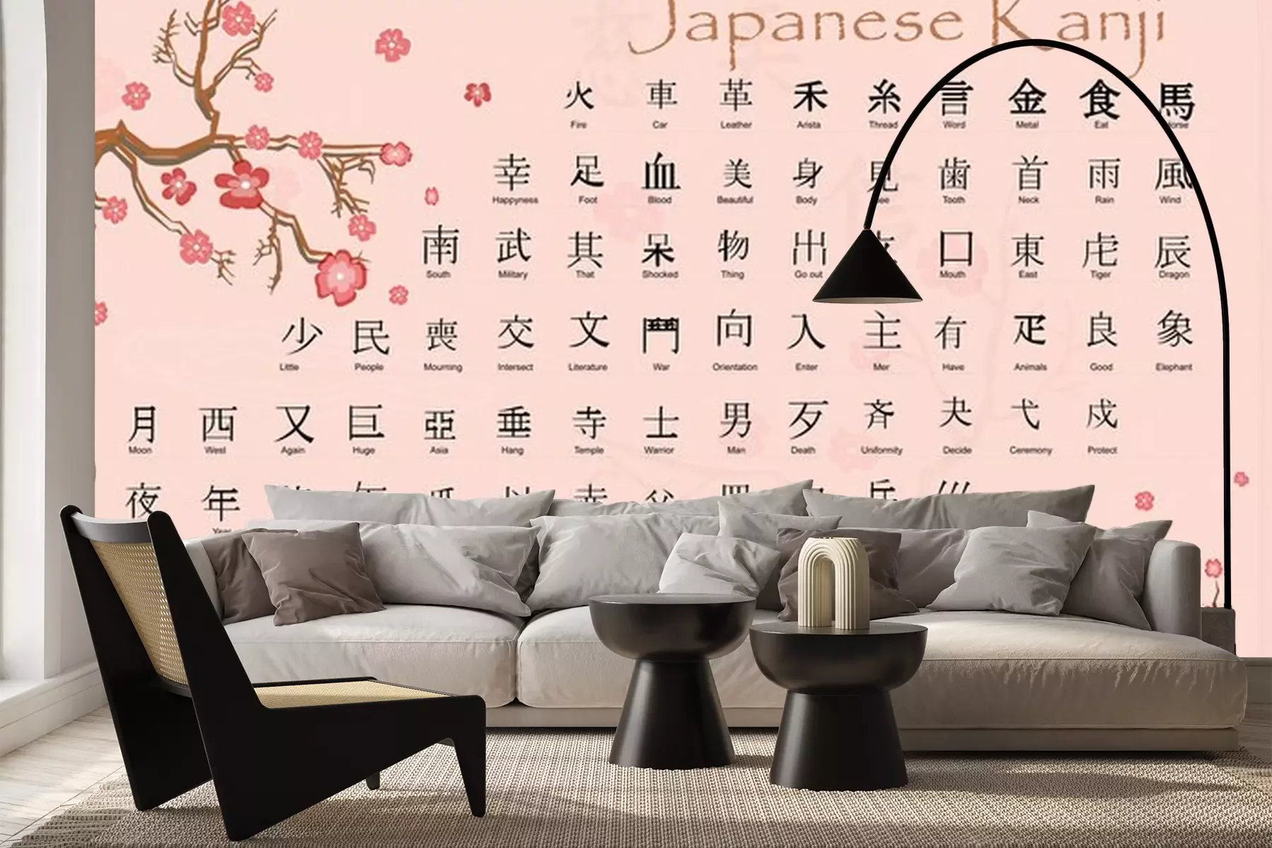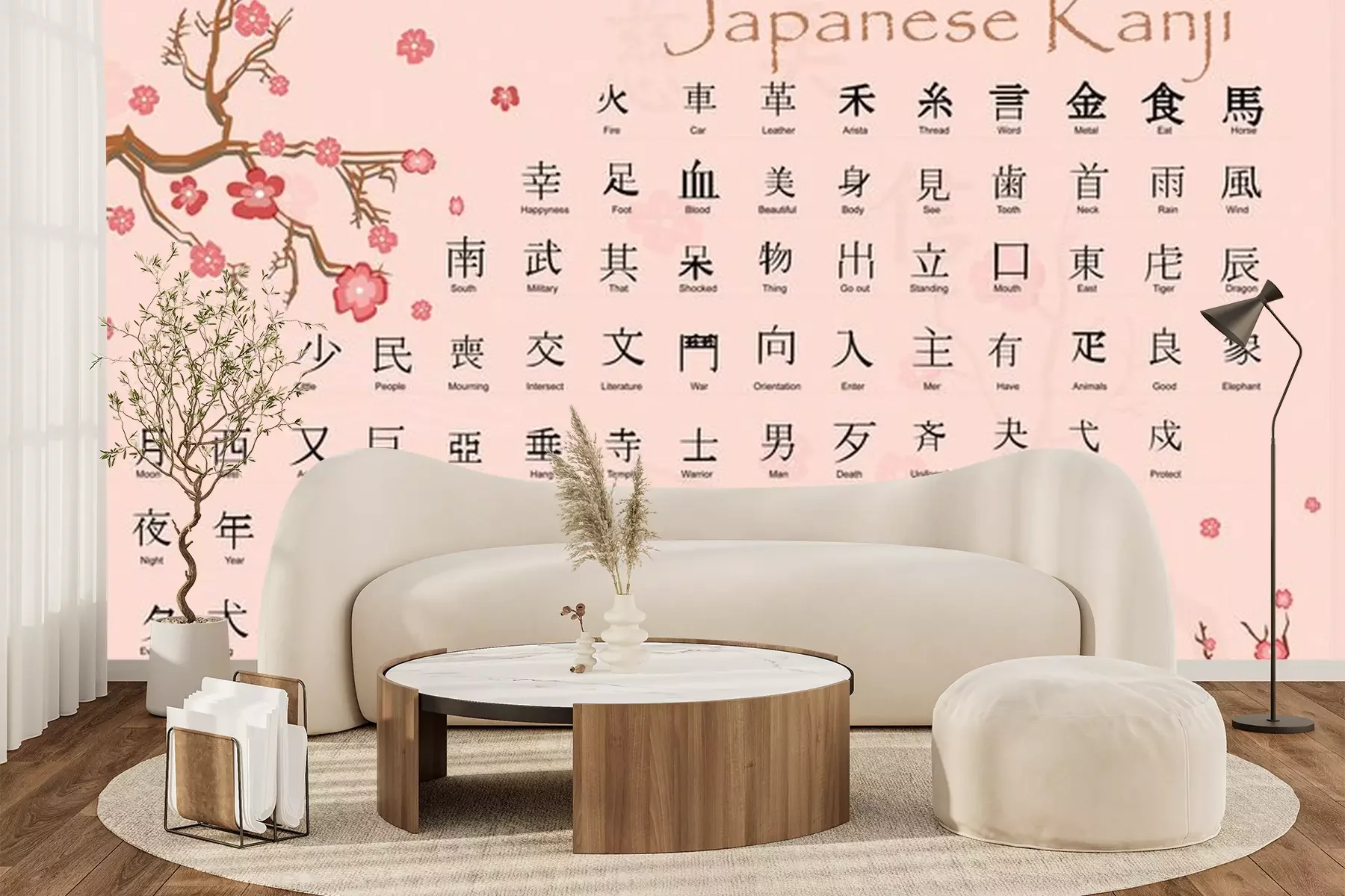 Sticker Japanische Kanji mit Bedeutungen.