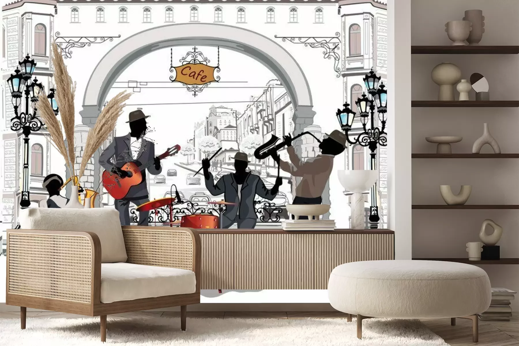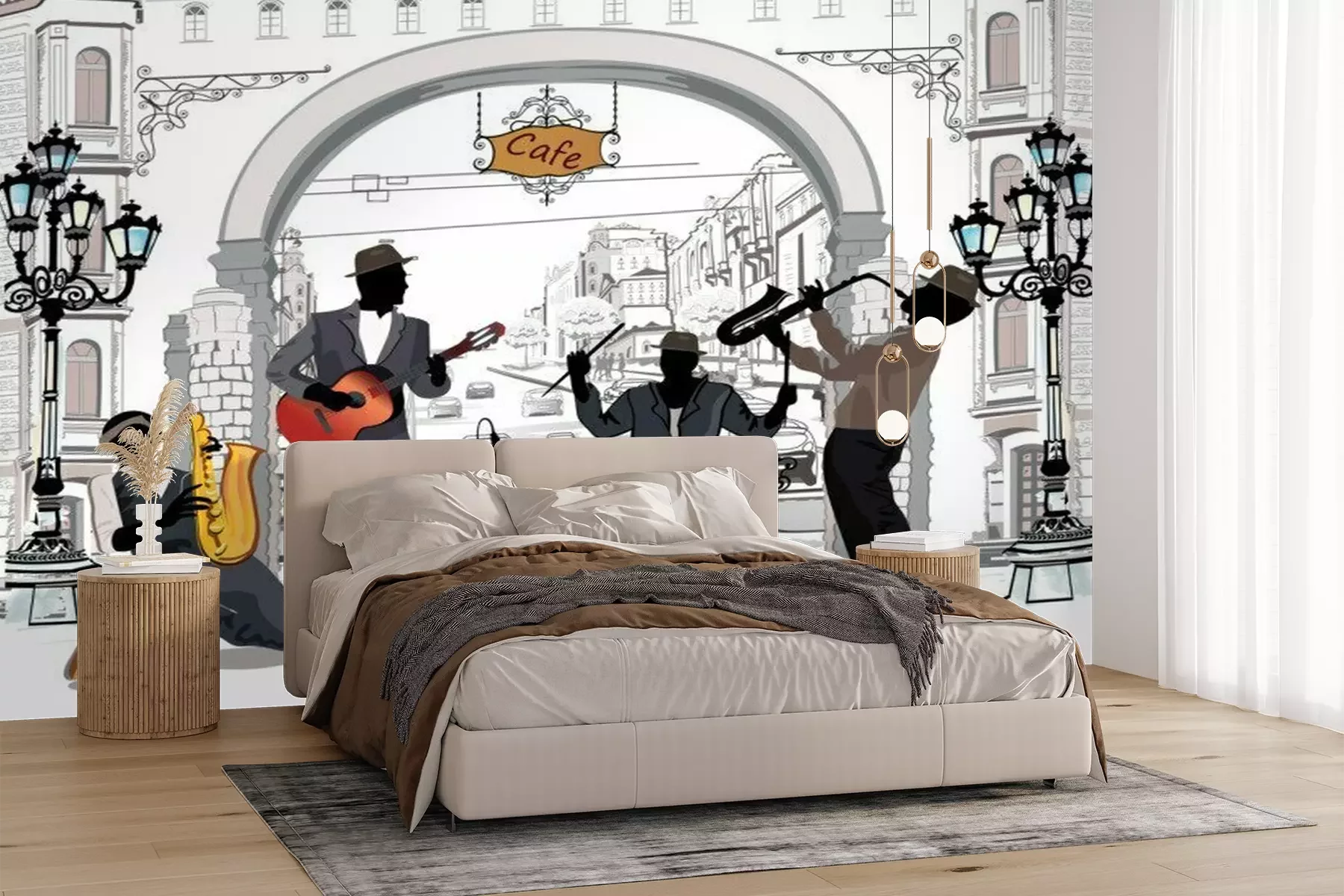 Jazzband in eleganten KostümenProblemlose Lieferung durch vertrauenswürdige Spediteure