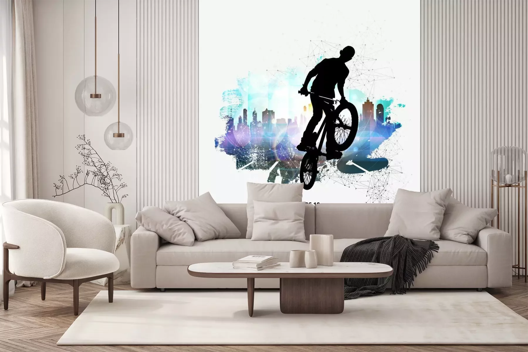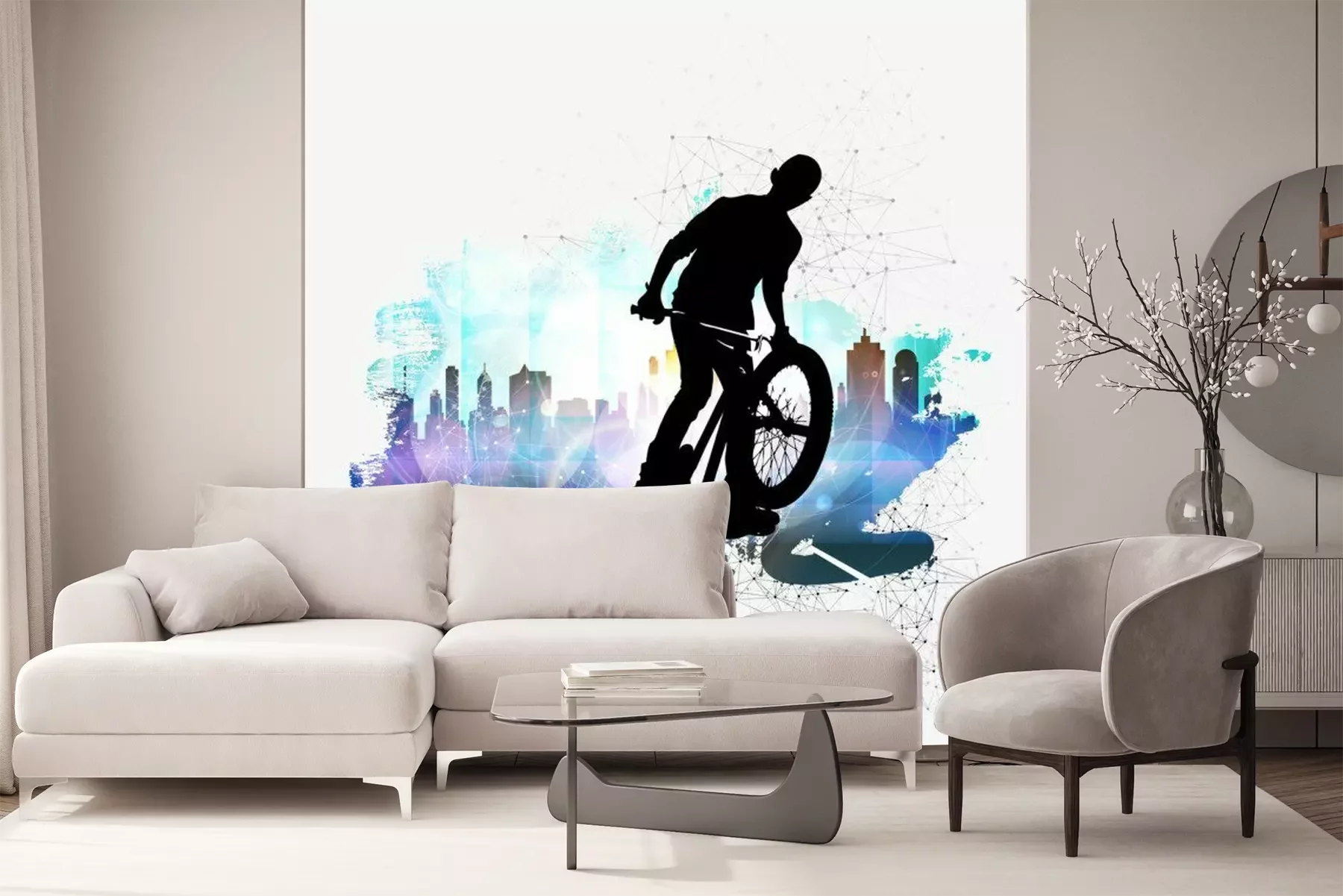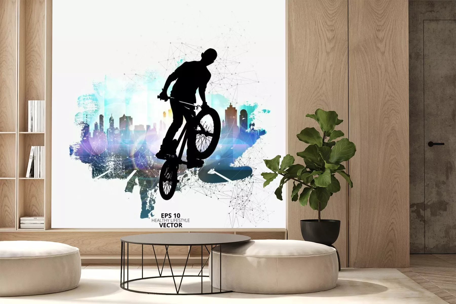 Sticker Junger männlicher Fahrradpullover.  Gesunder Lebensstil.