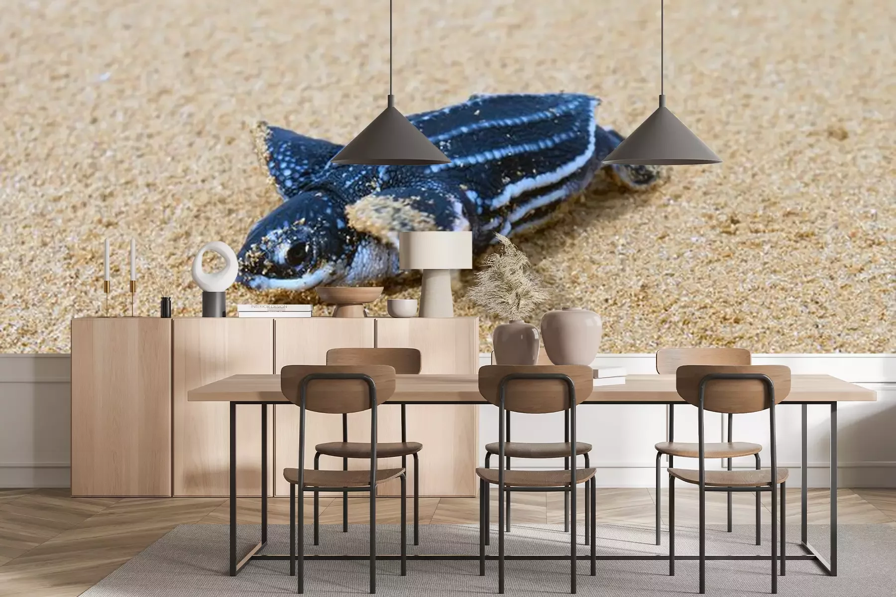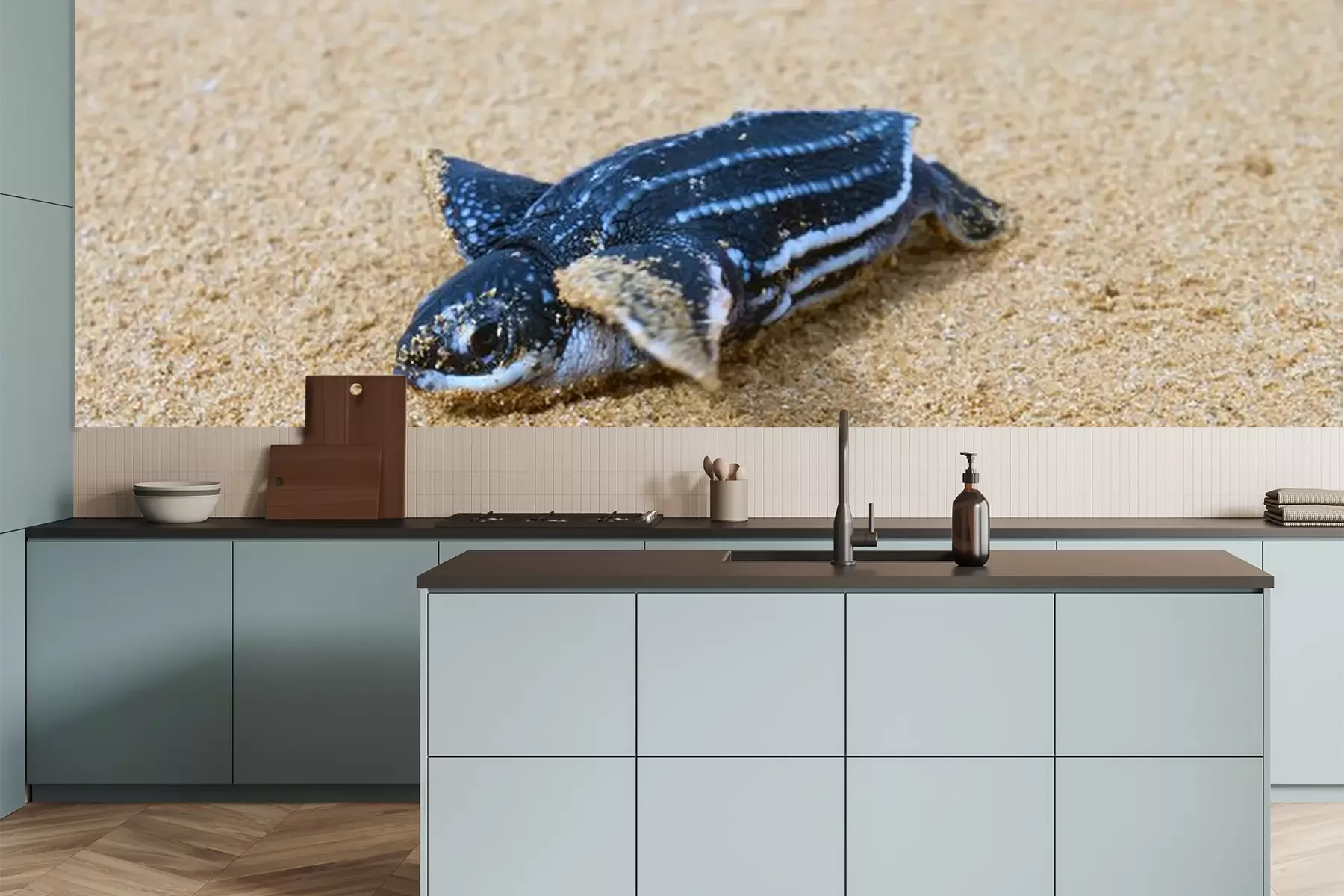 Sticker Just born Baby Lederschildkröten gekrabbelt, um die Brandung