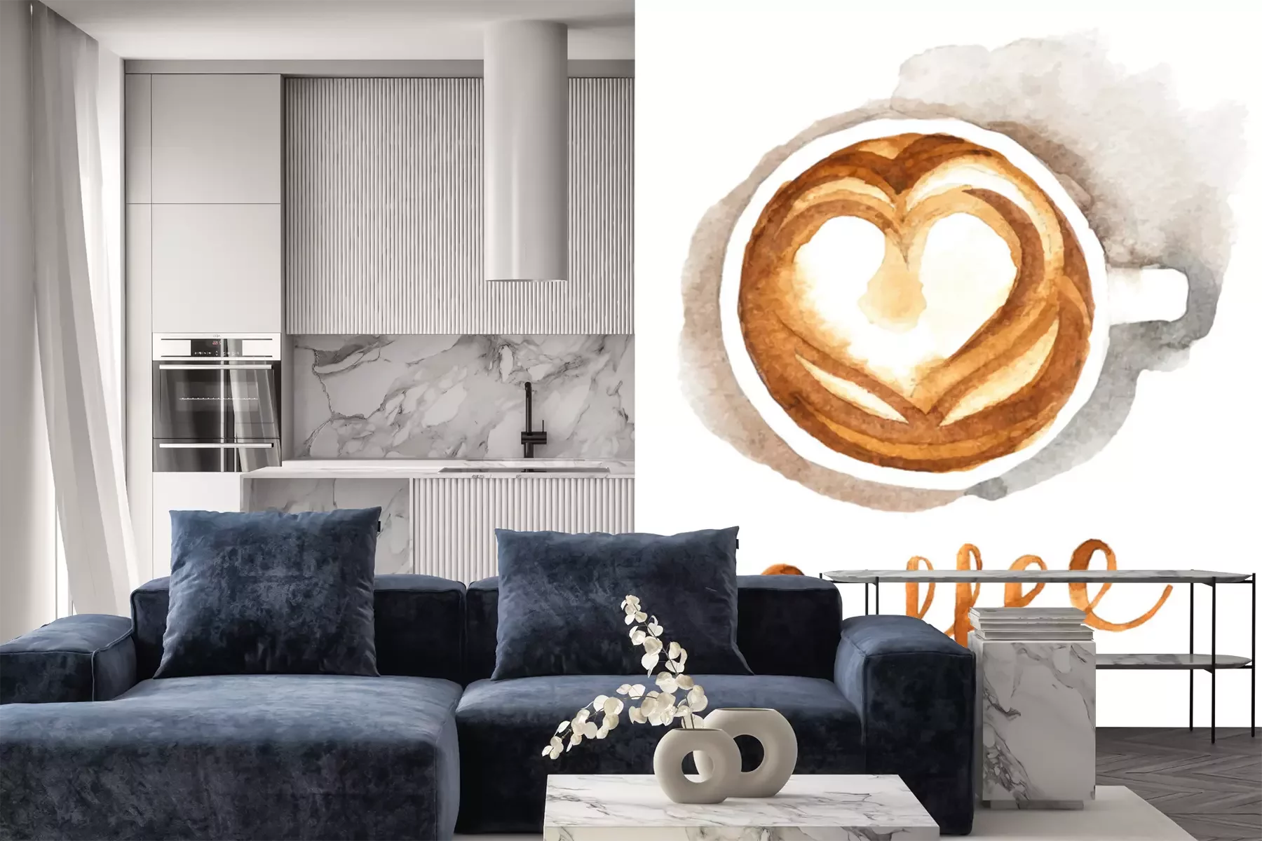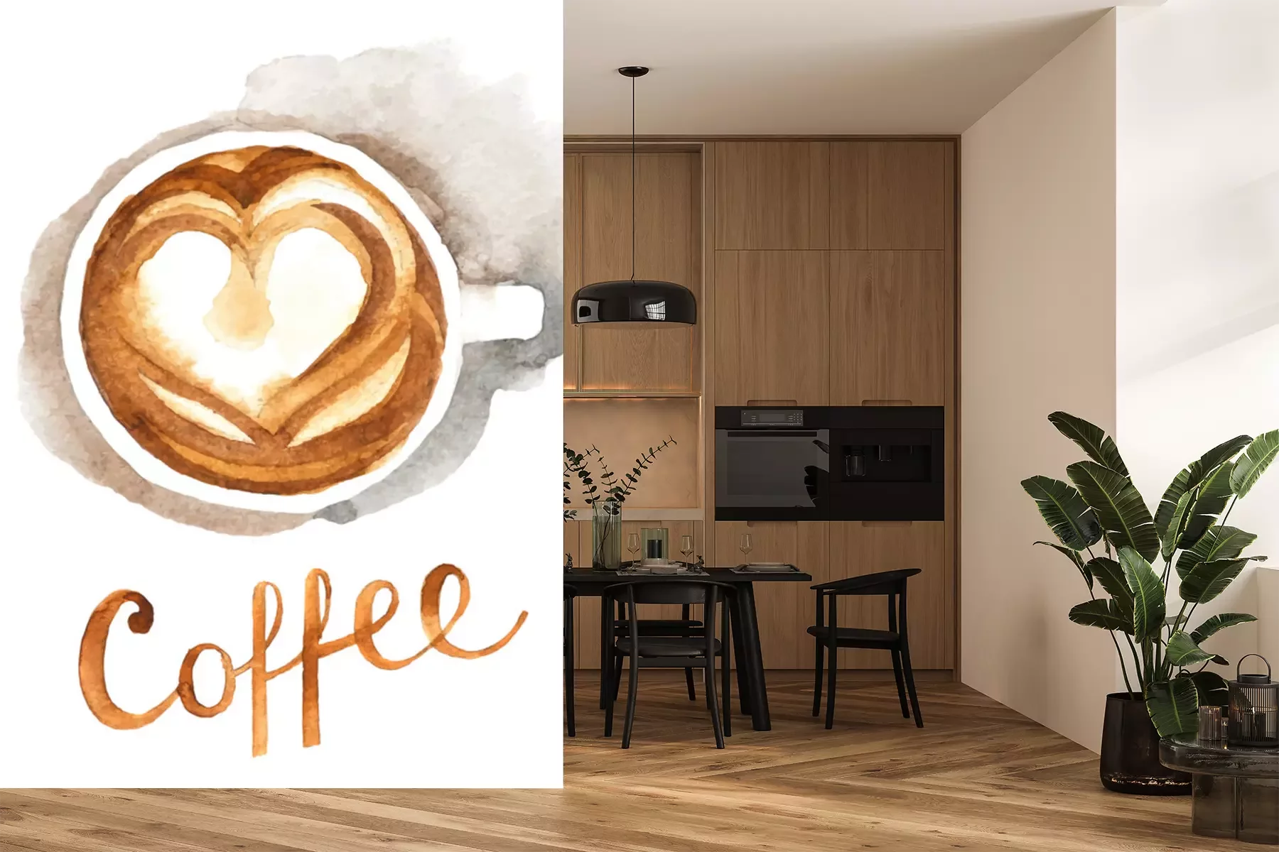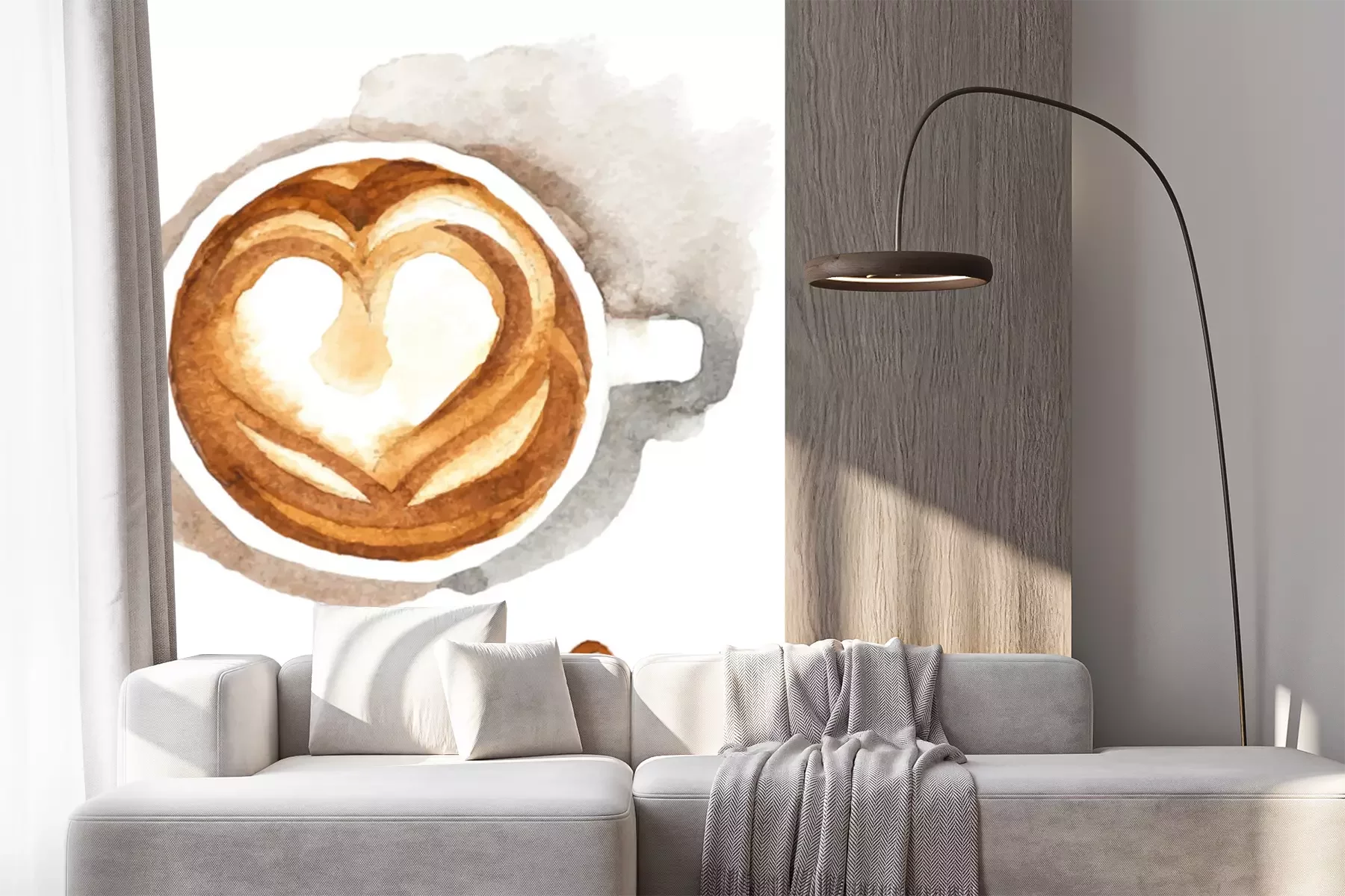 Sticker Kaffee mit Herz Aquarellzeichnung