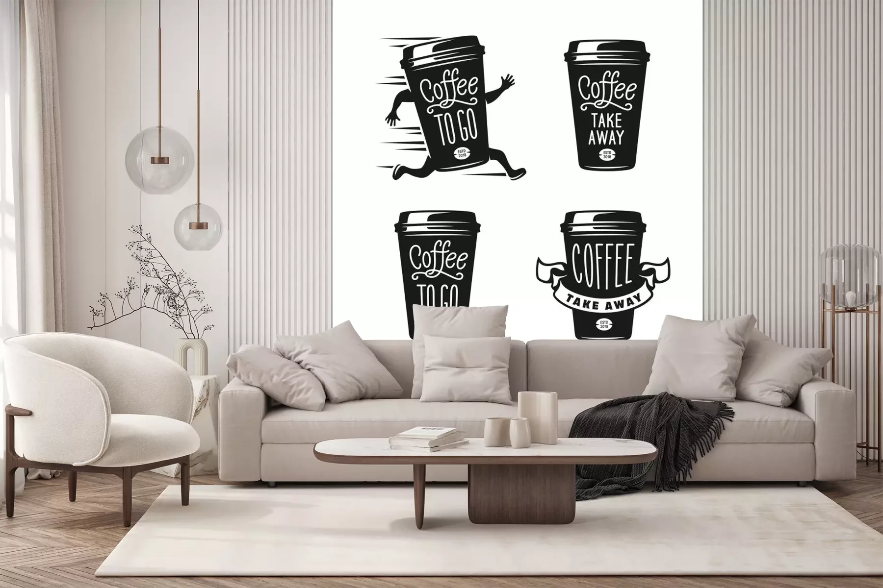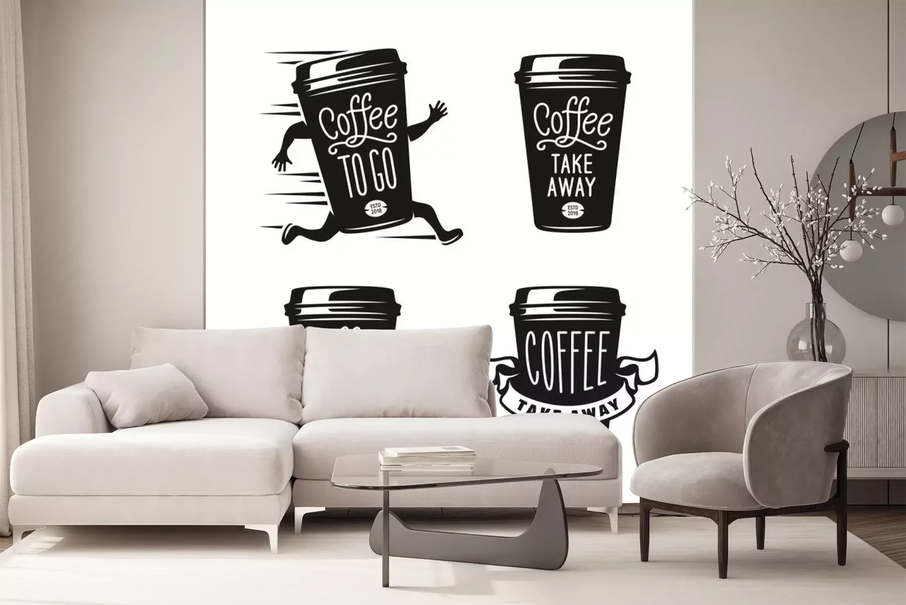 Sticker Kaffee zum Mitnehmen Aufschriften auf Bechern