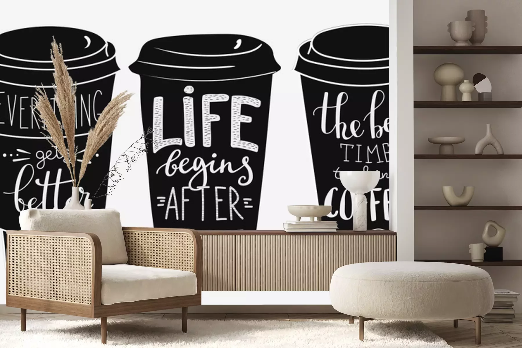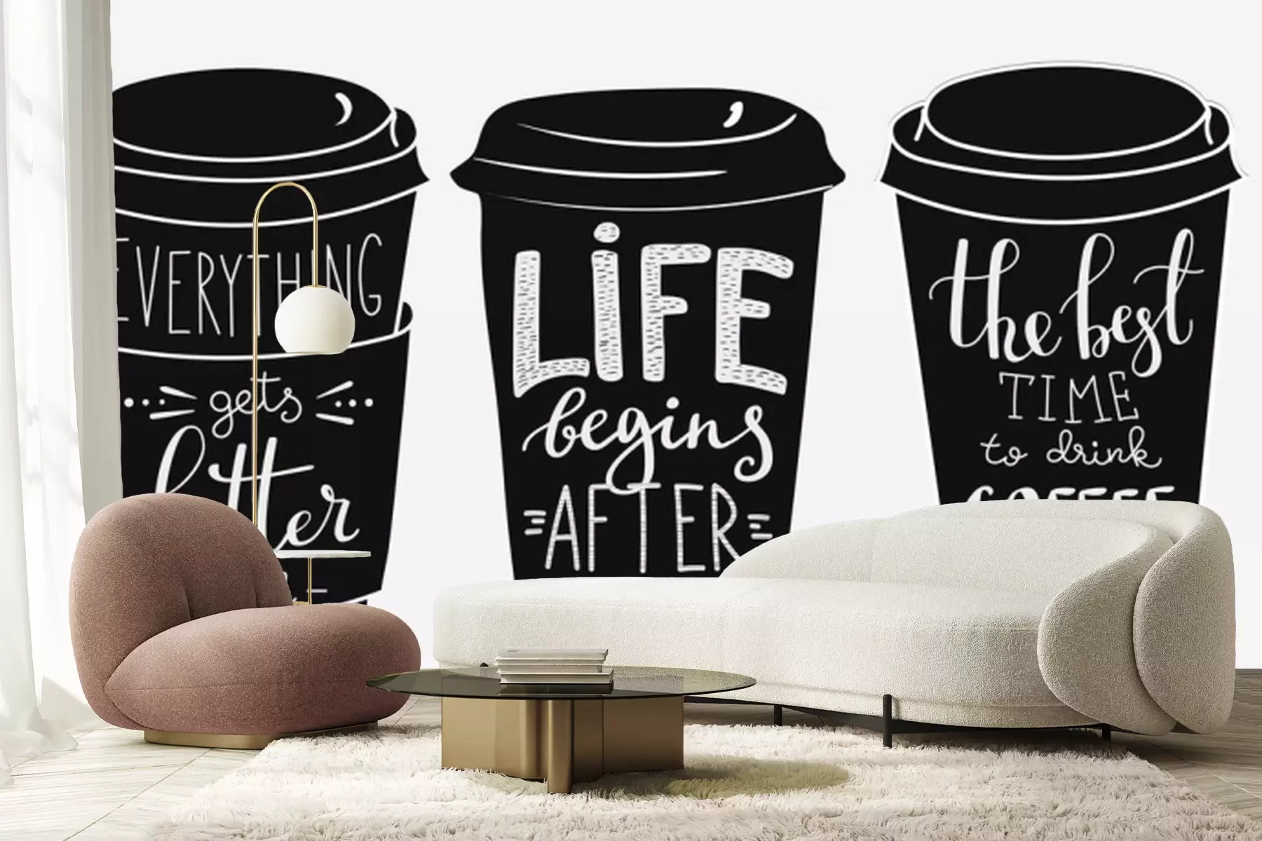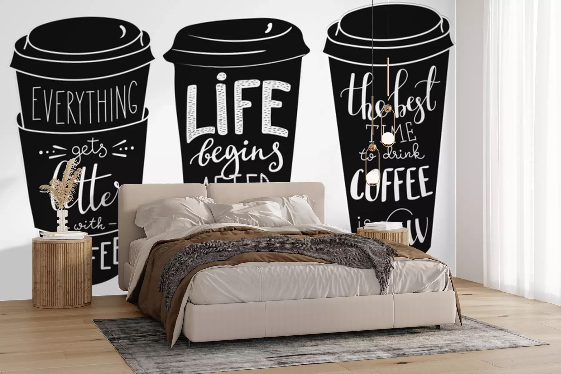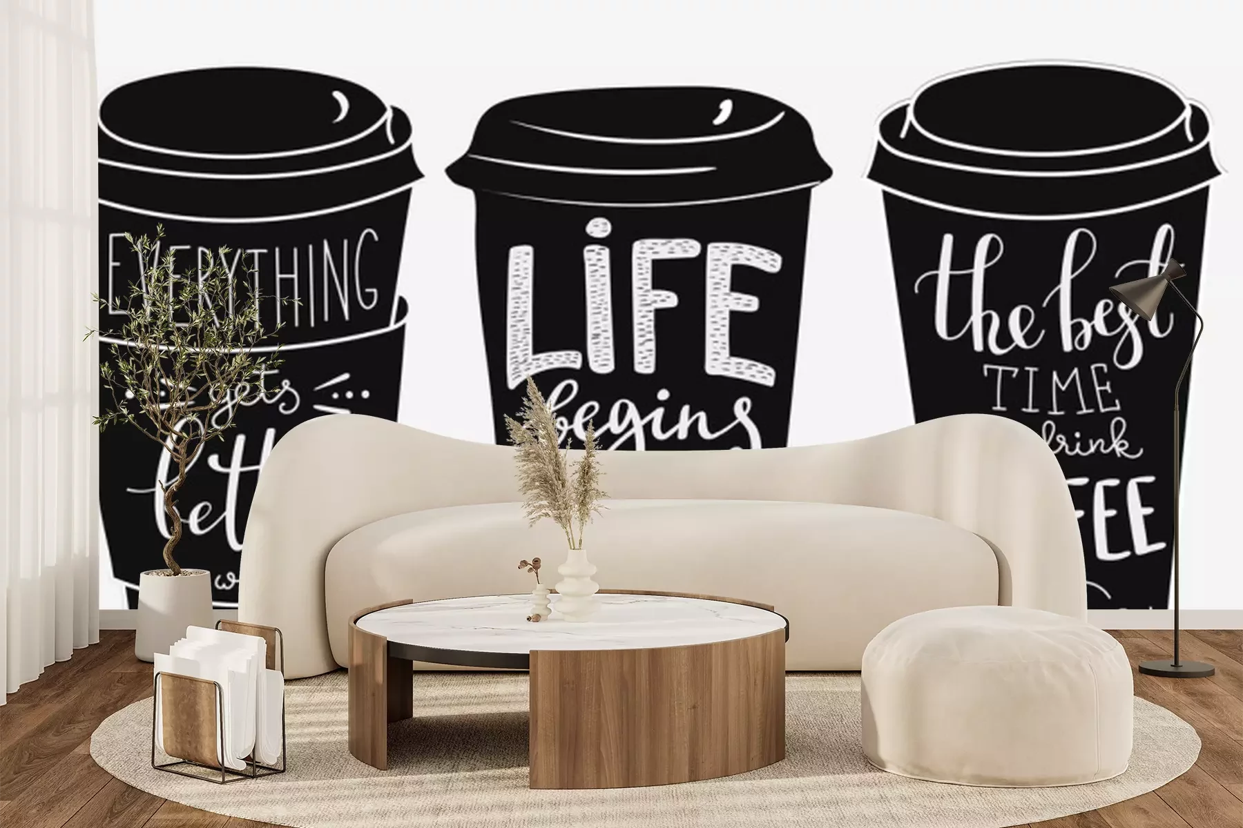 Sticker Kaffee zum Mitnehmen drei schwarze Becher