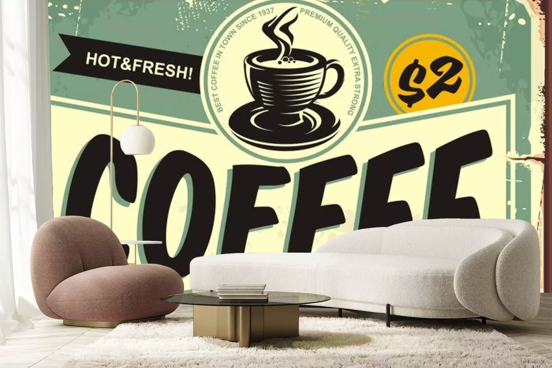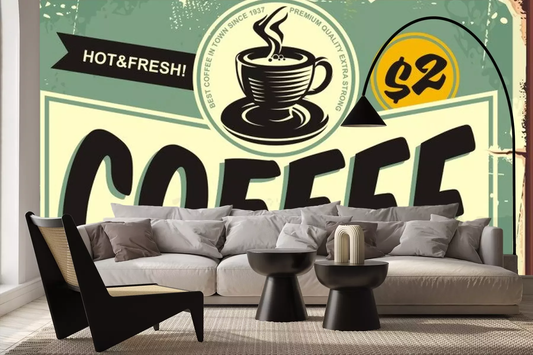 Kaffeetassen auf Retro-GrafikenProblemlose Lieferung durch vertrauenswürdige Spediteure
