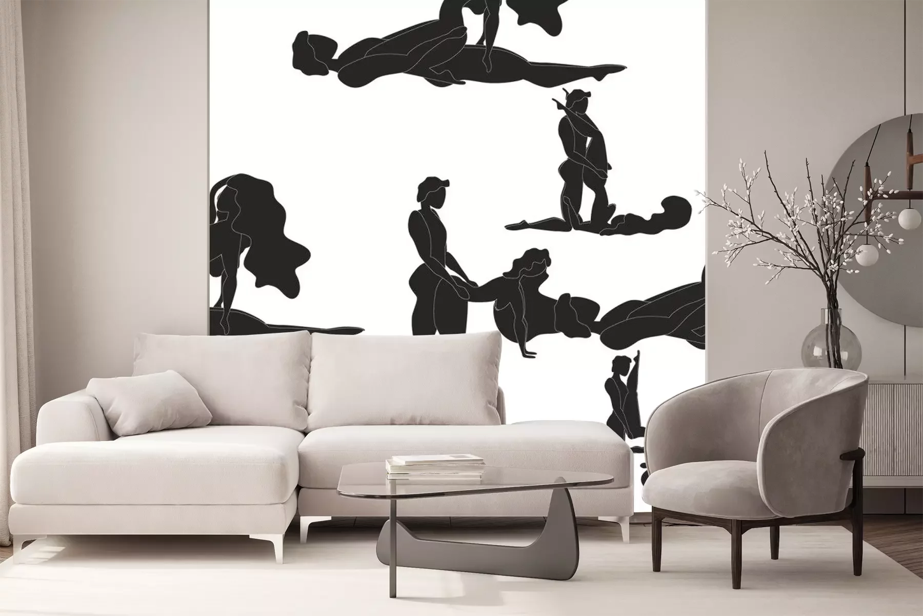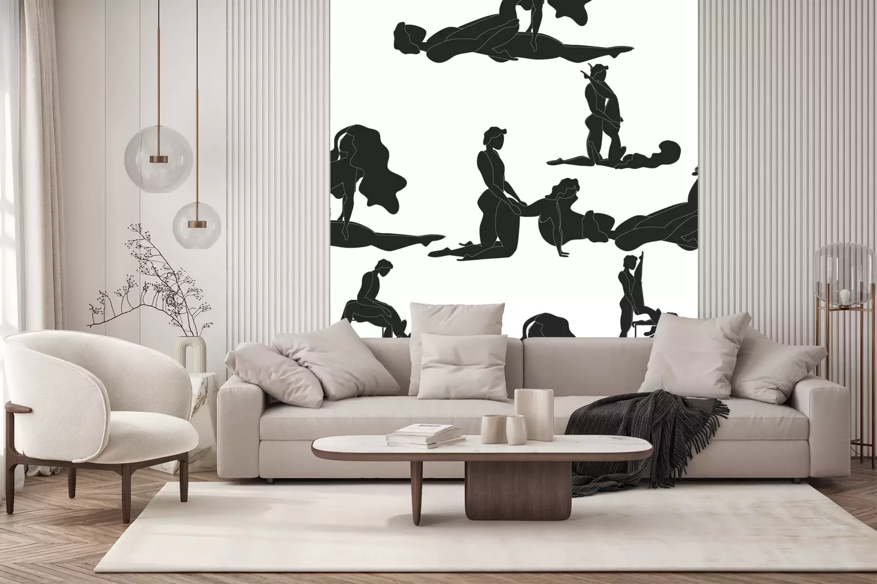 Sticker Kama Sutra, seamless pattern, design, poster, fabric. Kamasutra, sketchy poses for making love. Set.