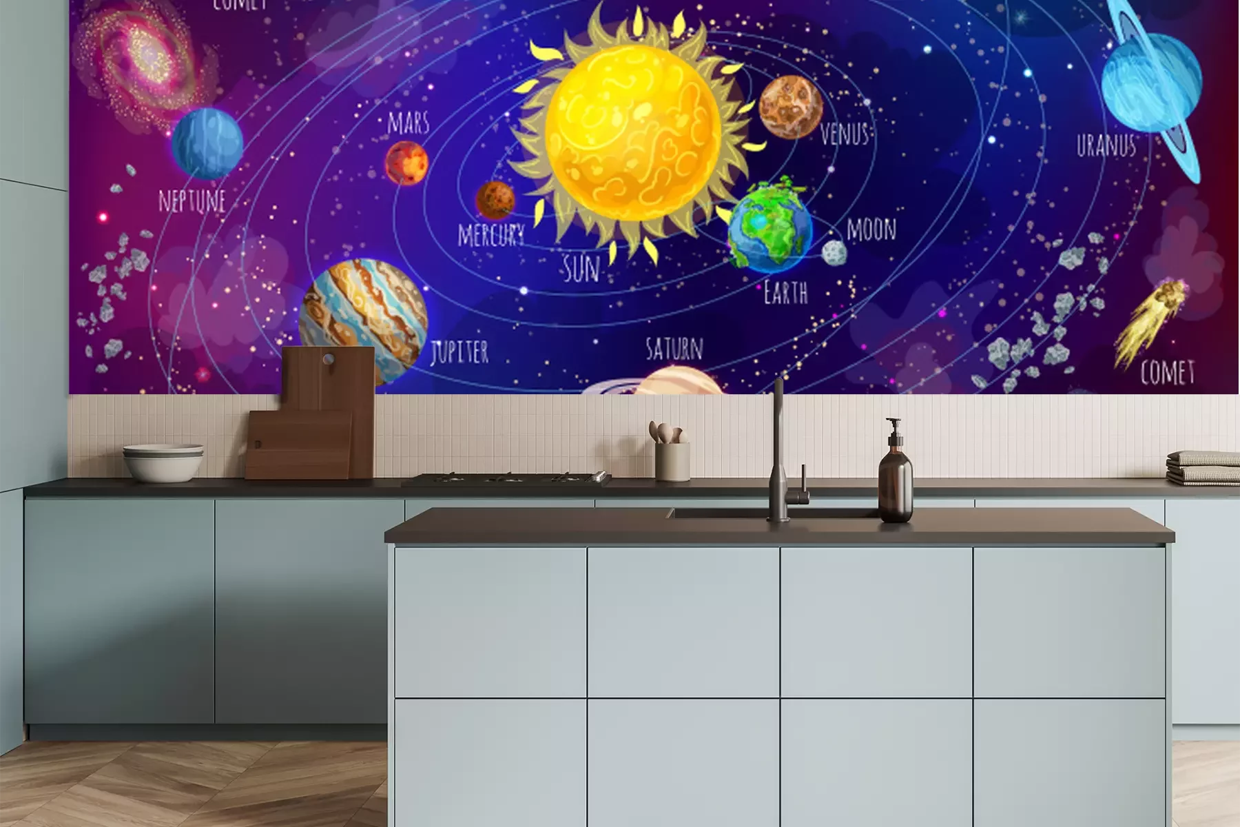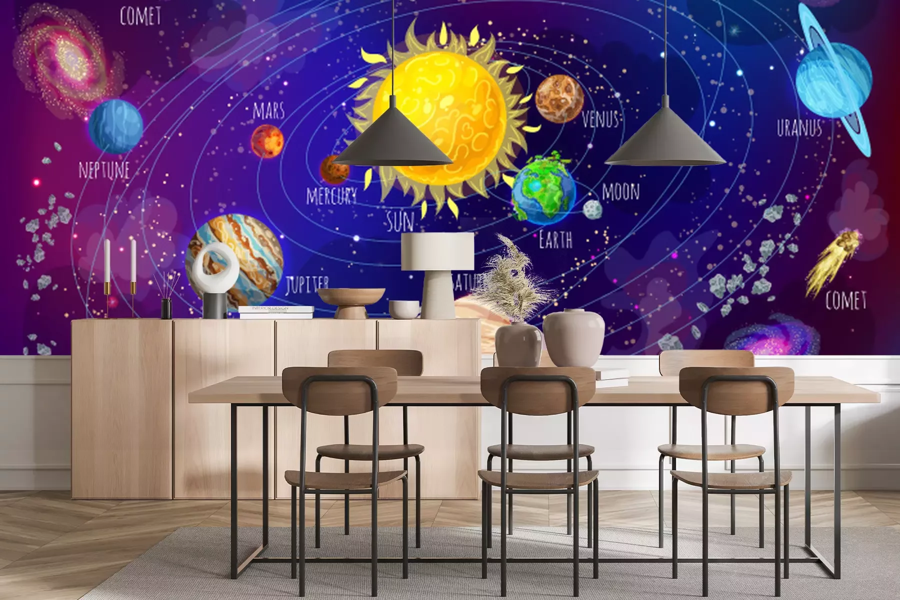 Sticker Karikatur-Sonnensystem Wissenschaftliches Konzept