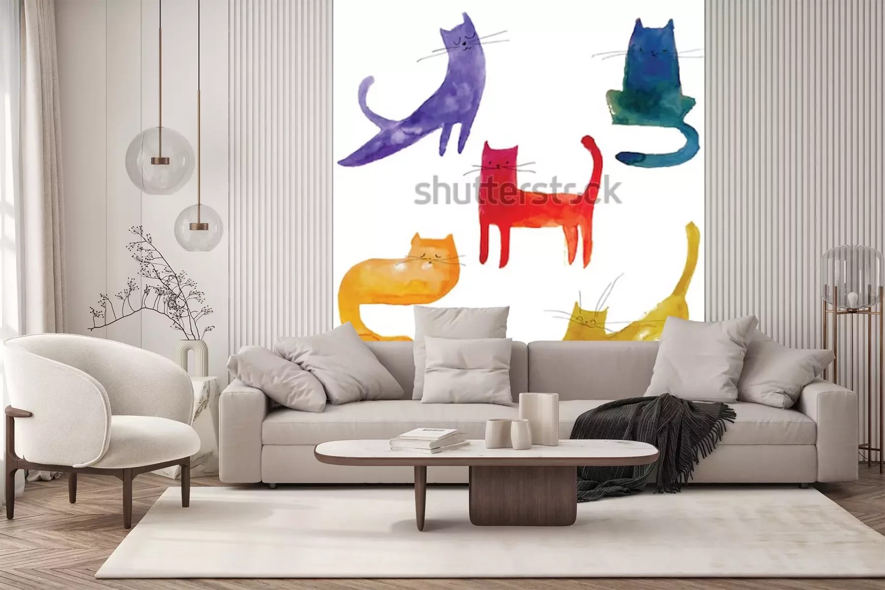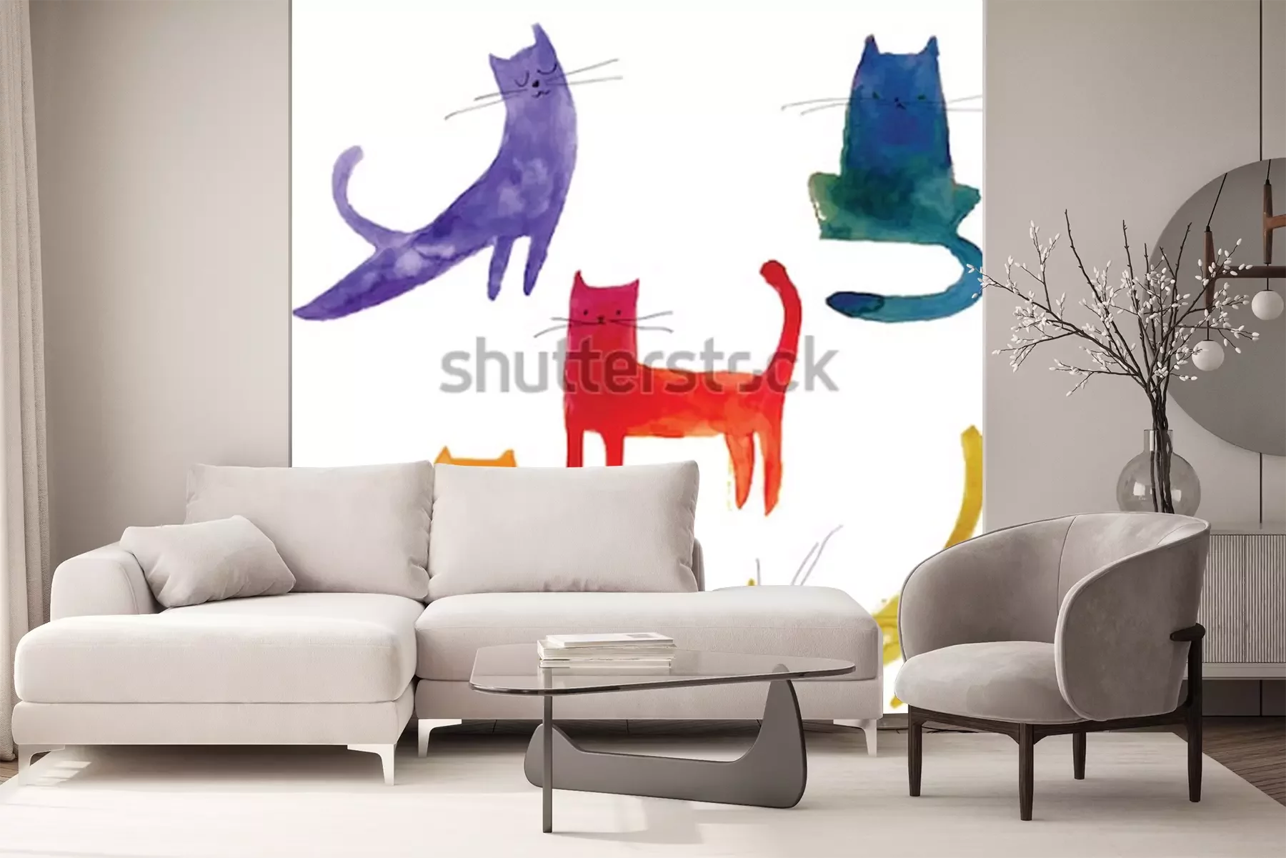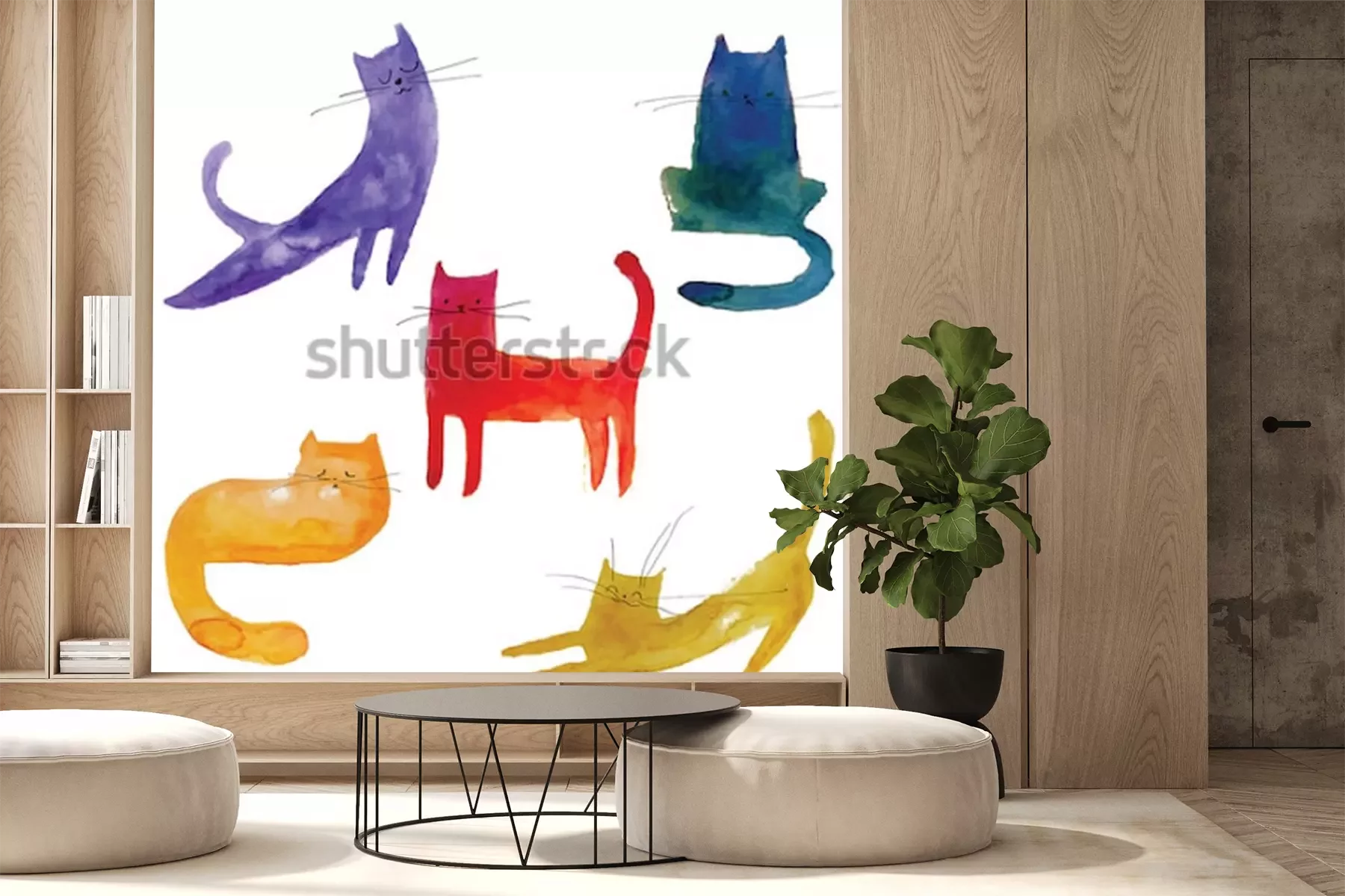 Sticker Katze für Kinder bunte Katzen mit schwarzem Schnurrbart Aquarell