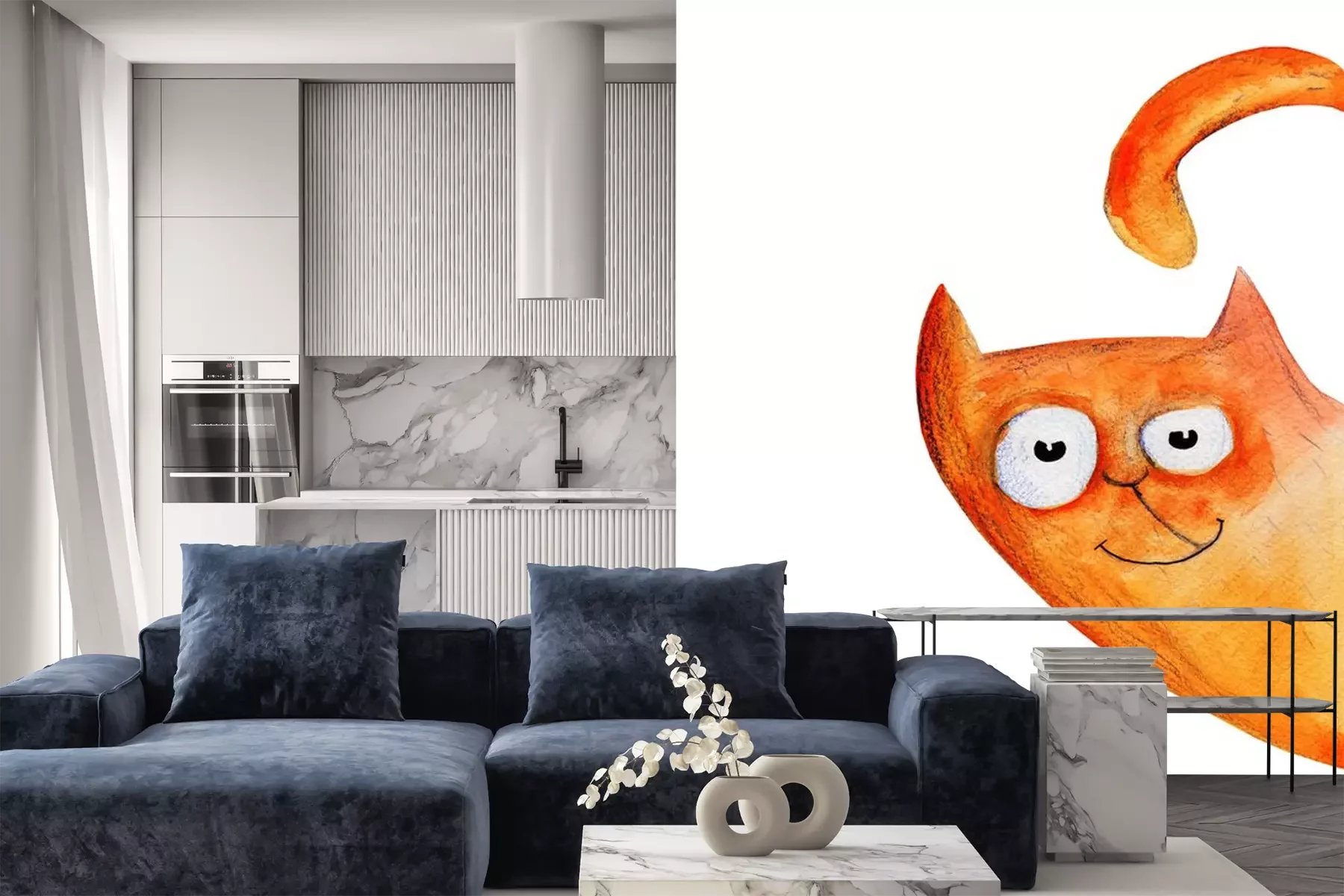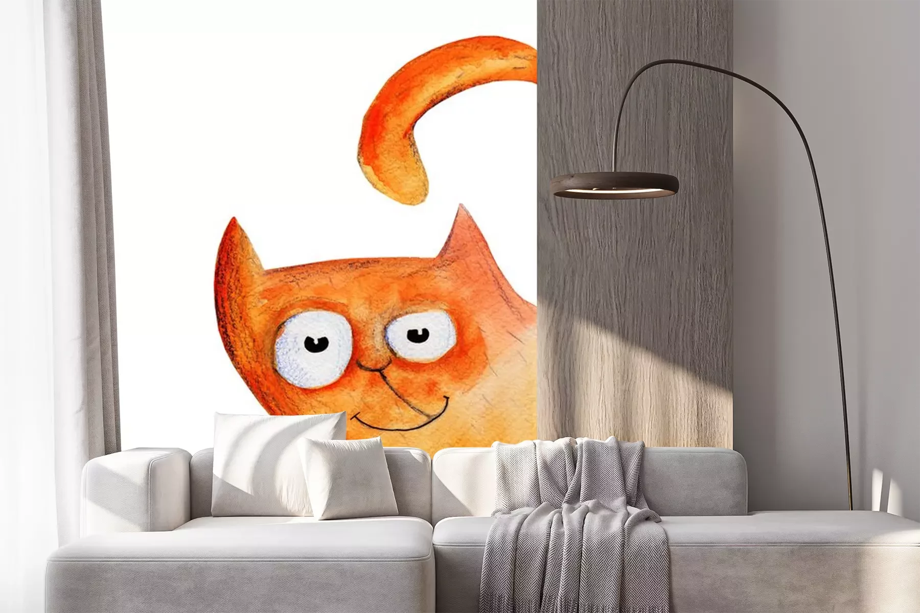 Sticker Katze für Kinder mit einem breiten Lächeln Aquarell