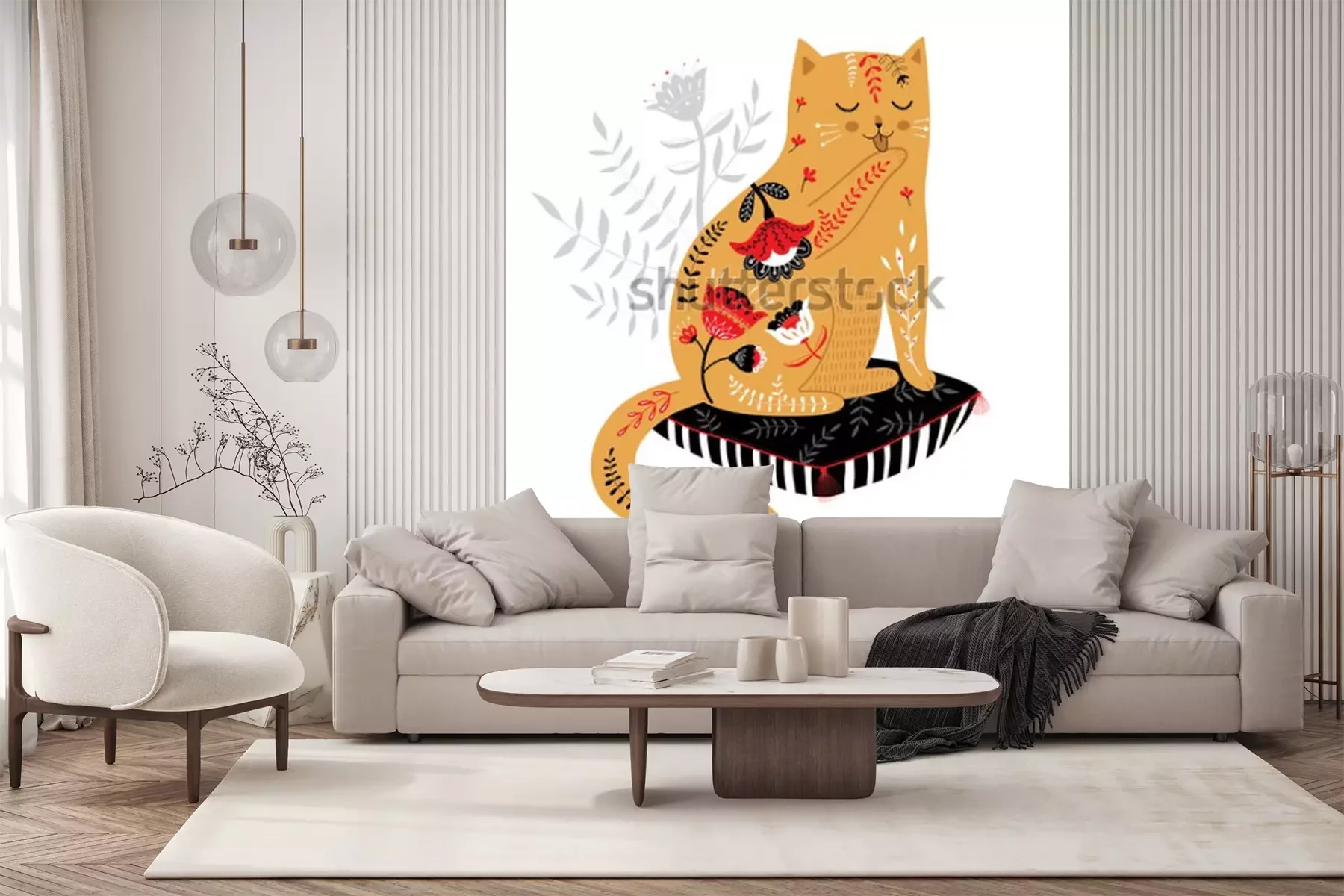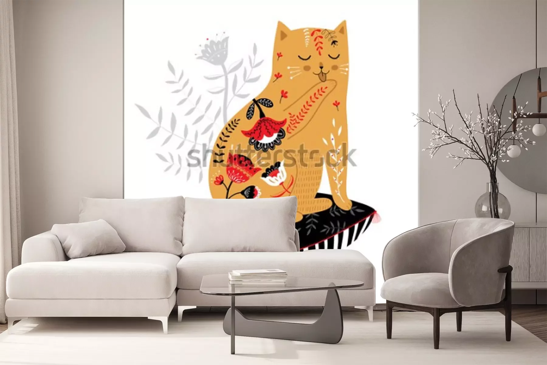 Sticker Katze für Kinder mit Fell mit Blumen bedeckt