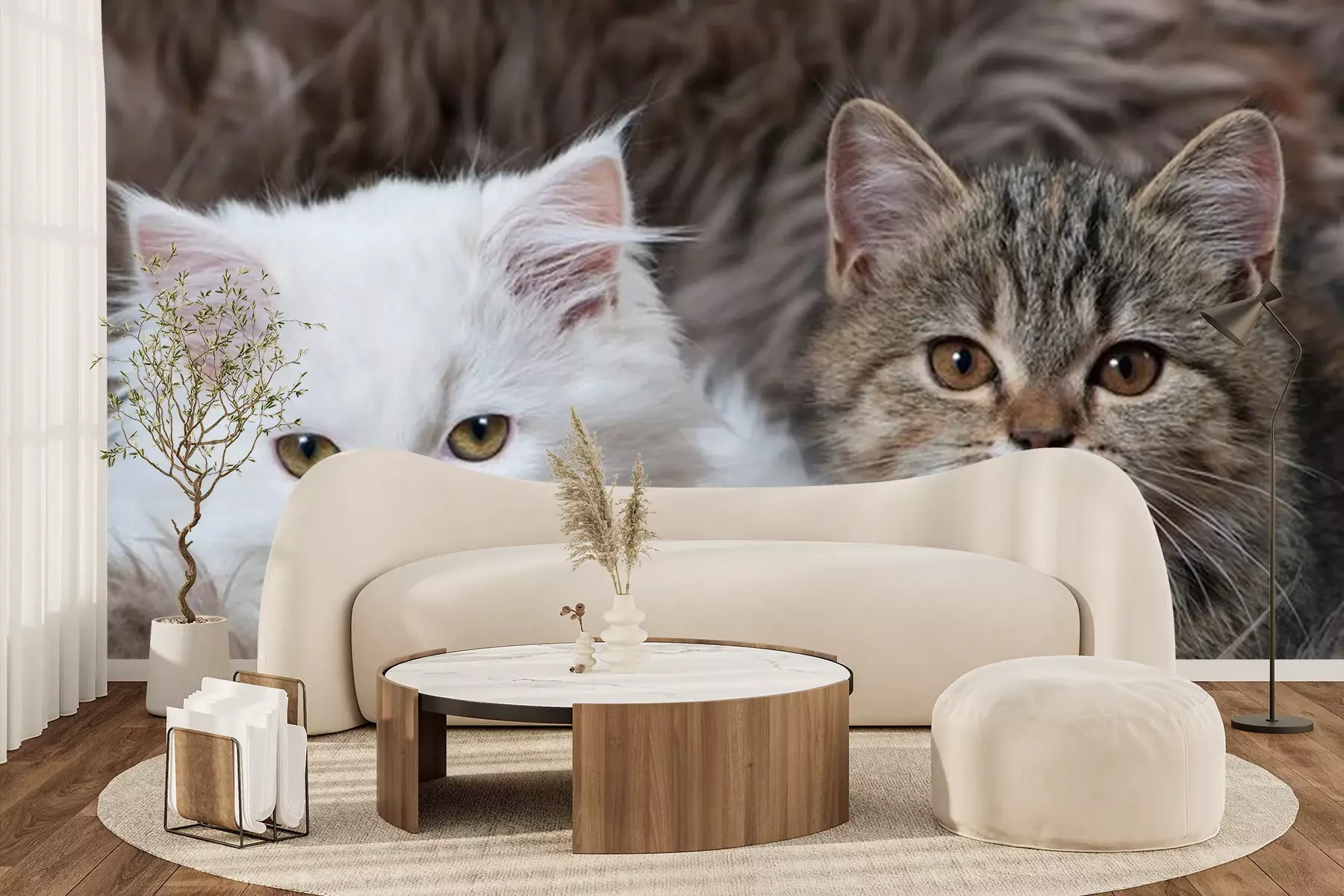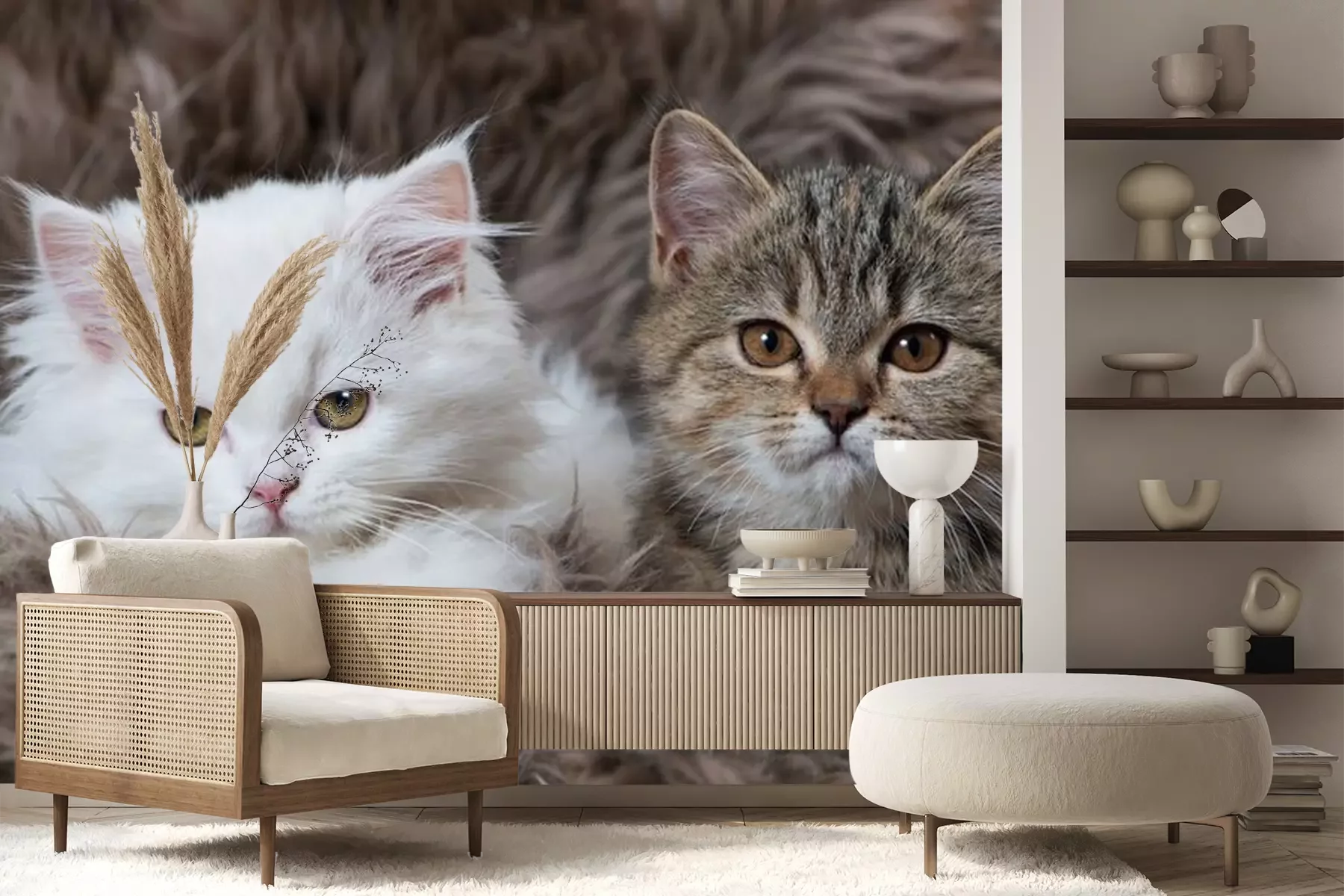 Sticker Katze mit aufgerichteten Ohren in einer flauschigen Decke