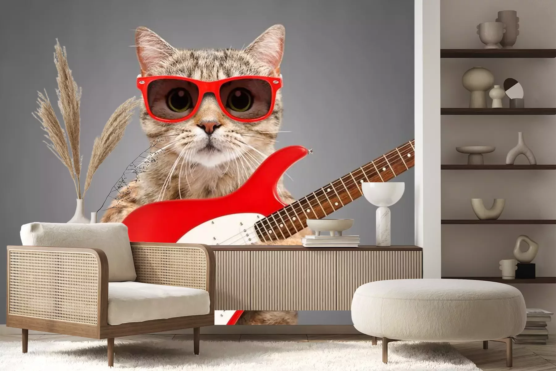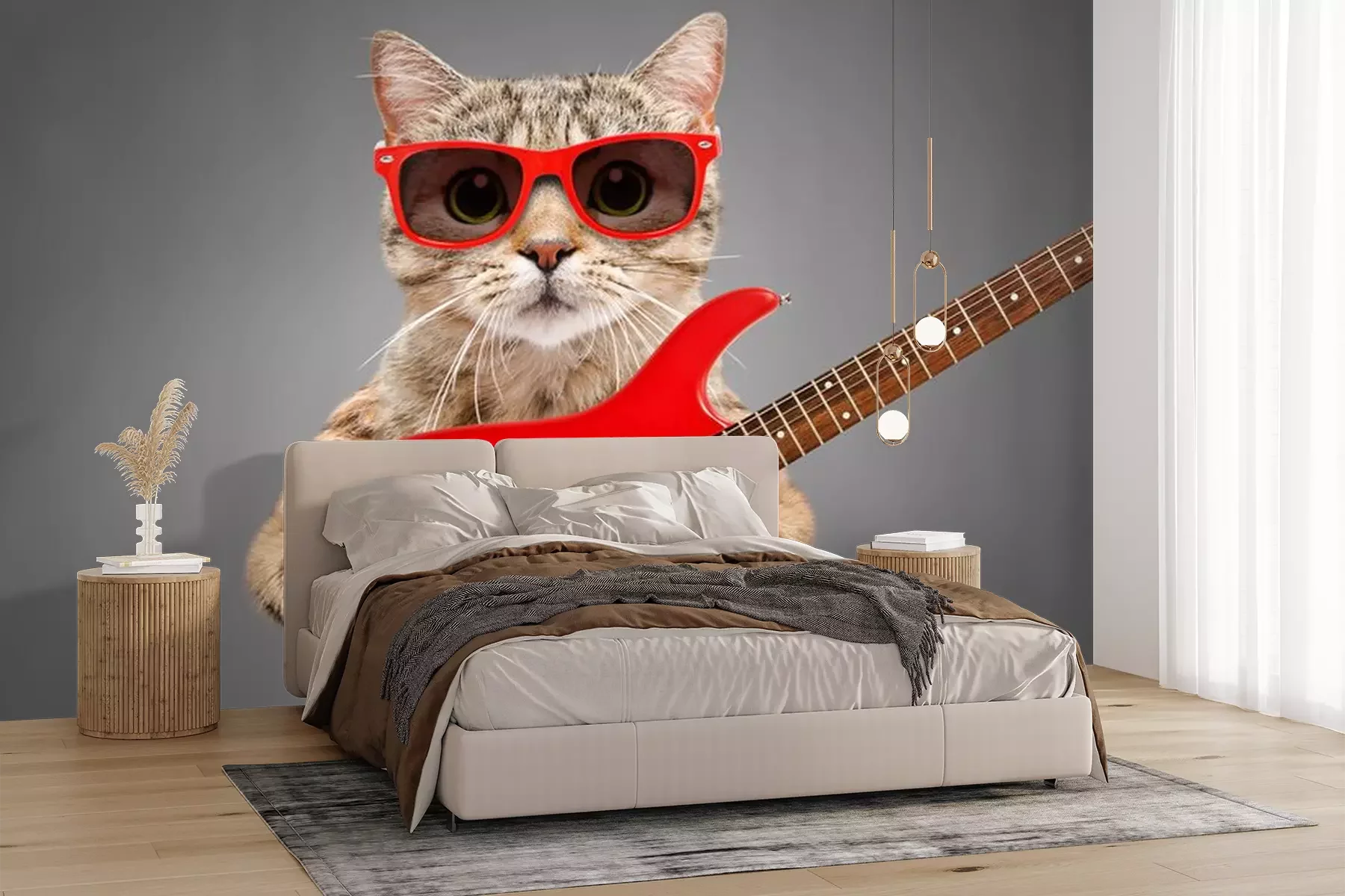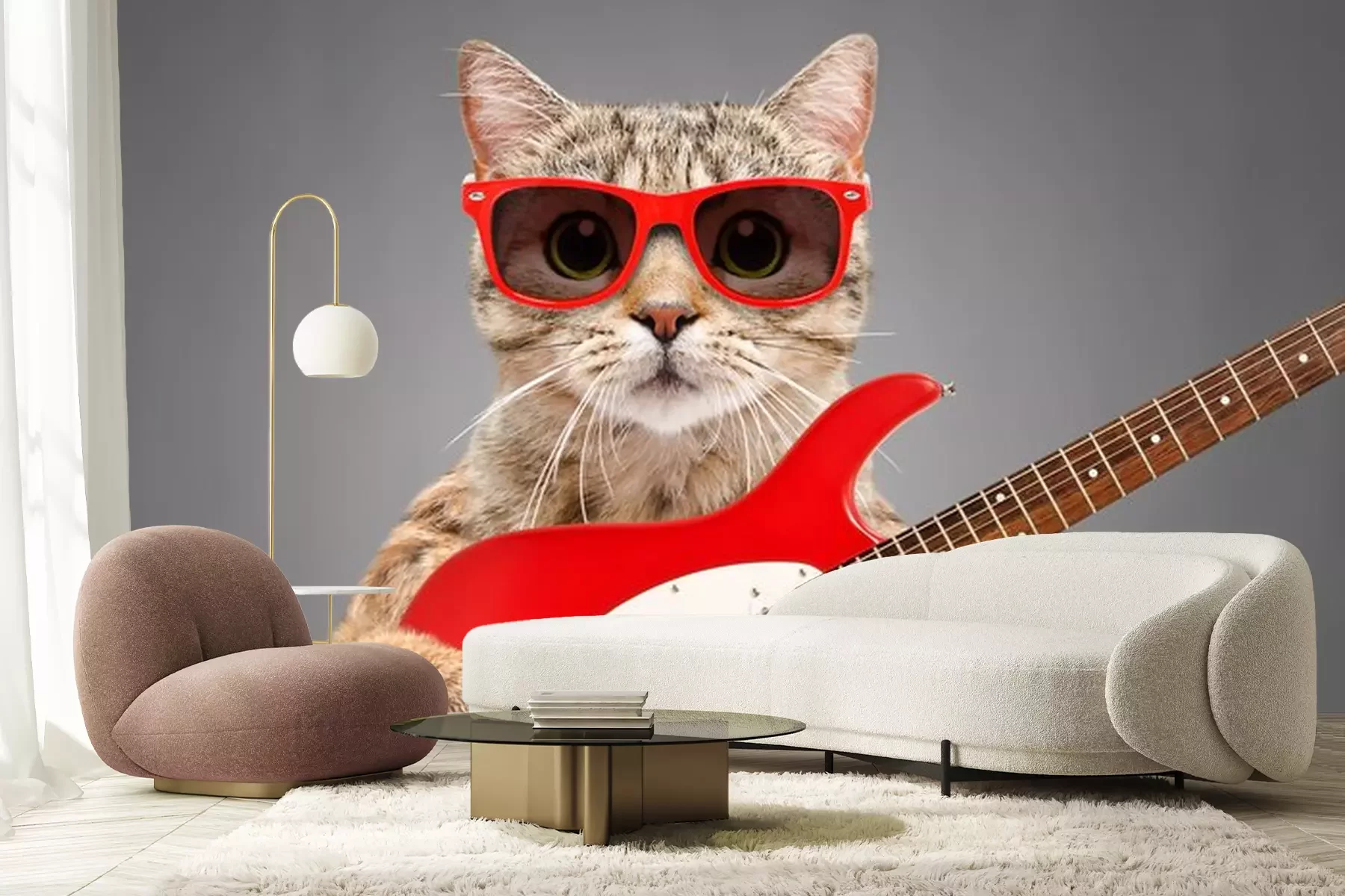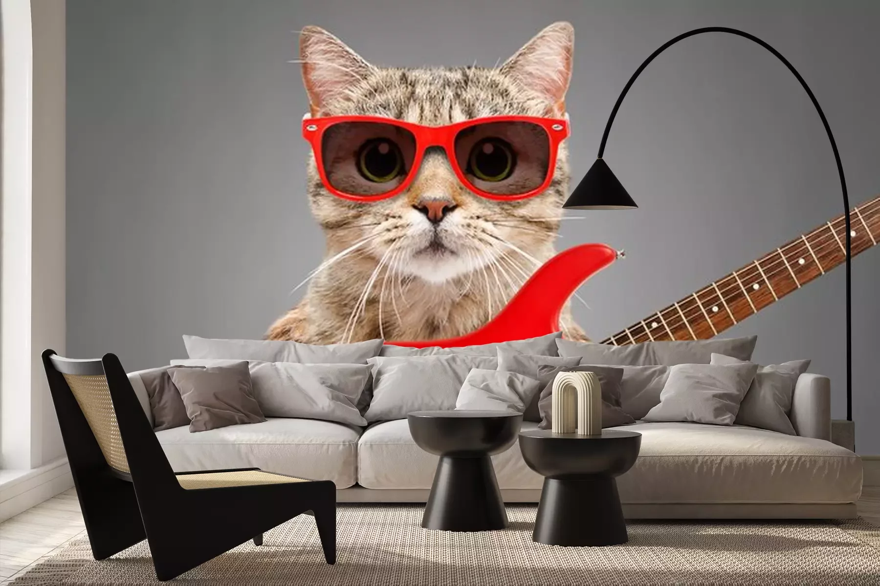 Sticker Katze mit Brille, die eine E-Gitarre hält