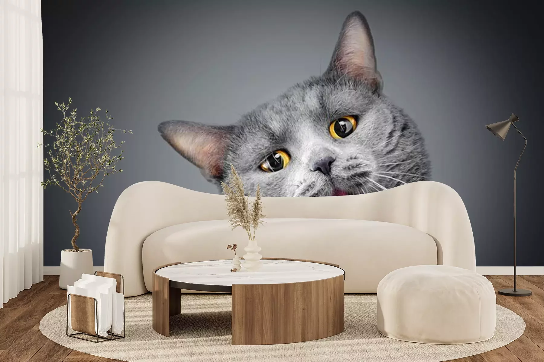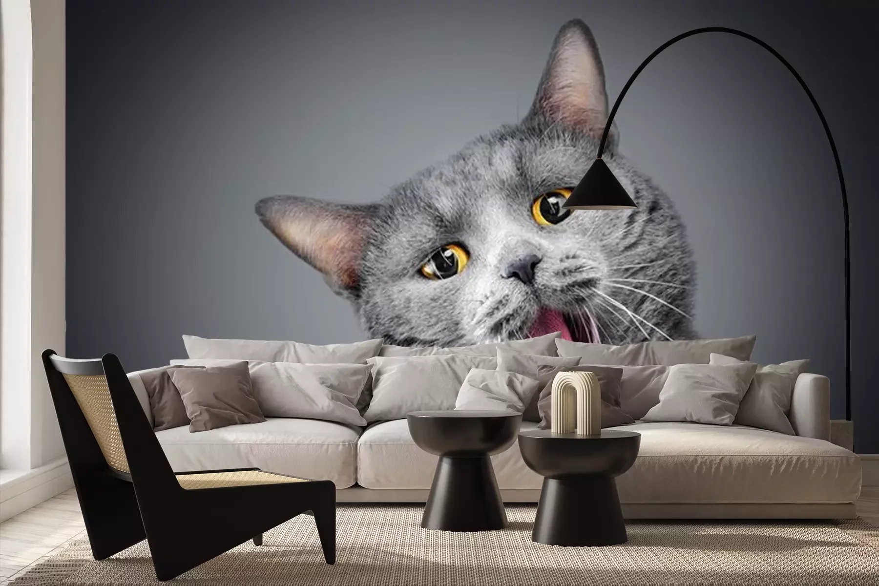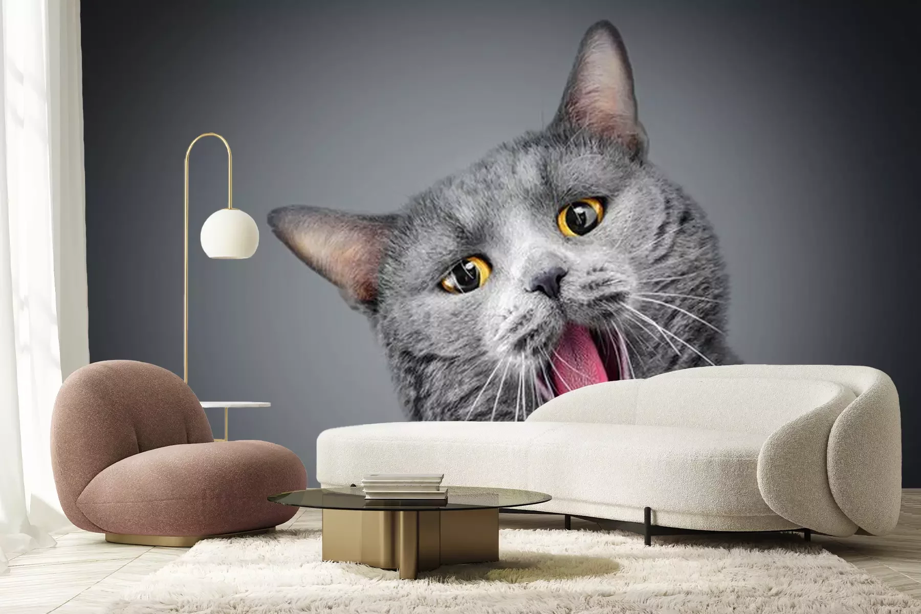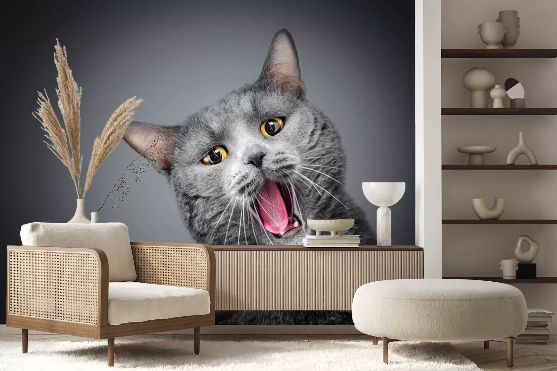 Sticker Katzen graue Katze mit gelben Augen und offenem Maul