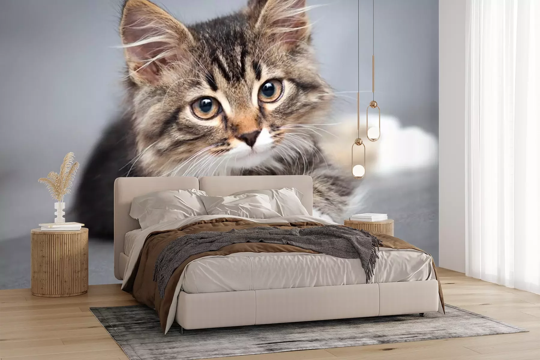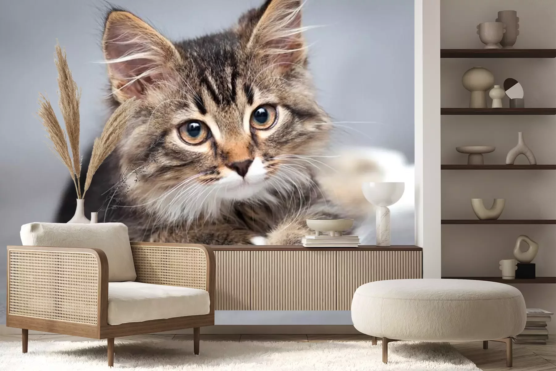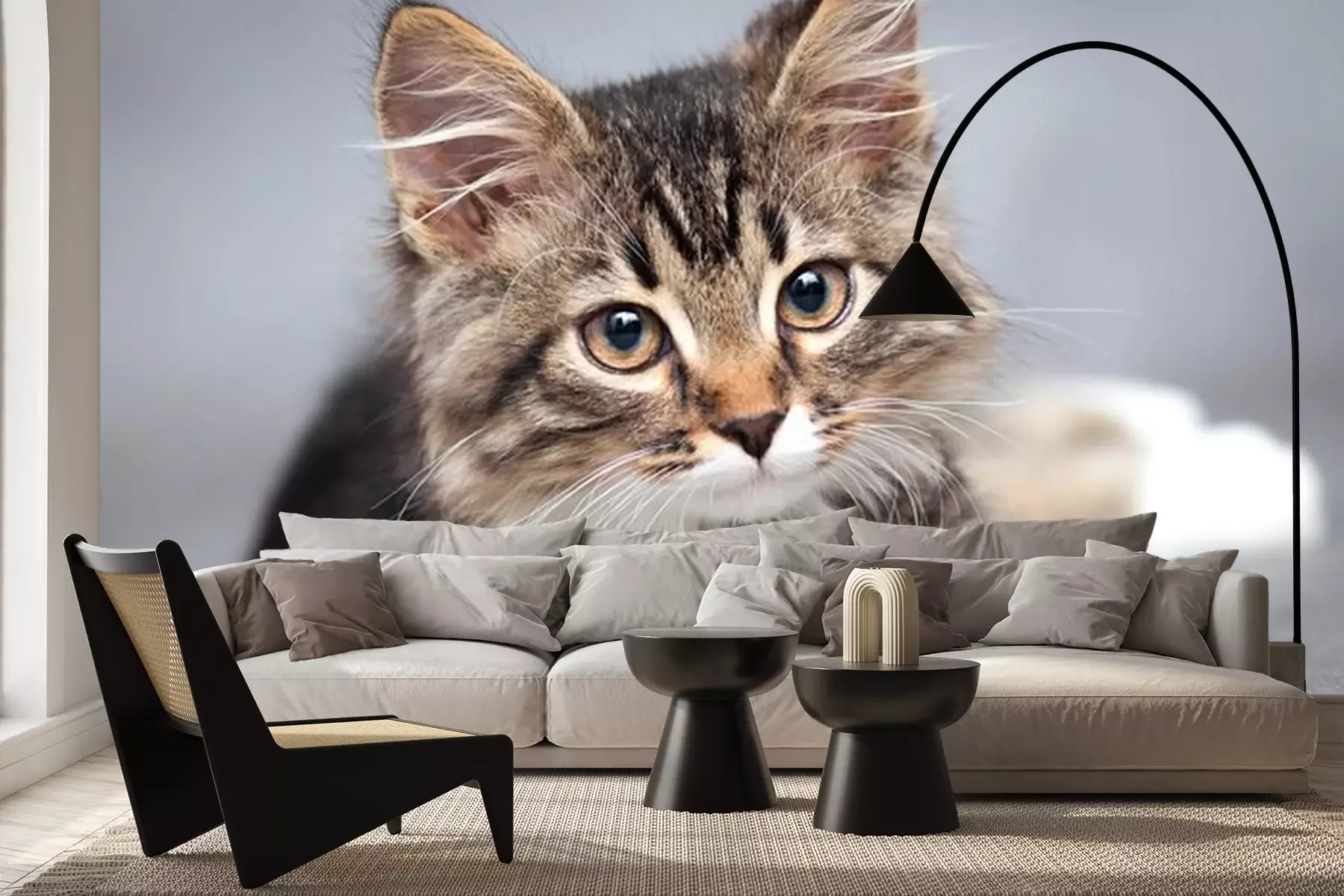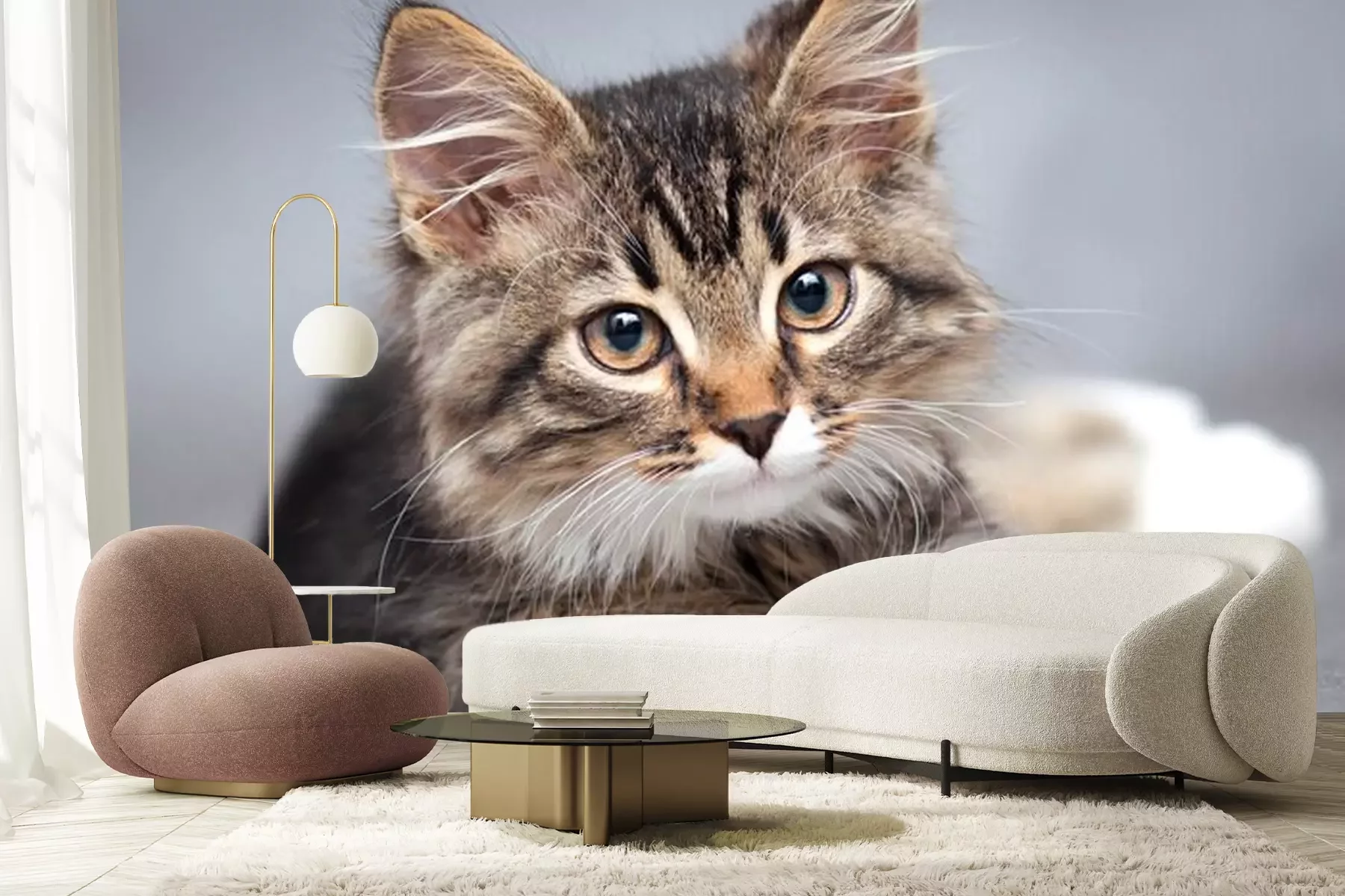 Sticker Katzen Hauskatze mit weißen Pfoten und Schnauze