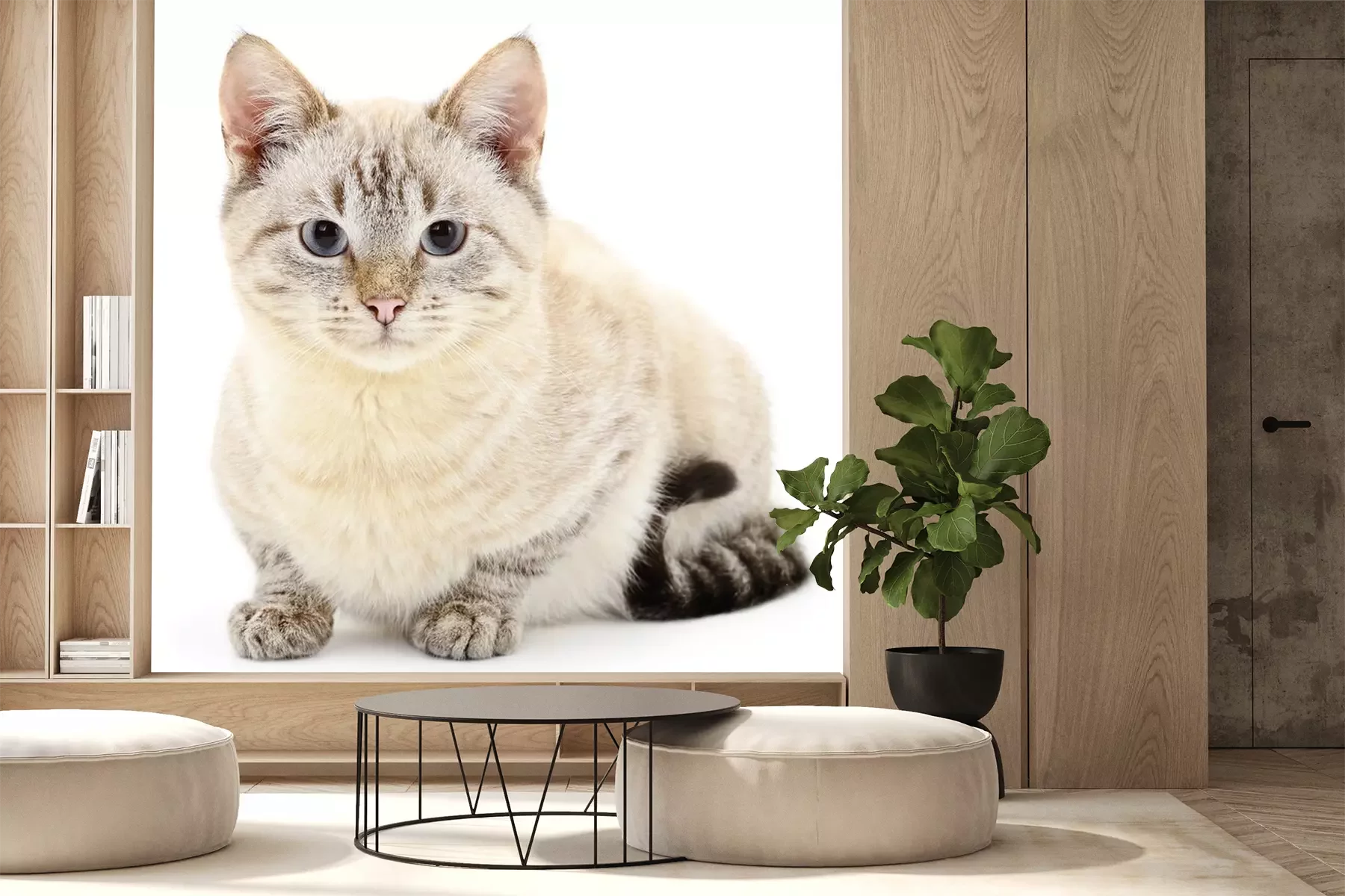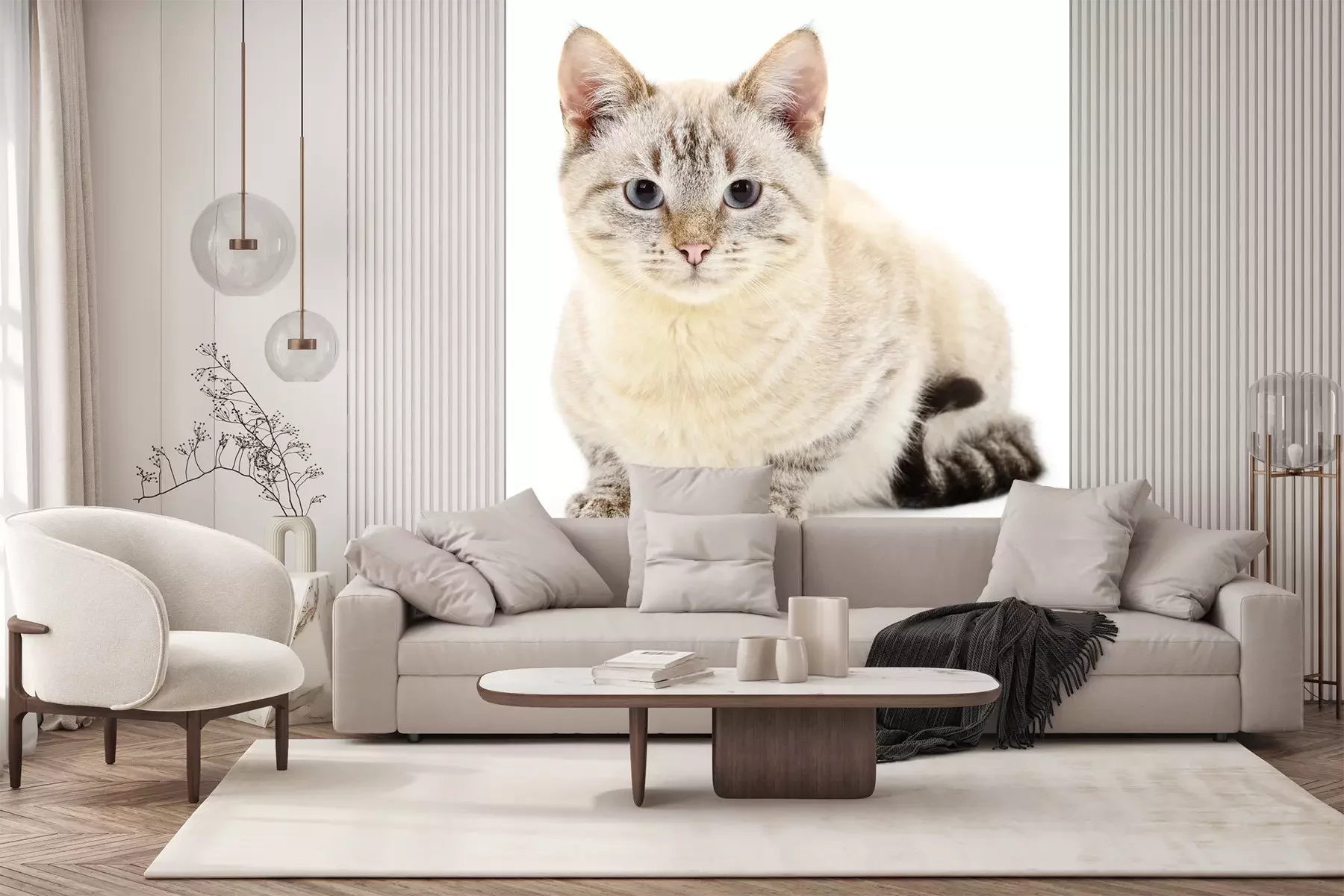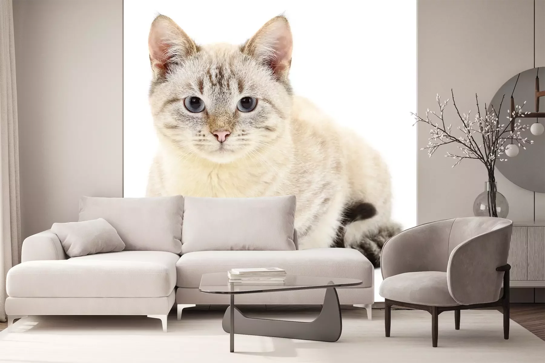 Sticker Katzen weiße Katze mit schwarzem Schwanz und grauen Pfoten