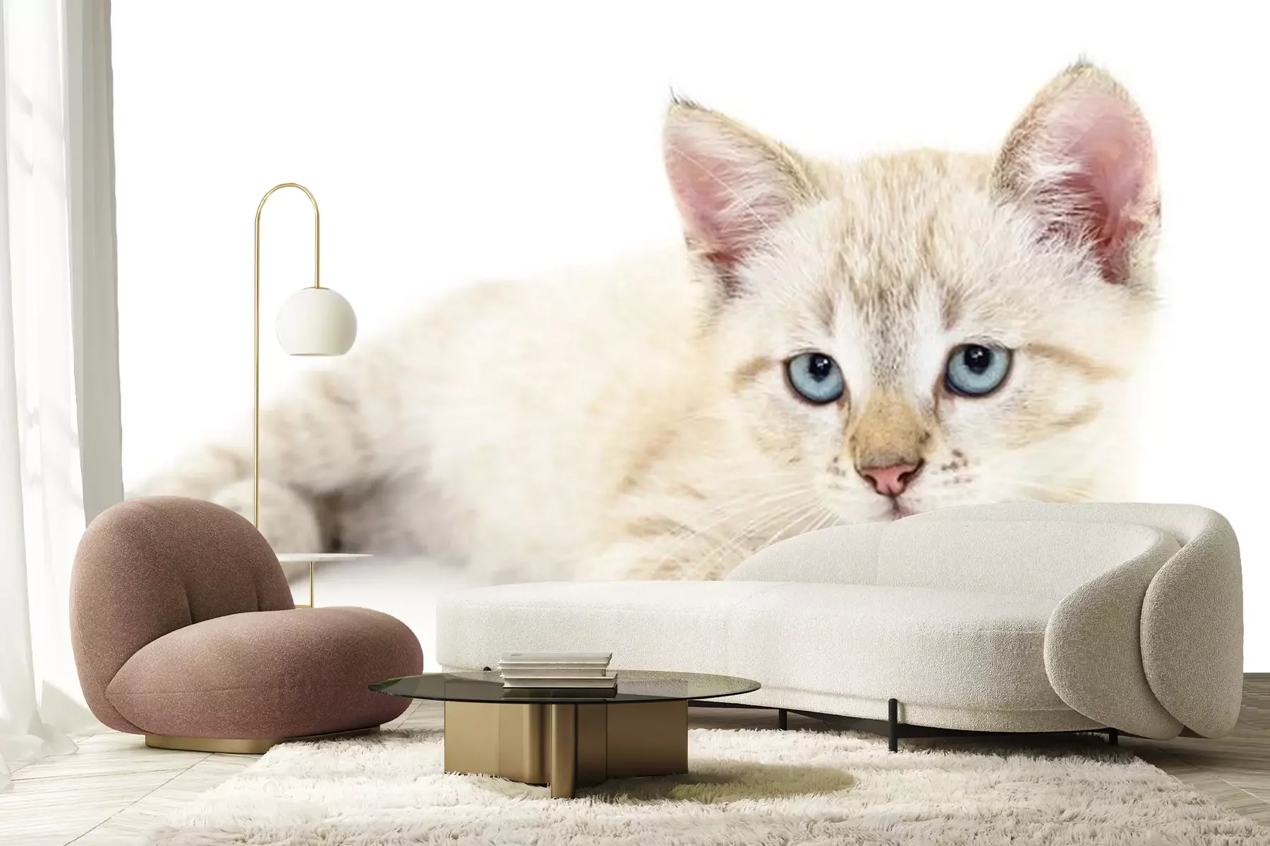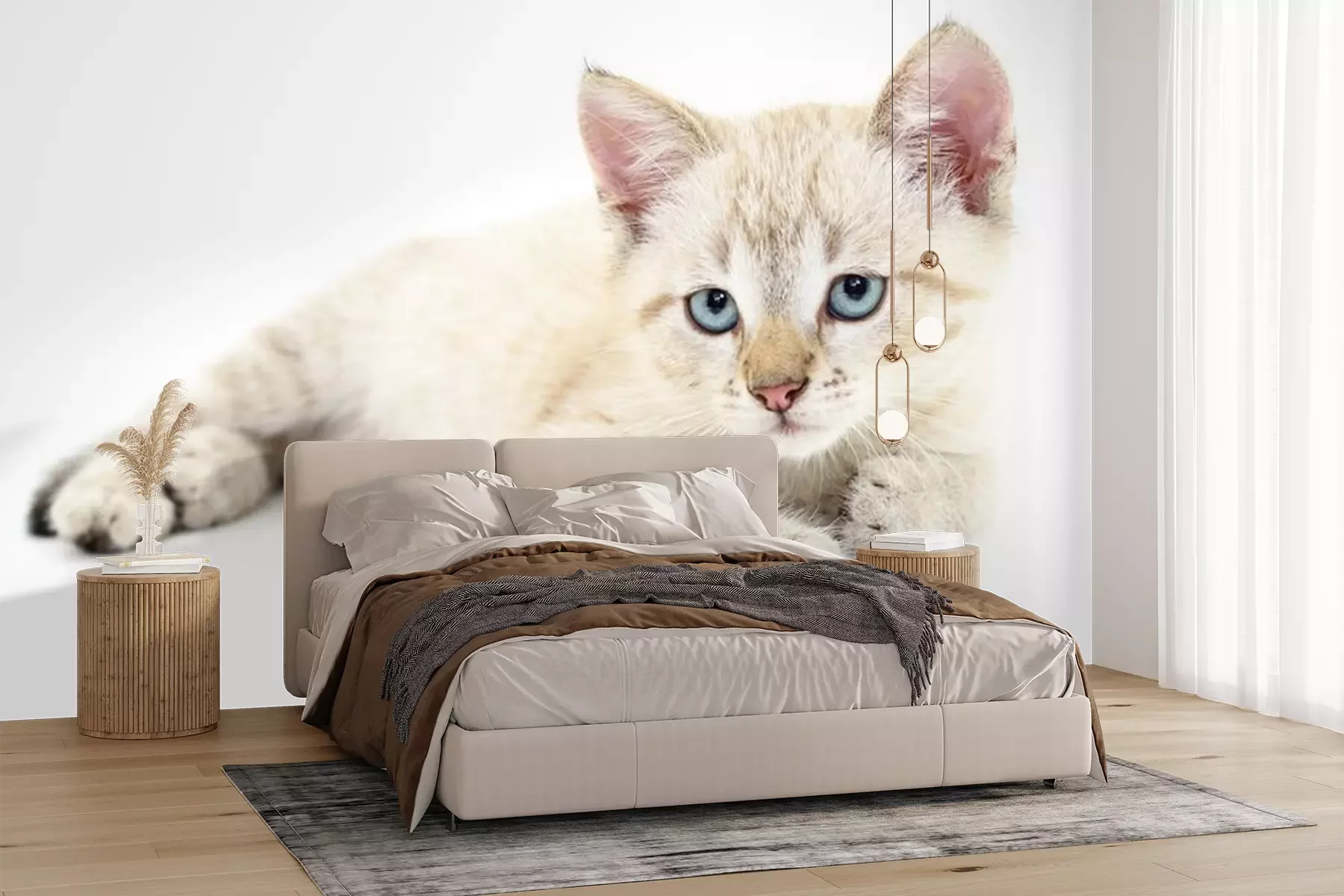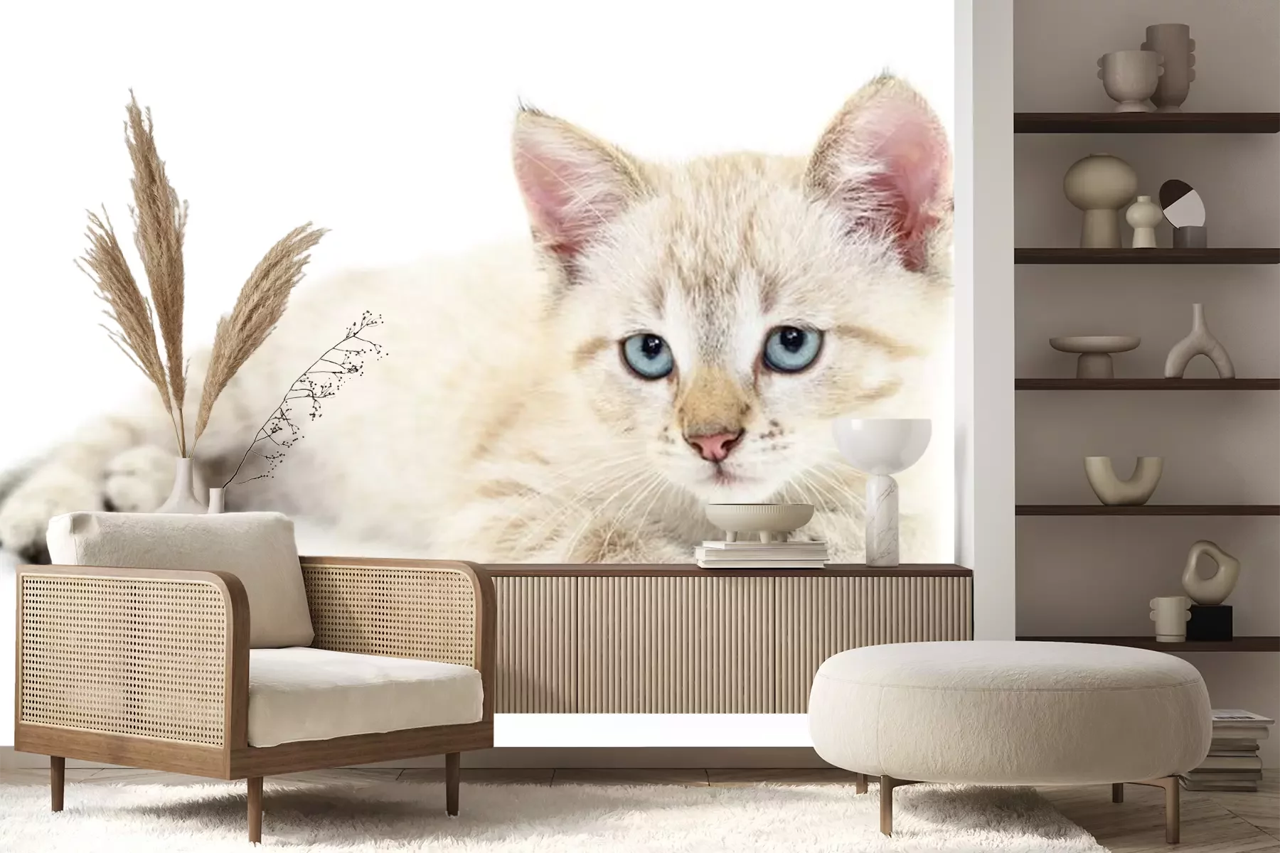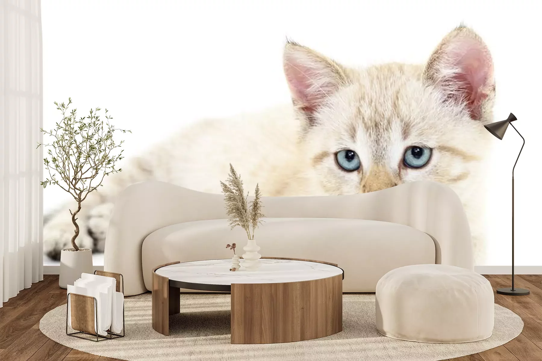 Sticker Katzen weiße Katze mit traurigen blauen Augen