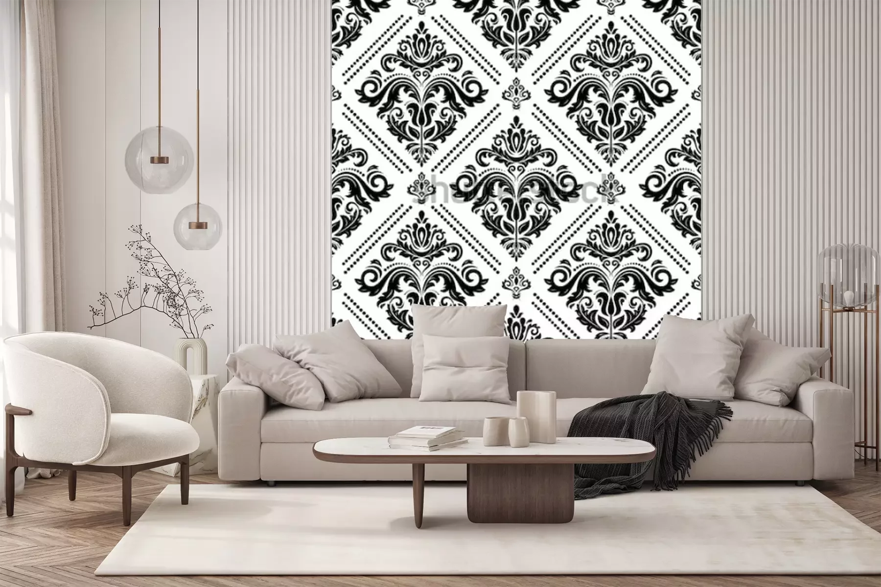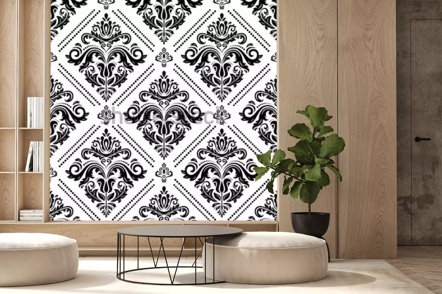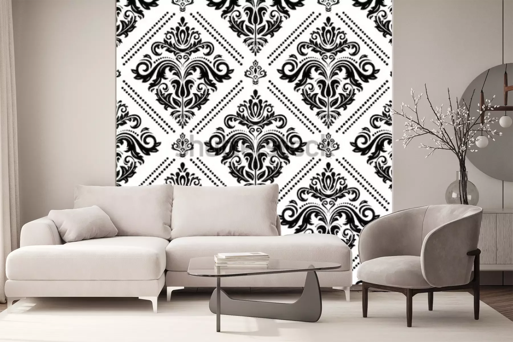 Sticker Klassischer Schwarzweiss-Barockmustervektor. Nahtloser abstrakter Hintergrund mit sich wiederholenden Elementen