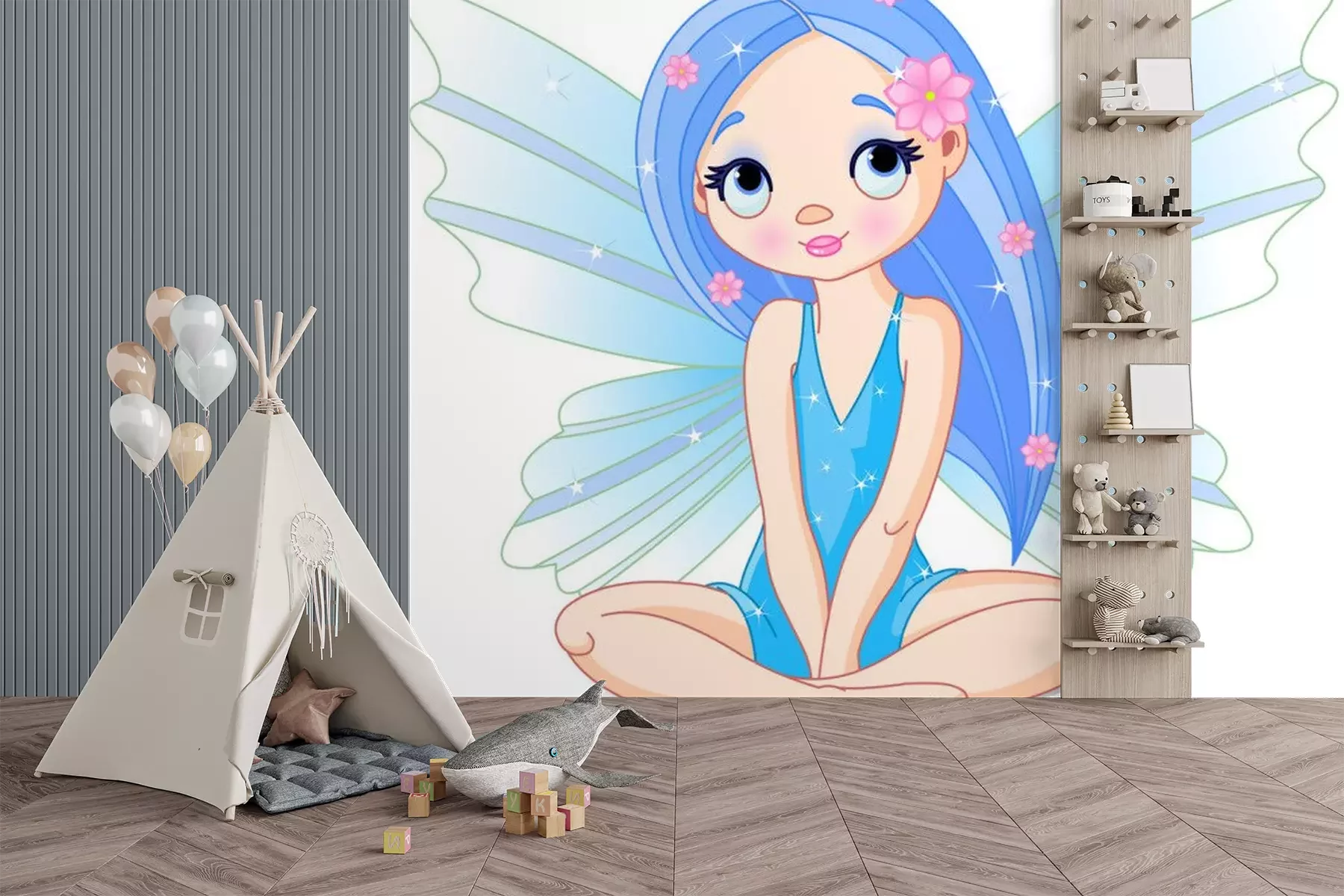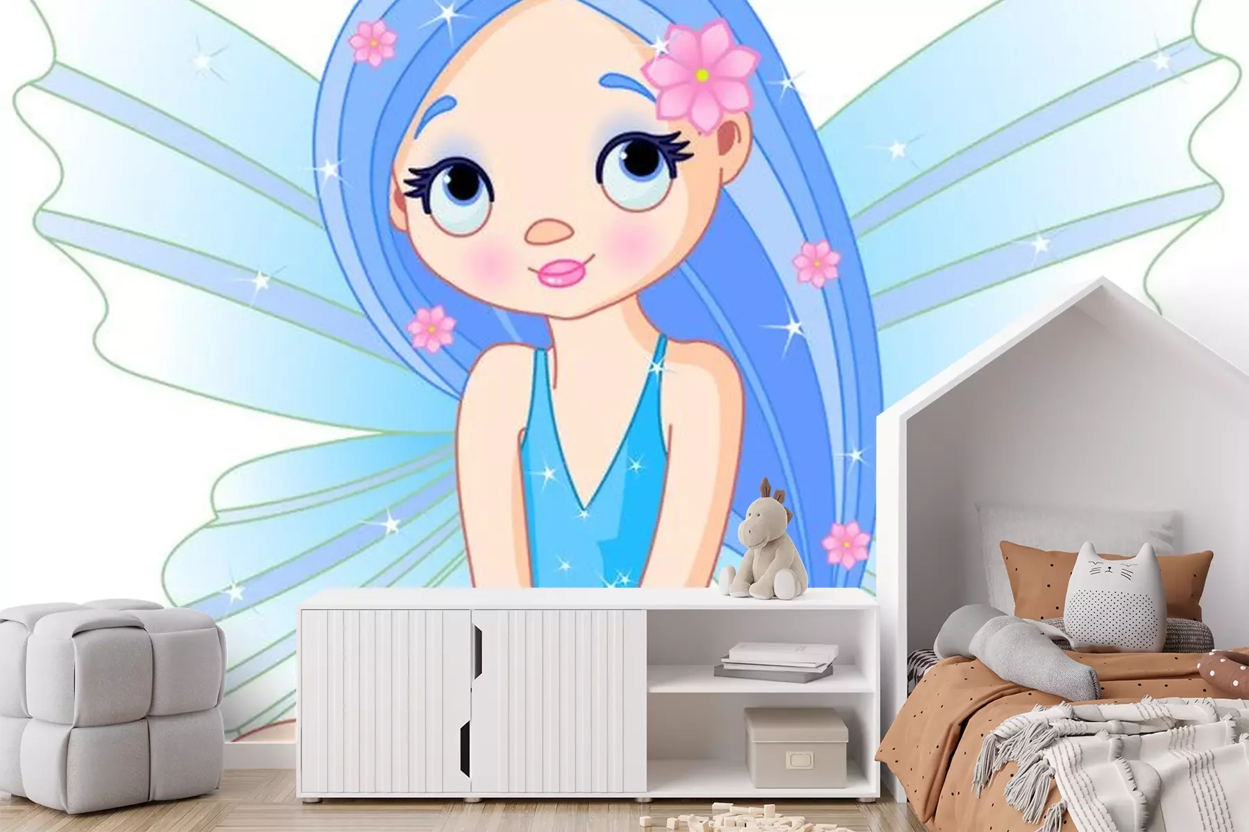 Fee mit runden blauen AugenSticker
