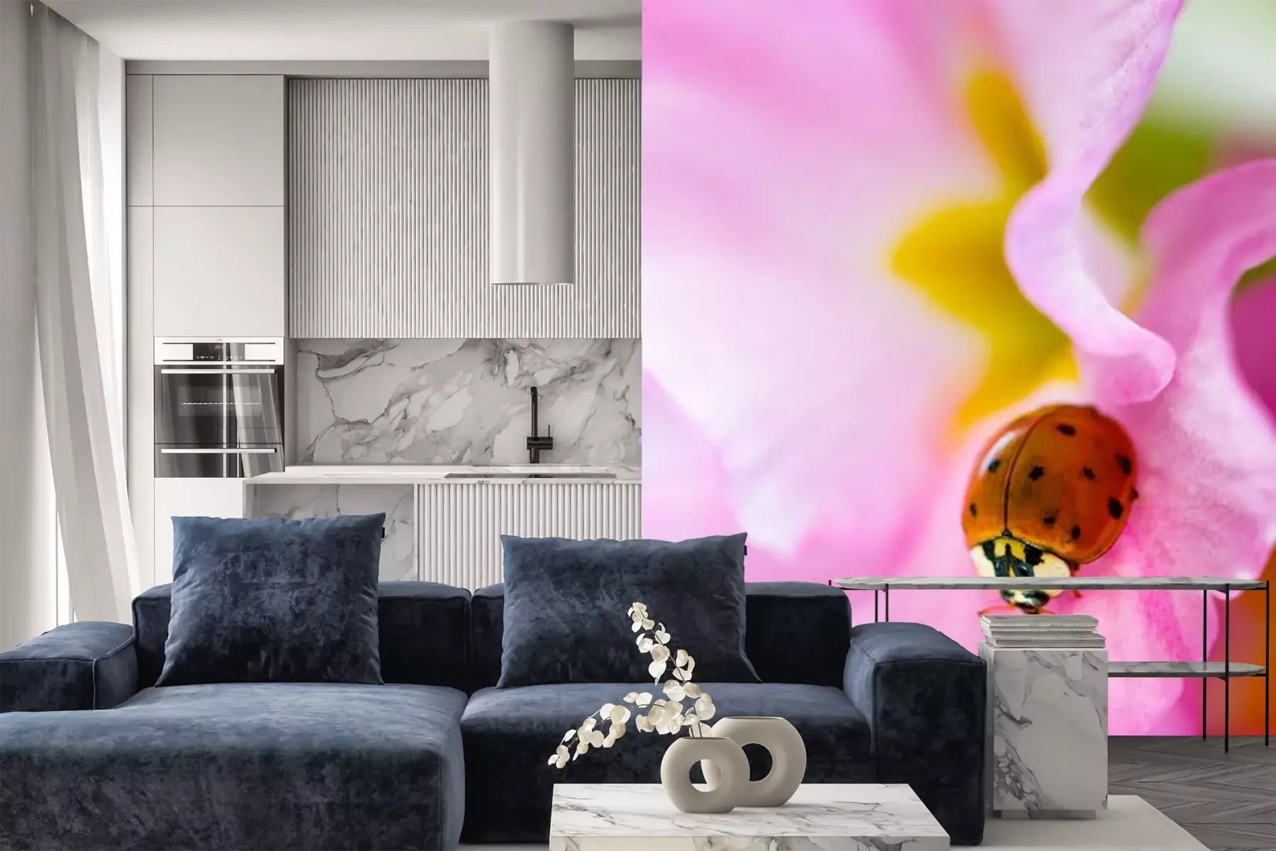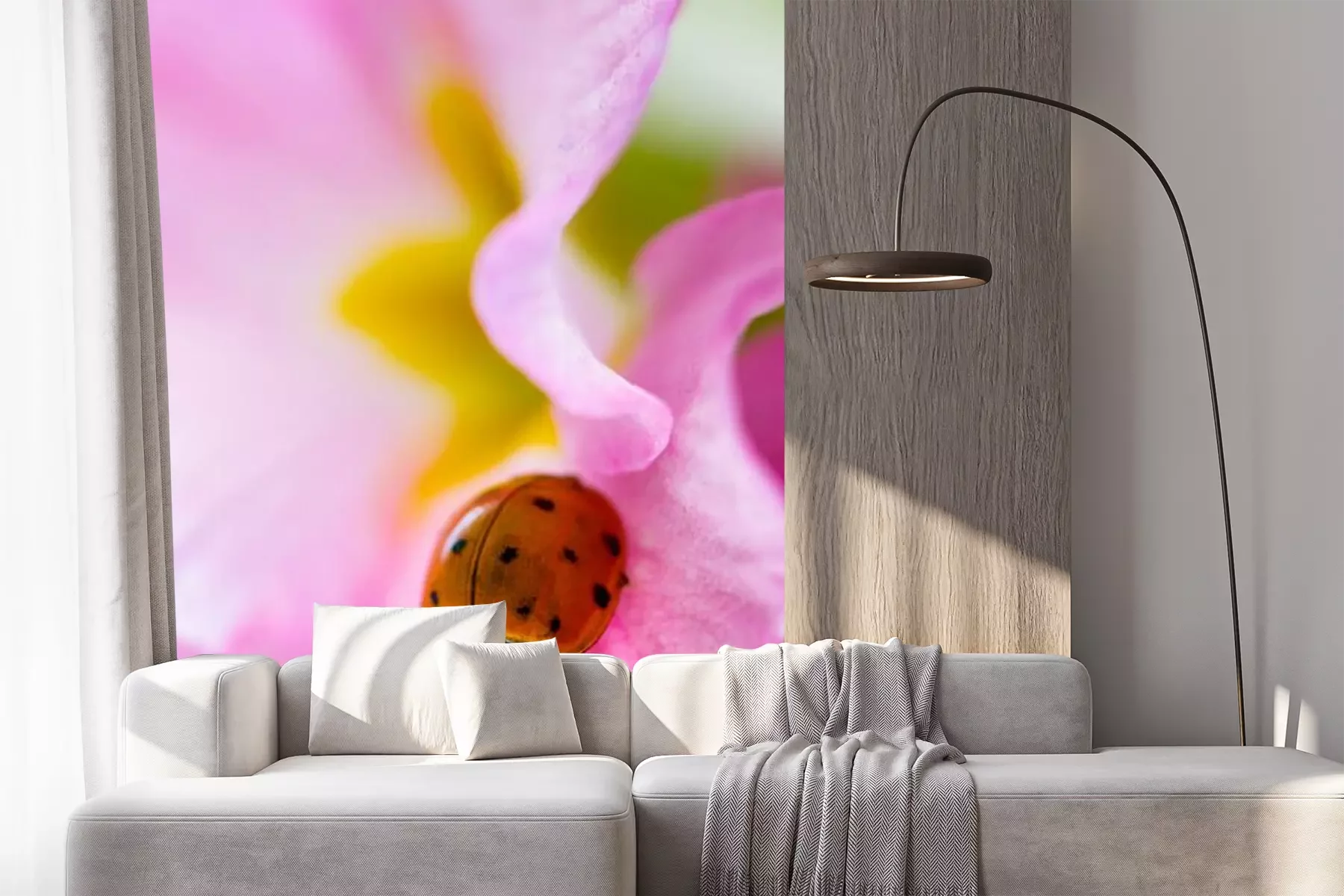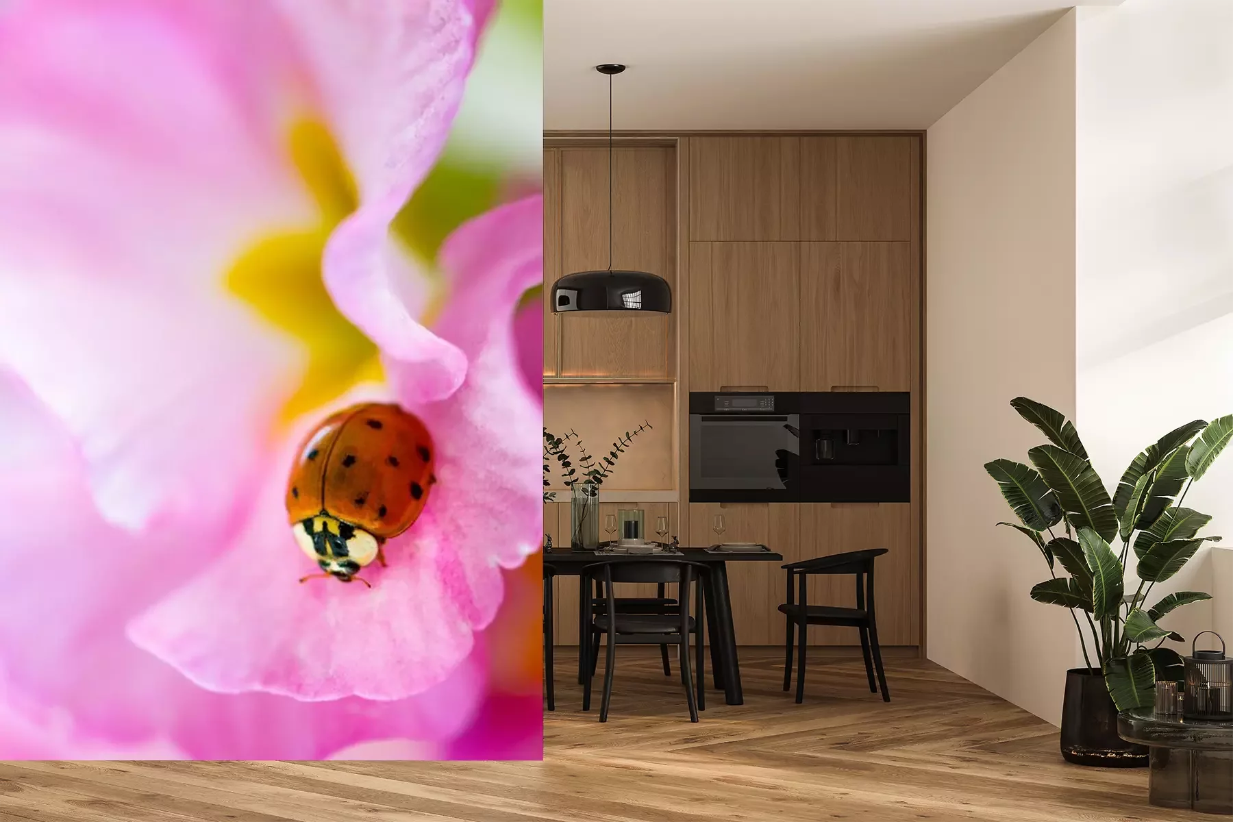 Sticker Kleiner Marienkäfer auf einer rosa Nachtkerze