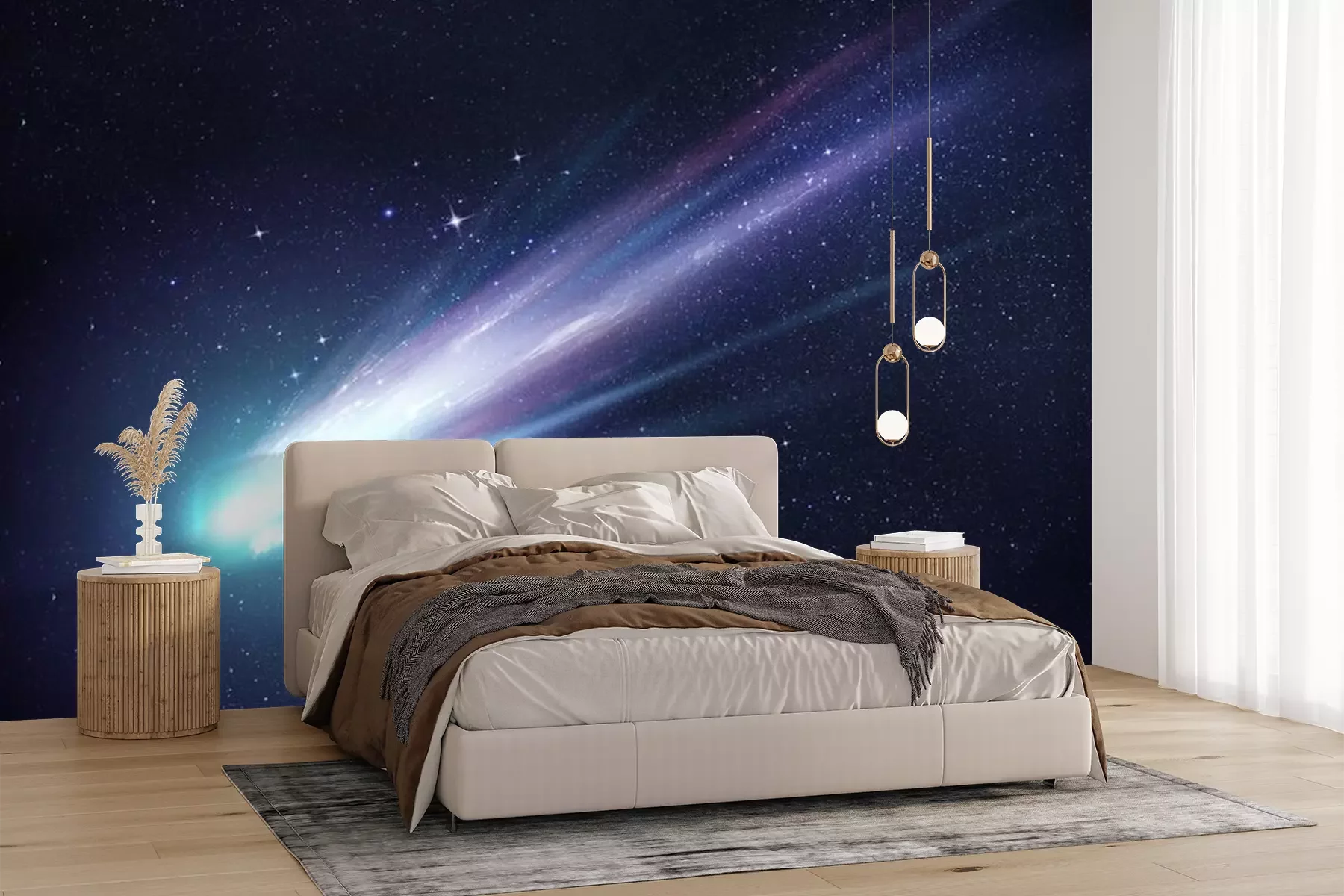 Sticker Komet, der durch einen Himmel voller Sterne rast