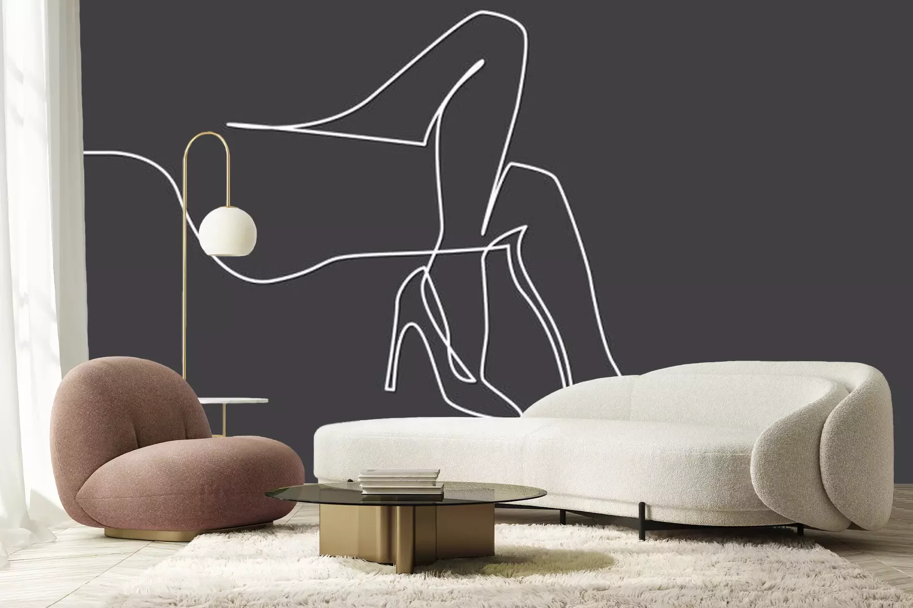 Sticker kontinuierliche Strichzeichnung von nackten Frauen Beine in High Heels