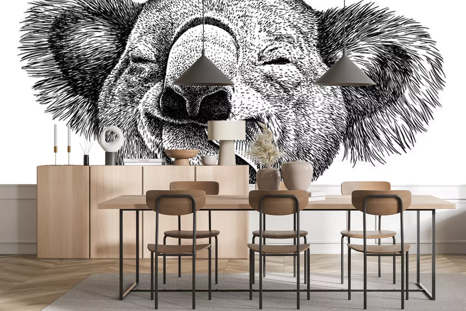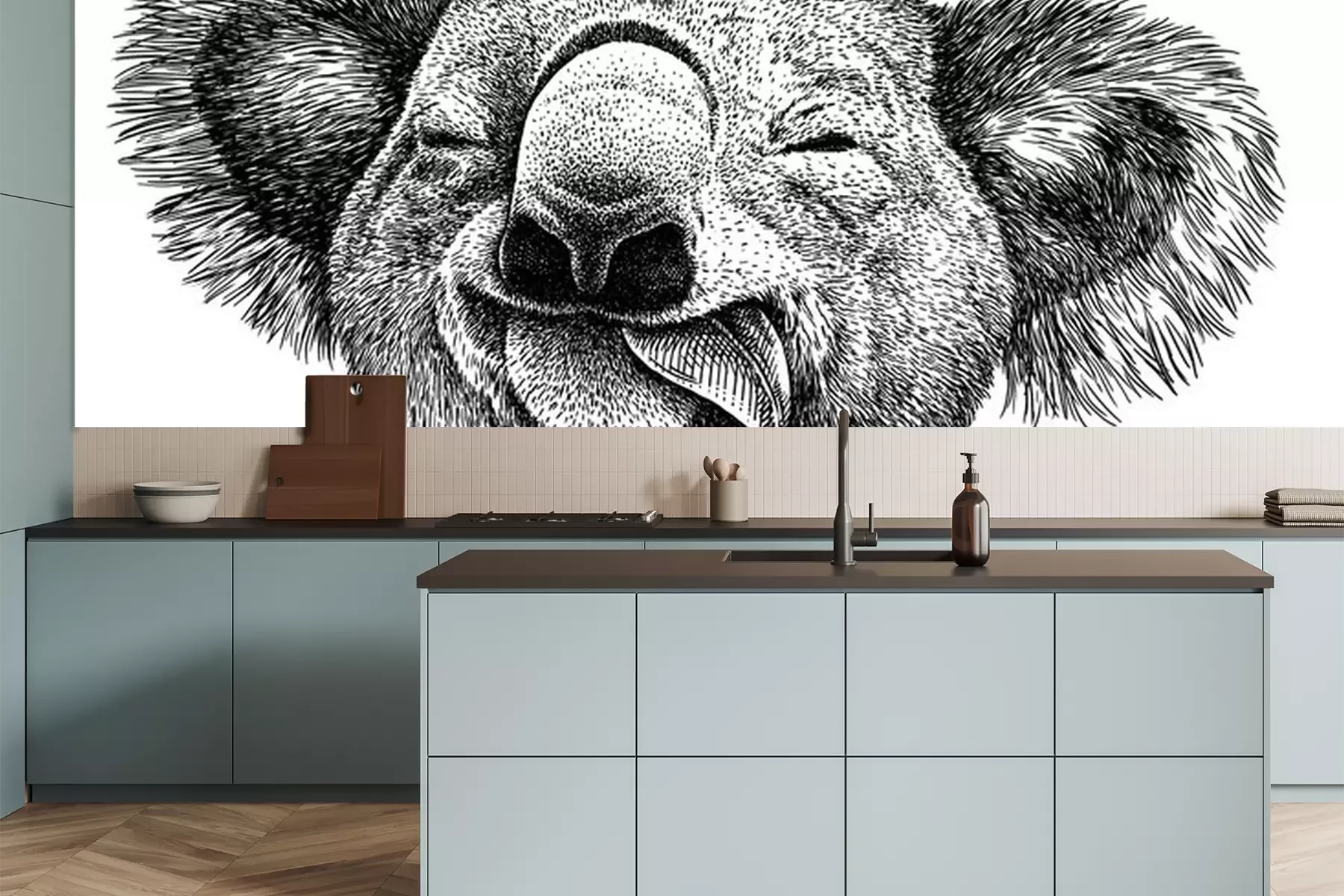 Sticker Kopf eines Koalas, der an einem Eukalyptusblatt kaut
