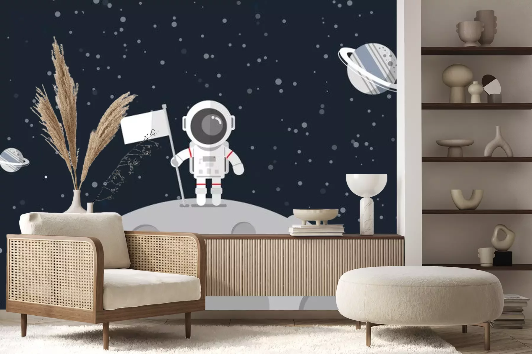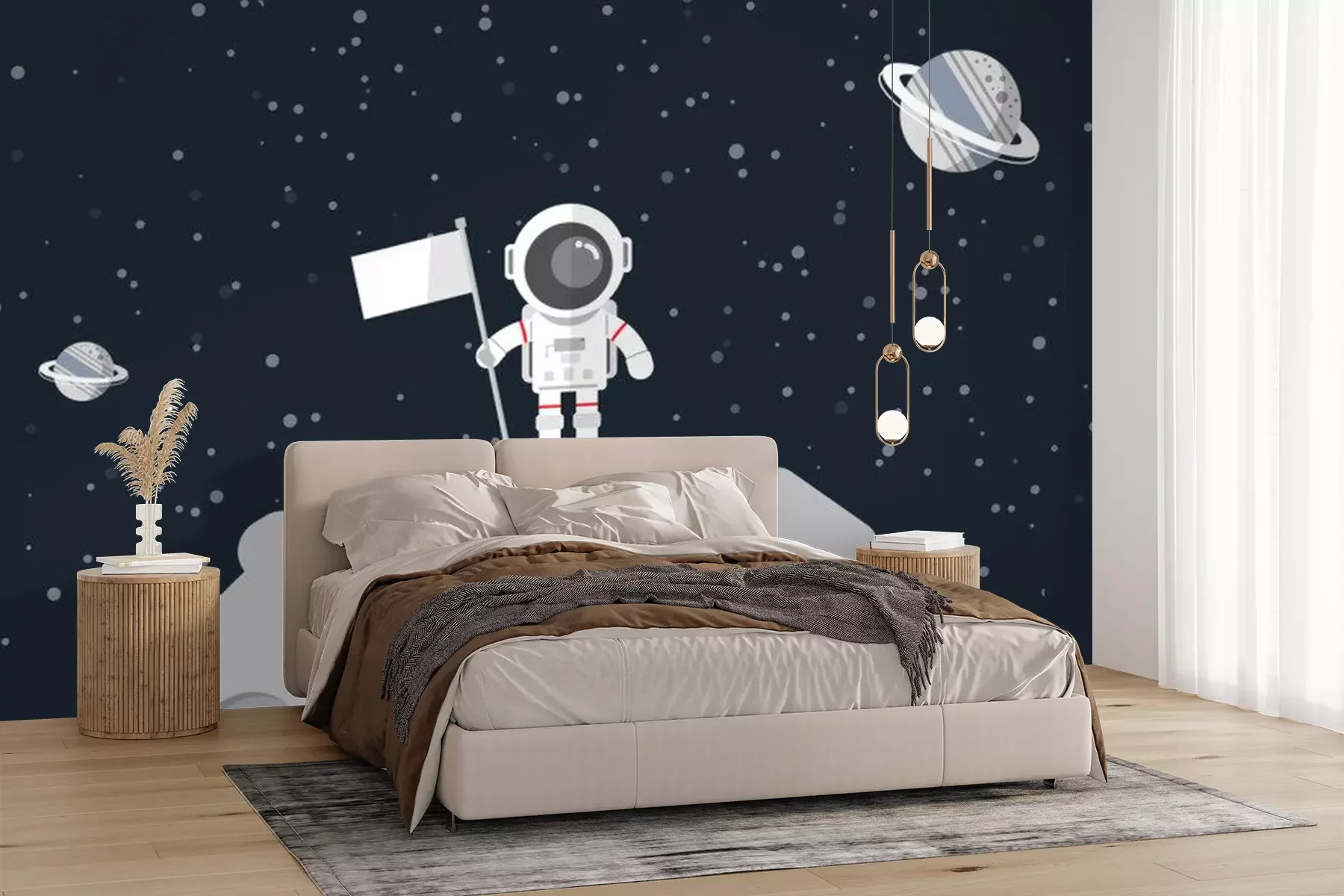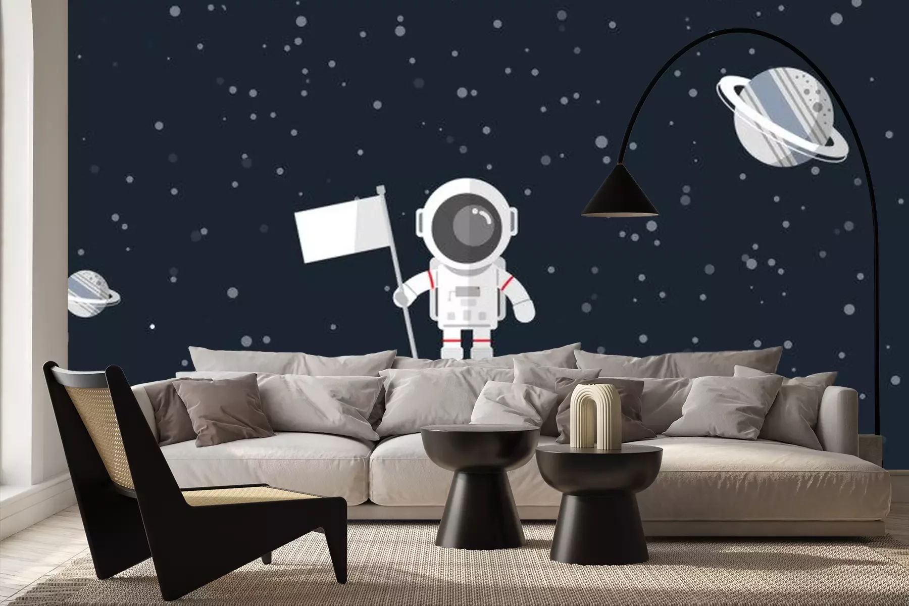 Sticker Kosmischer Astronaut mit Flagge auf dem Planeten