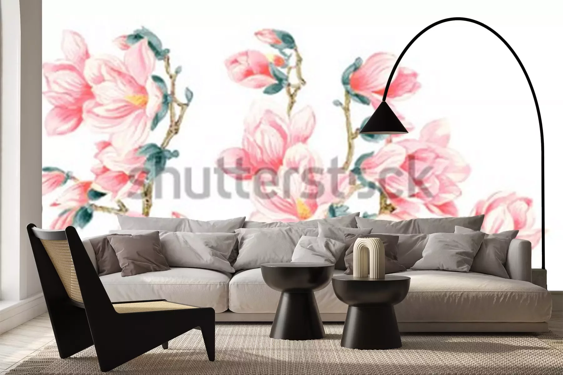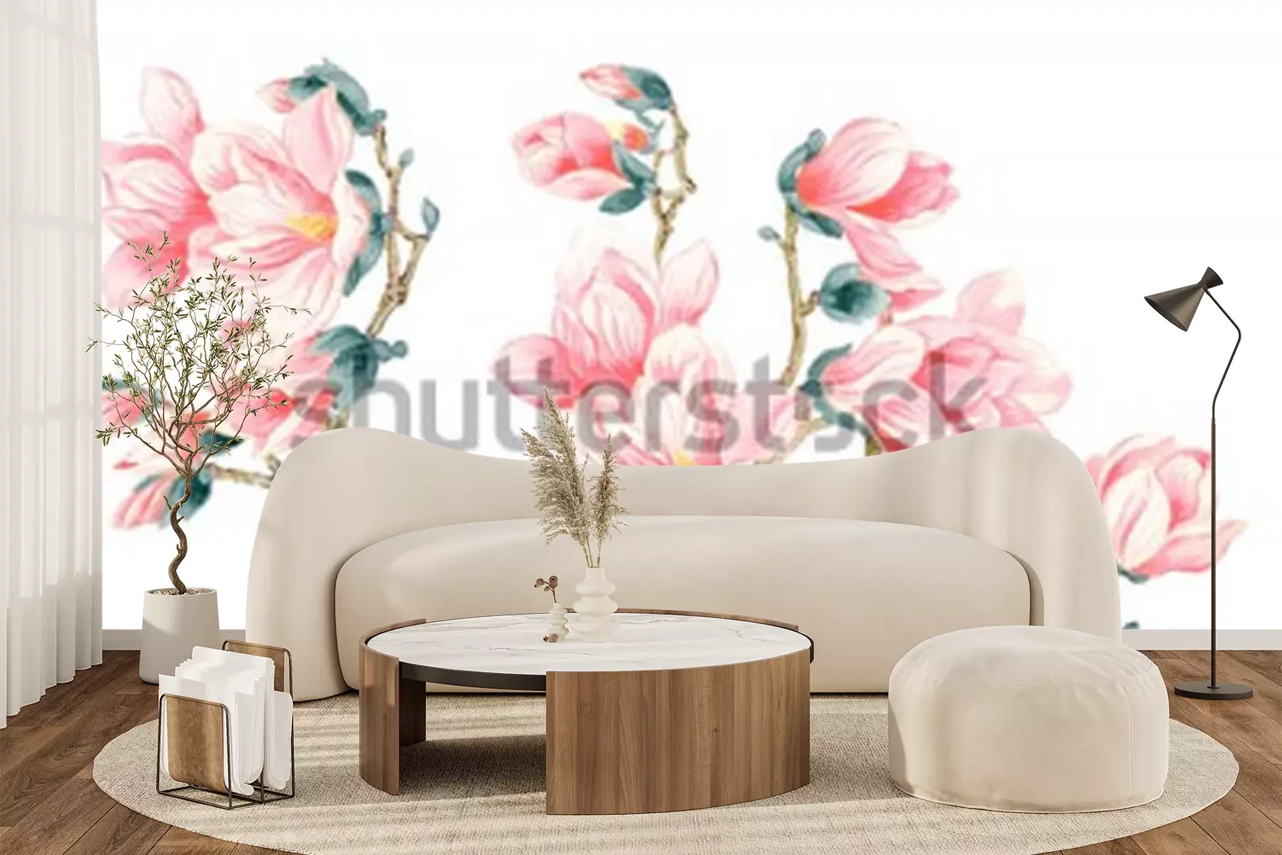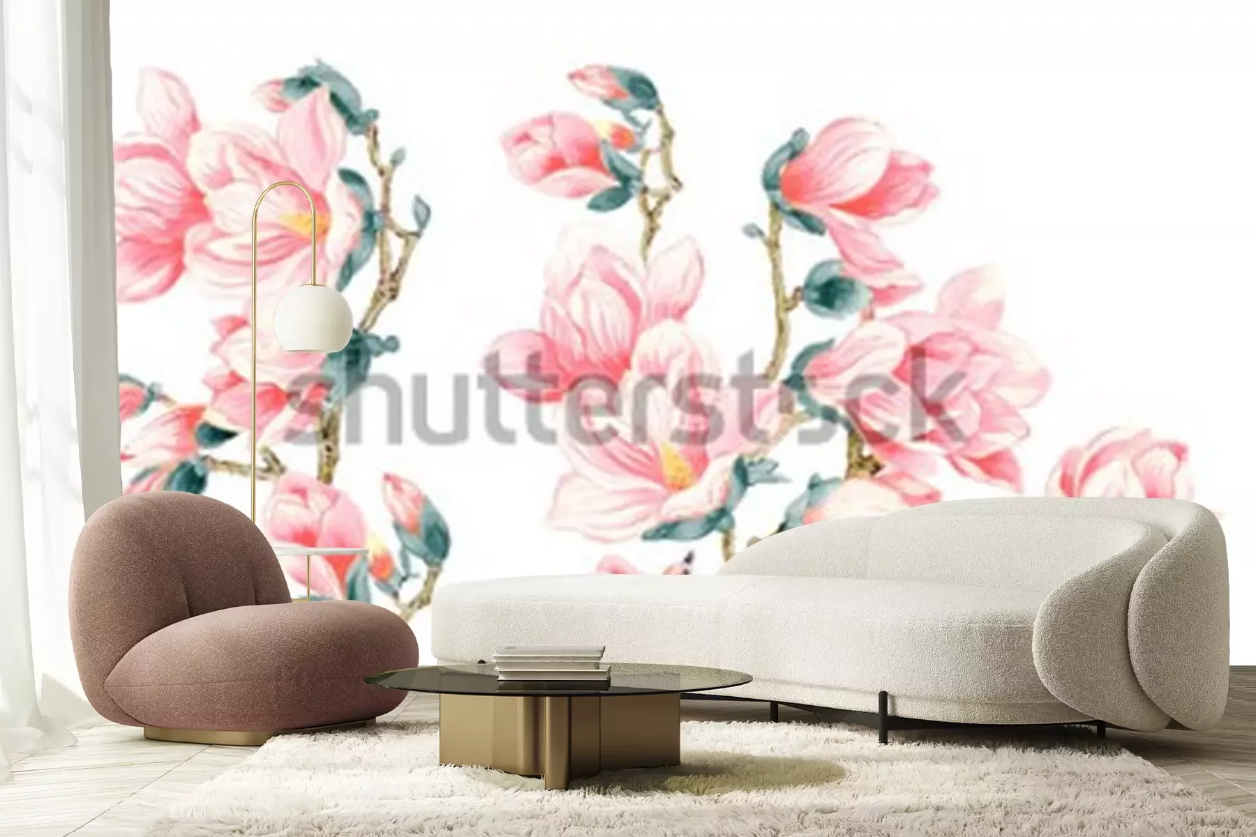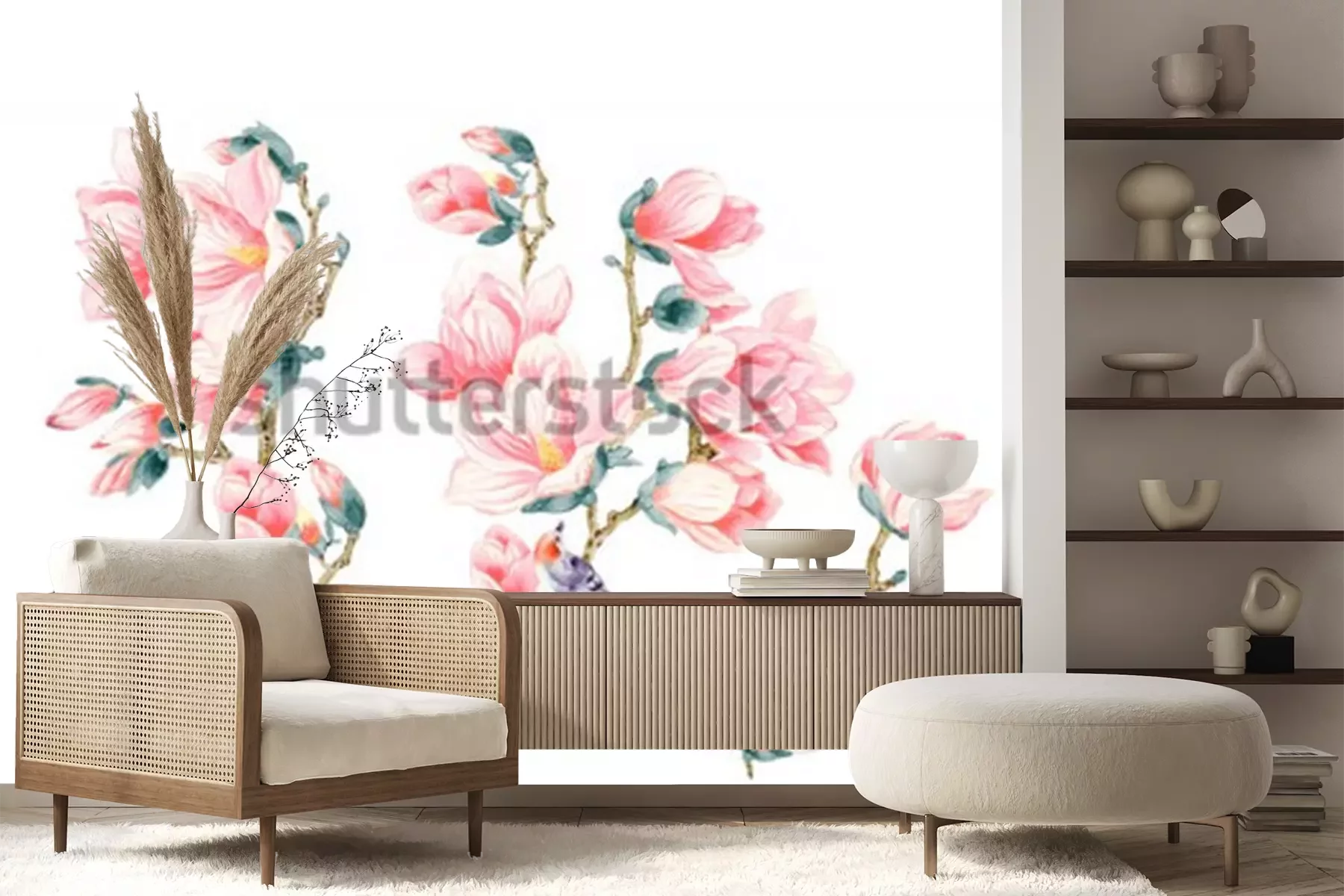 Sticker Lachsfarbene Magnolien mit Vogel