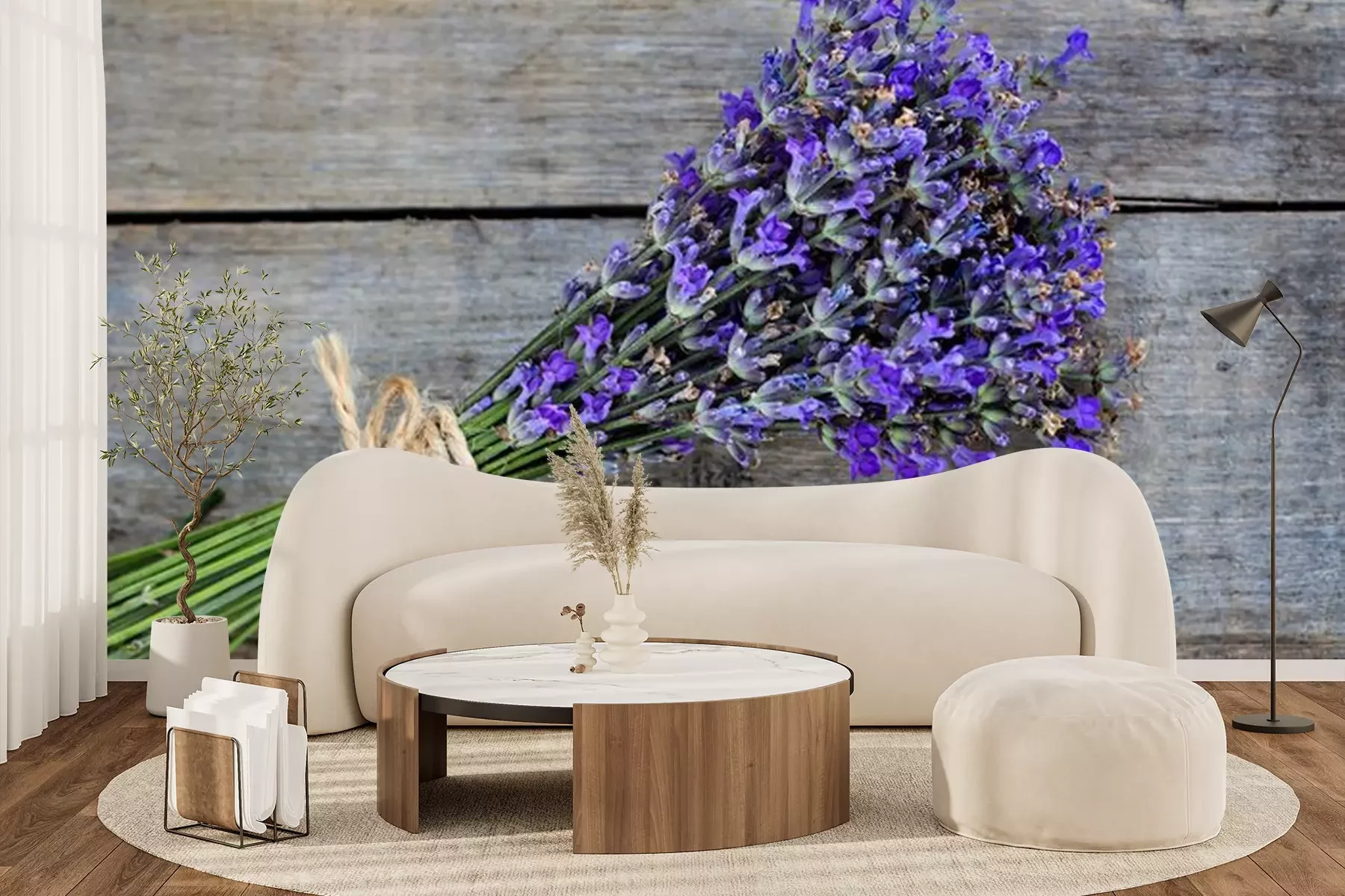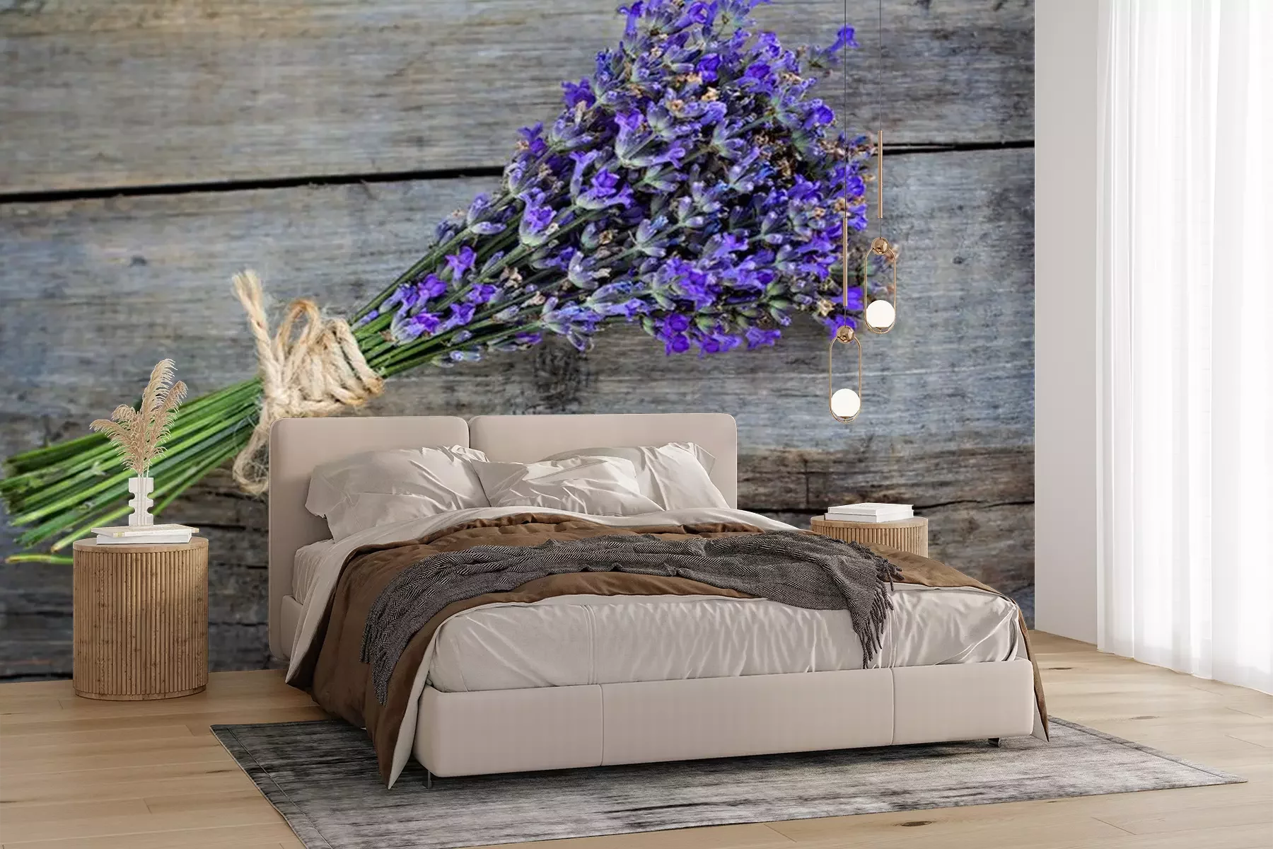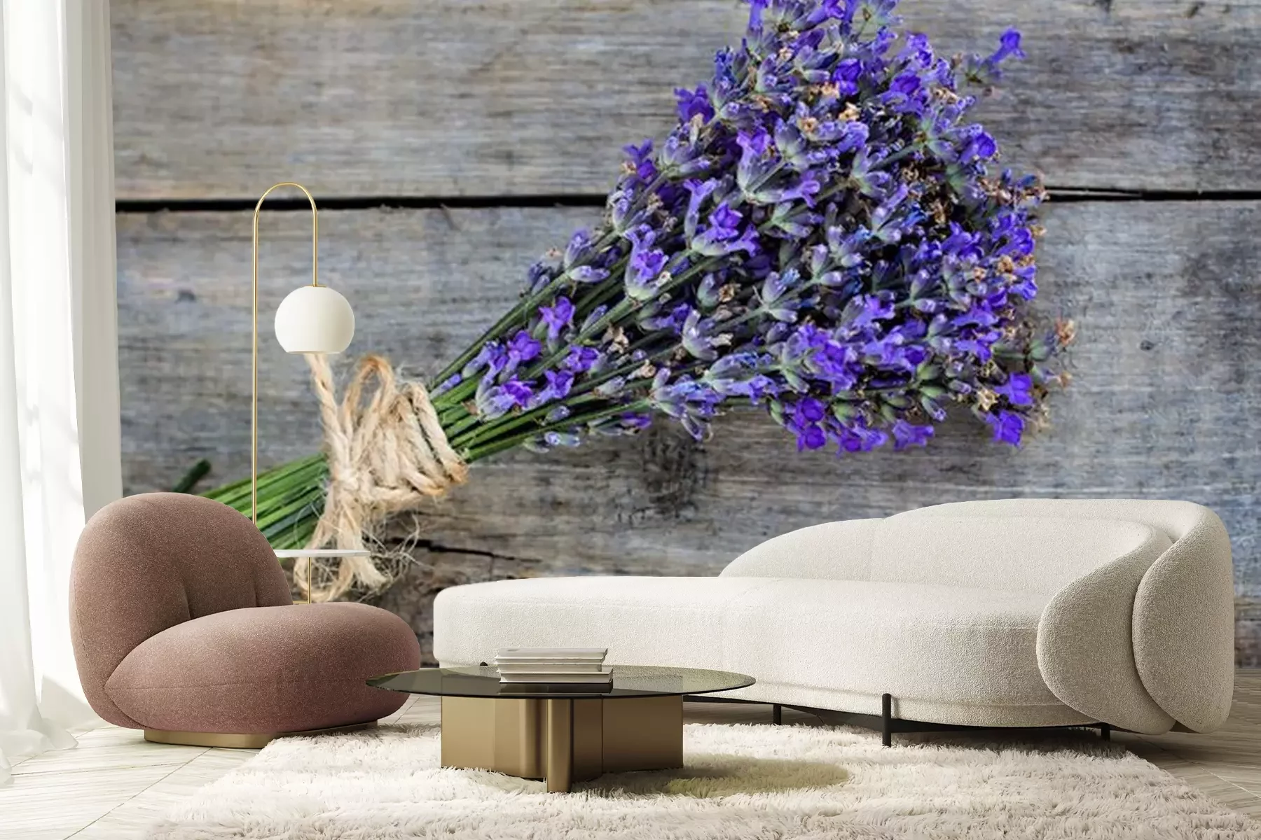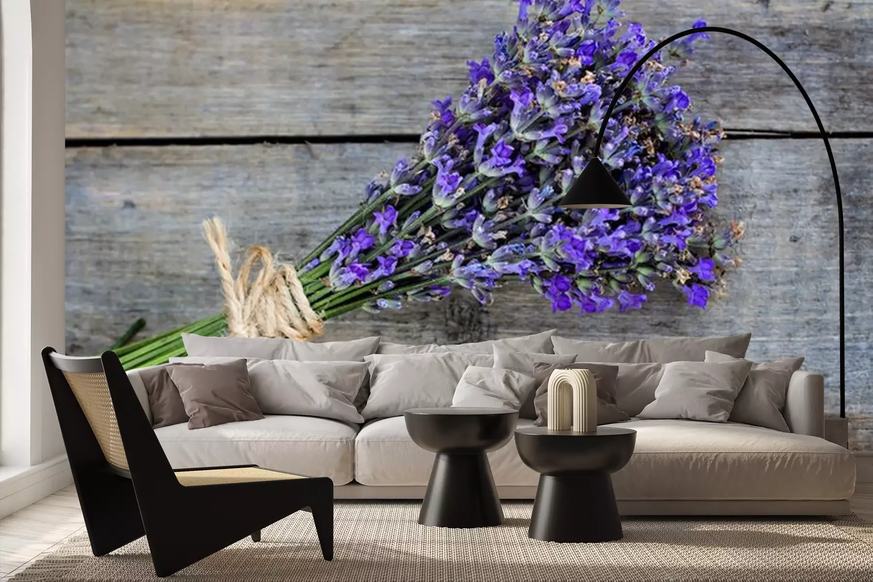 Sticker Lavendel auf Holz mit Schnur gebunden