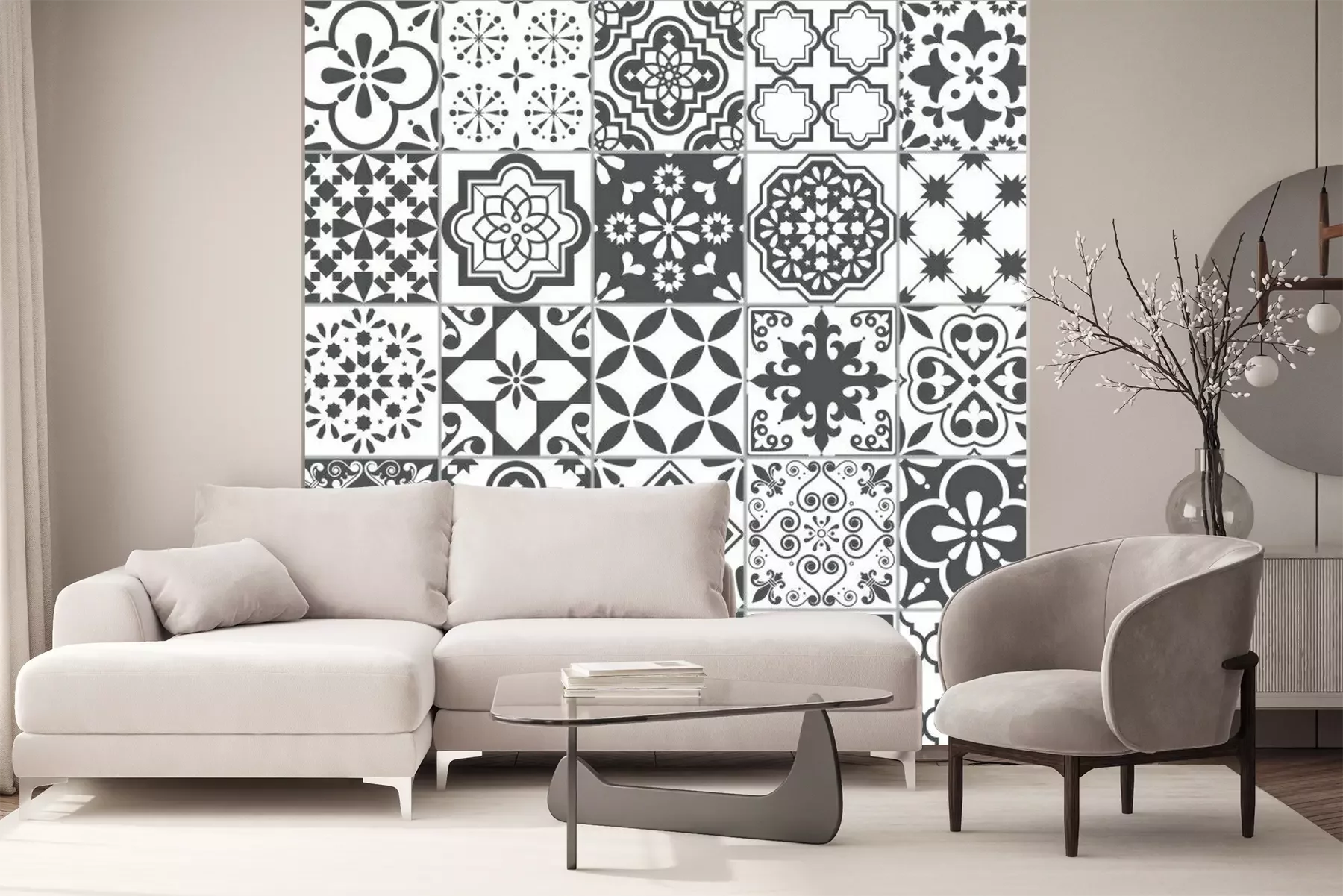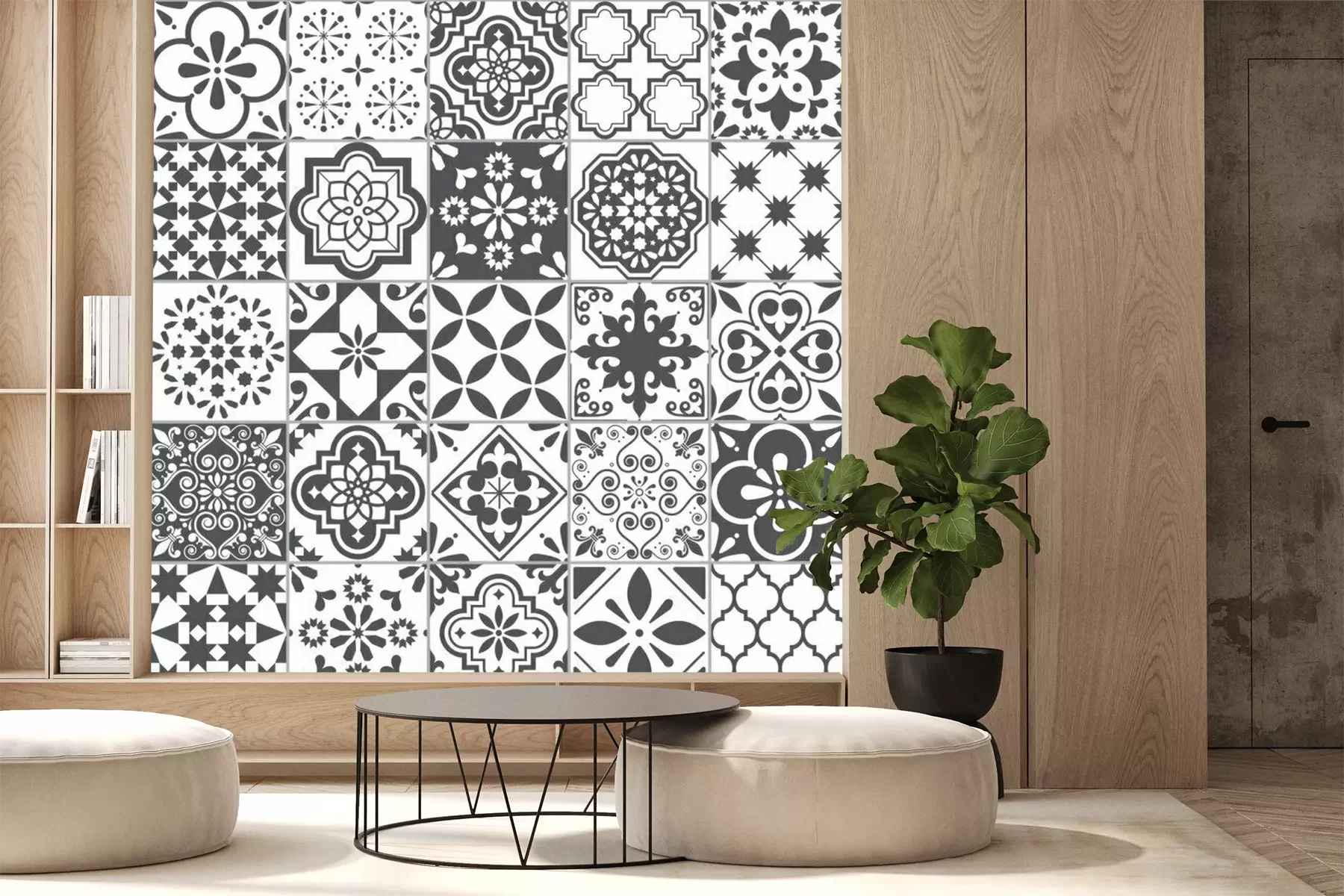 Sticker Lisbon geometric Azulejo tile vector pattern, Portuguese or Spanish retro old tiles mosaic, Mediterranean seamless gray and white design