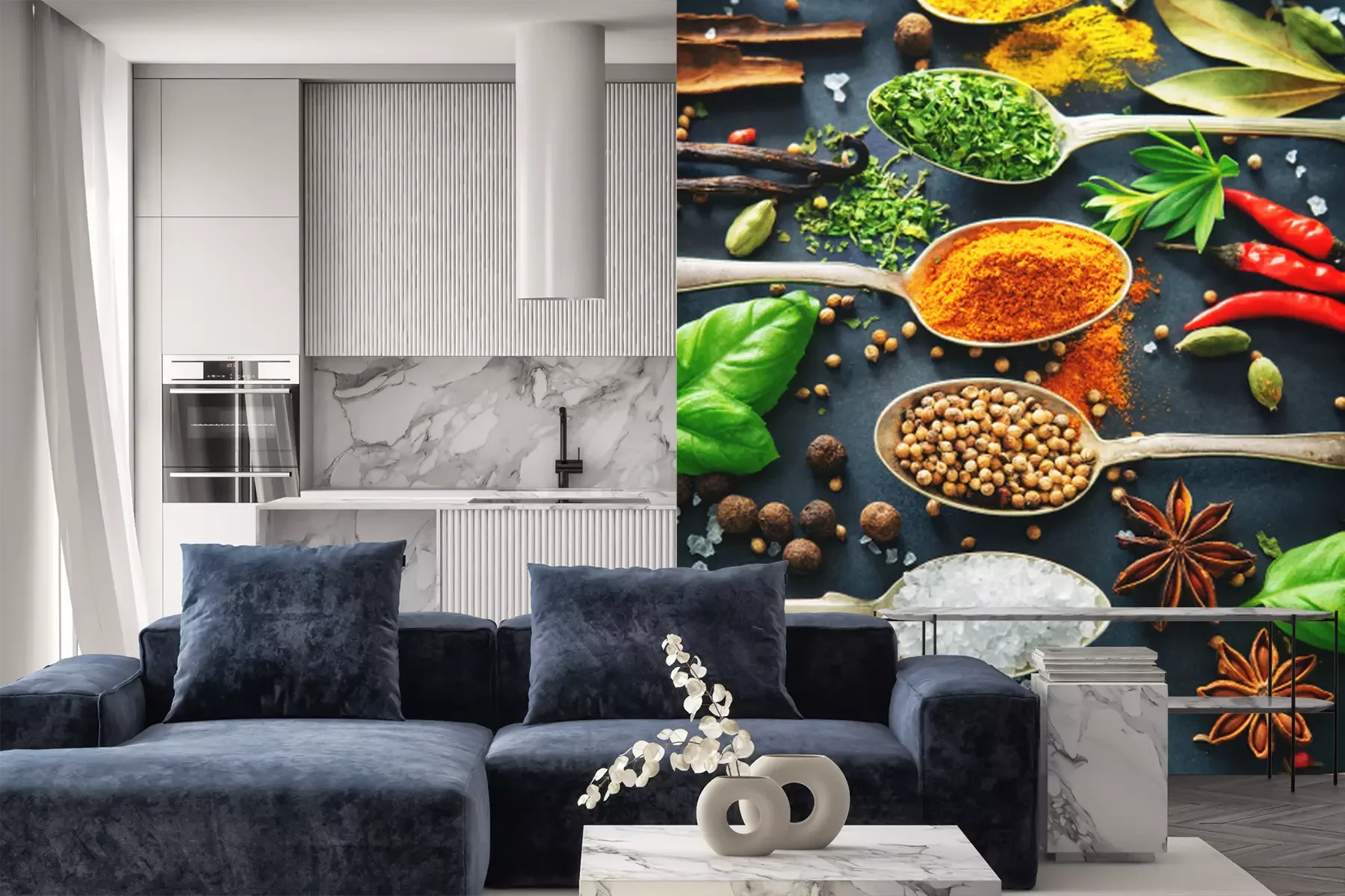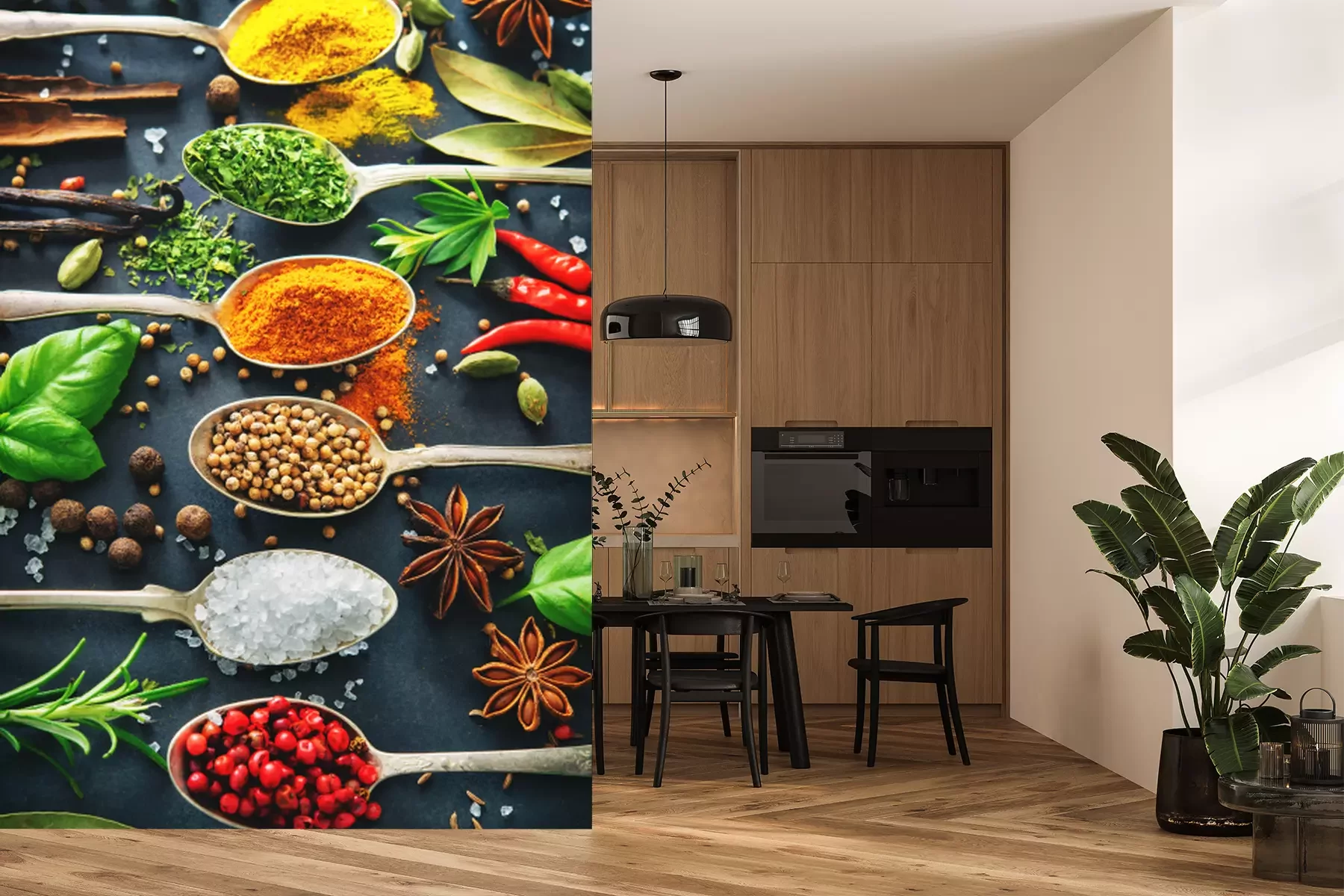 Sticker Löffel mit Gewürzen auf dunklem Hintergrund