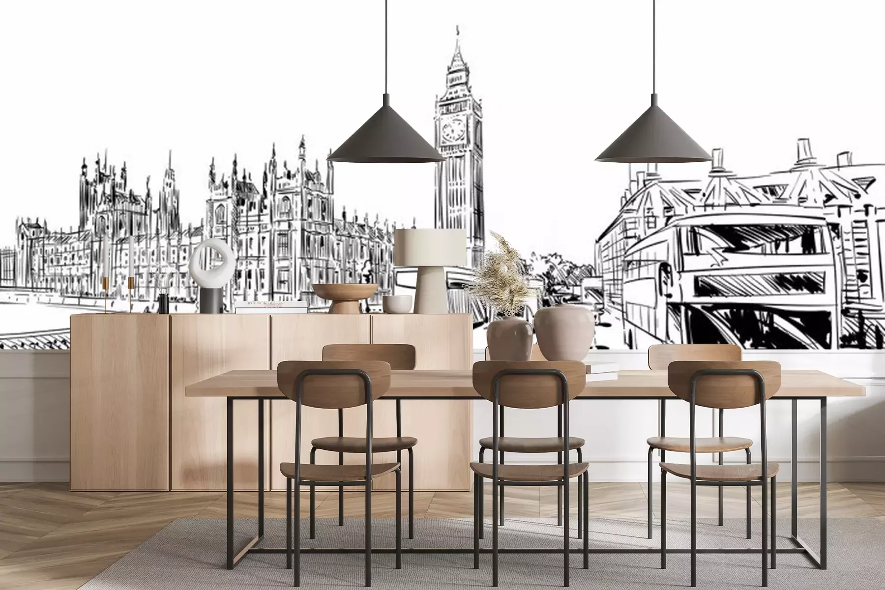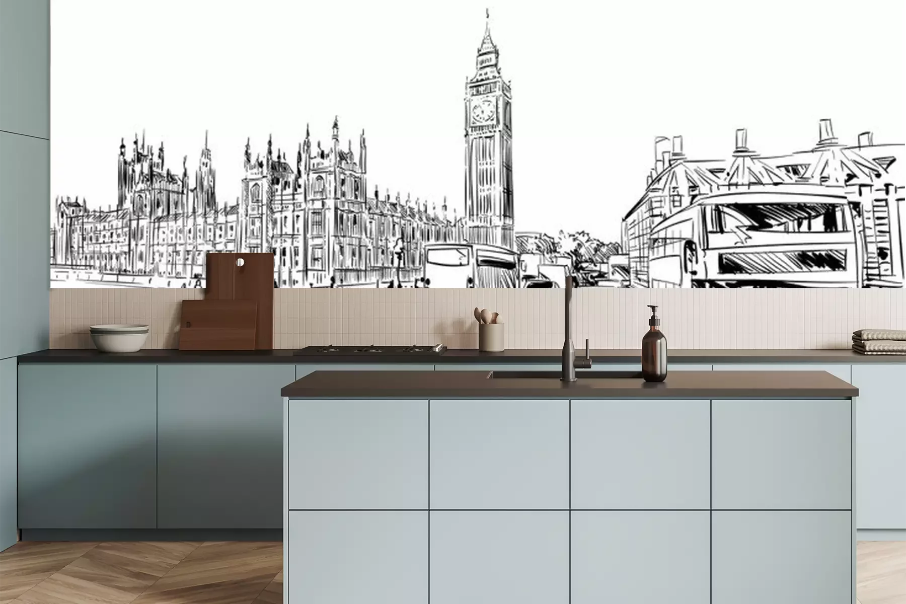 Sticker London Stadtbild Hand gezeichnet. Big Ben. England. Vektor-Illustration.