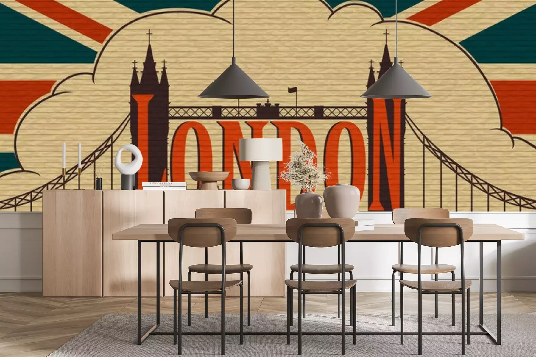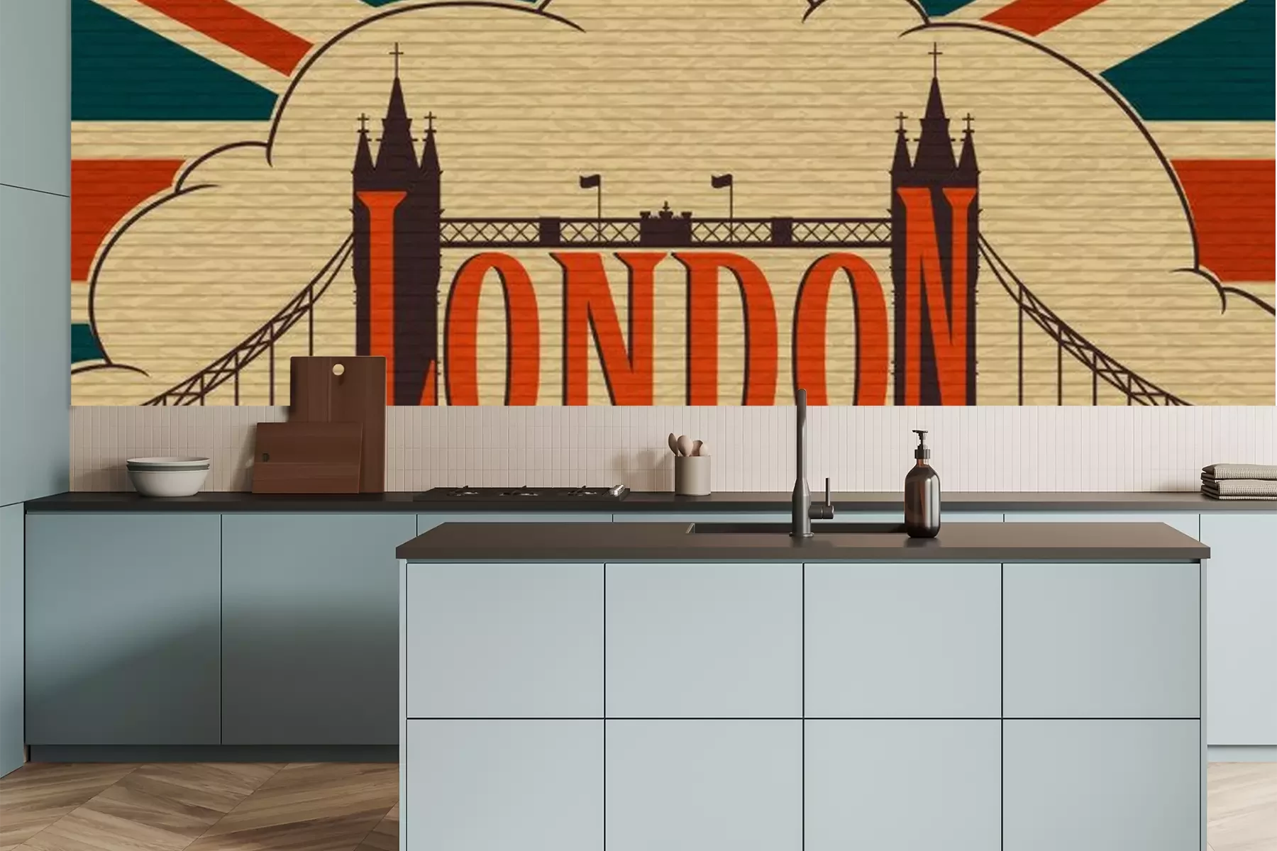 Sticker London, Tower Bridge auf dem Hintergrund der Flagge des Vereinigten Königreichs