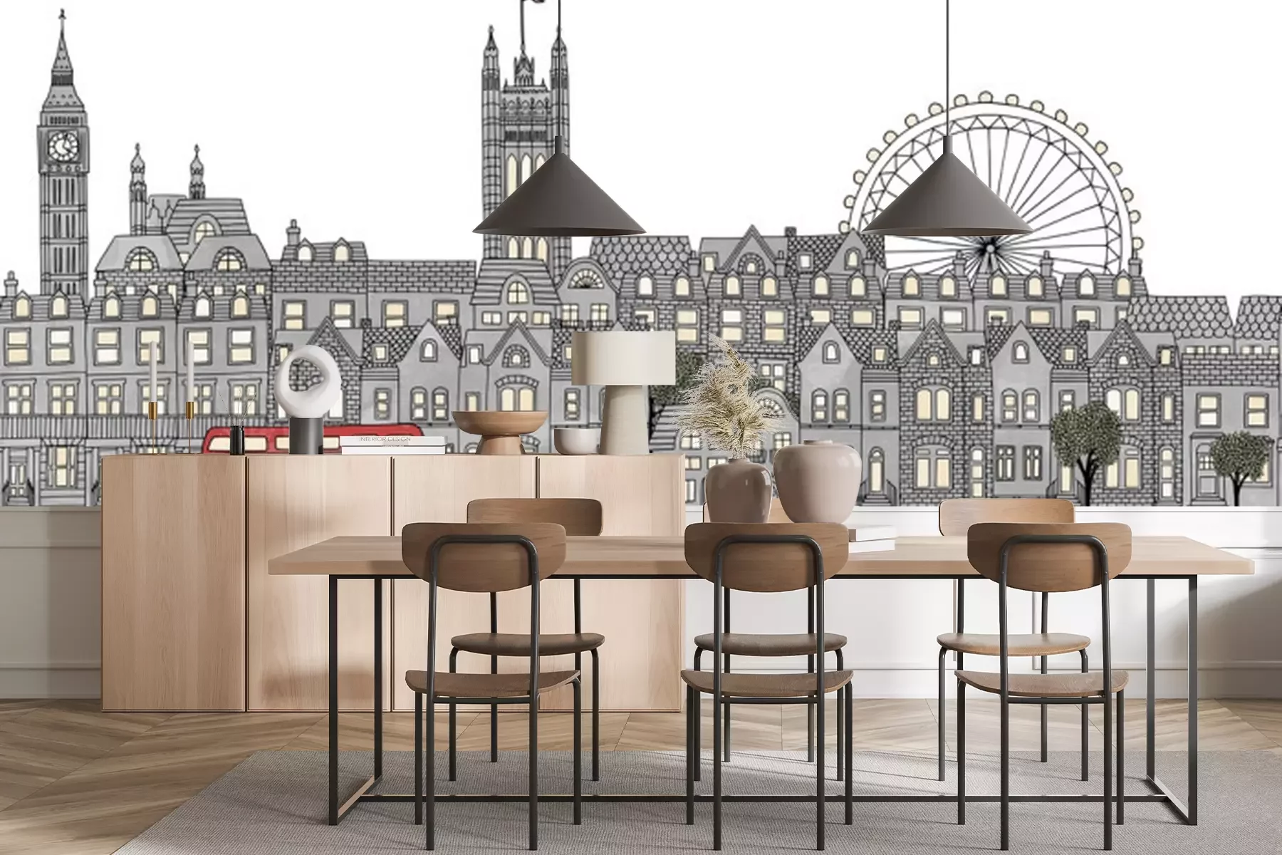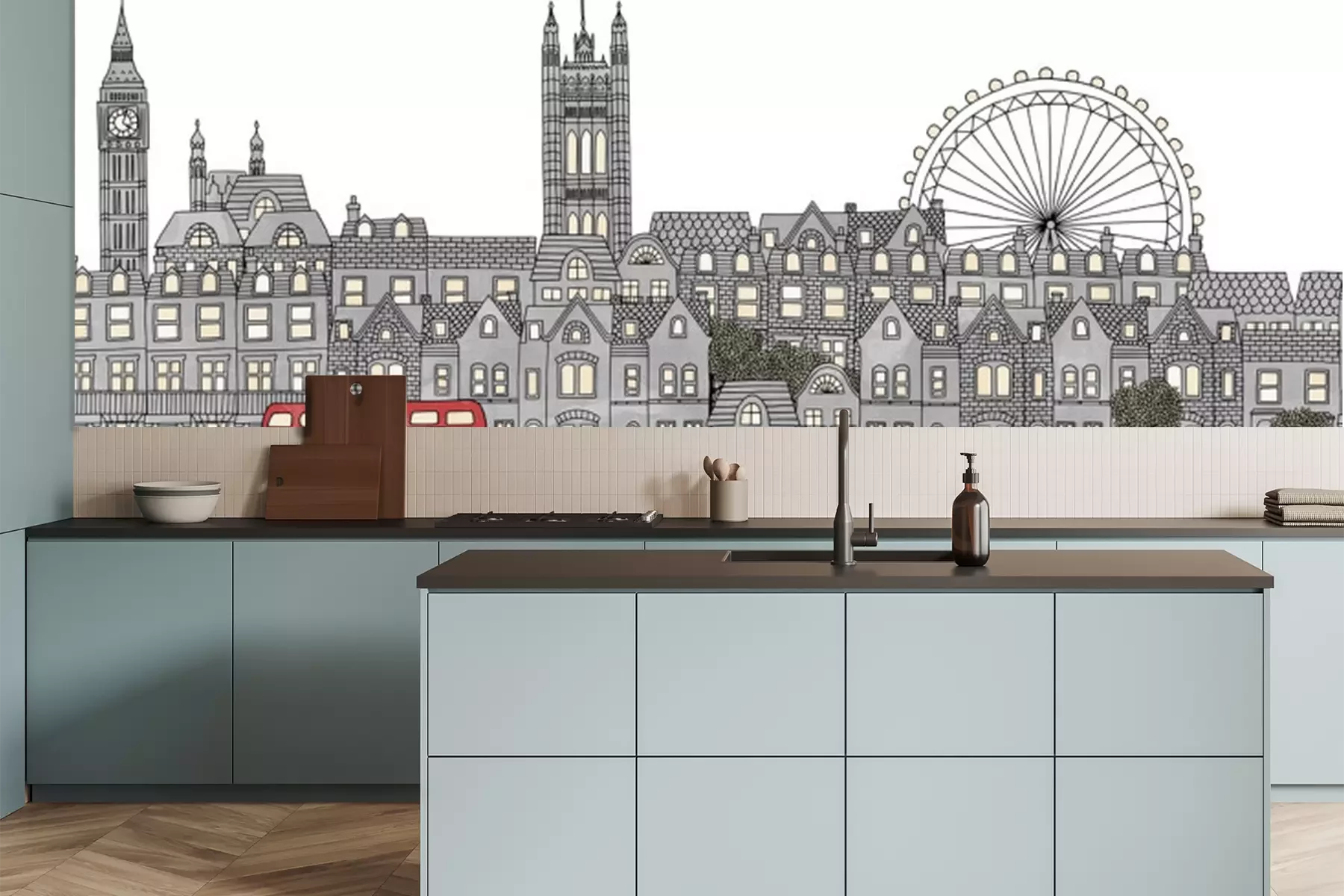 Sticker London, UK - nahtlose Banner der Skyline von London, handgezeichnete und digital farbige Tinte Illustration