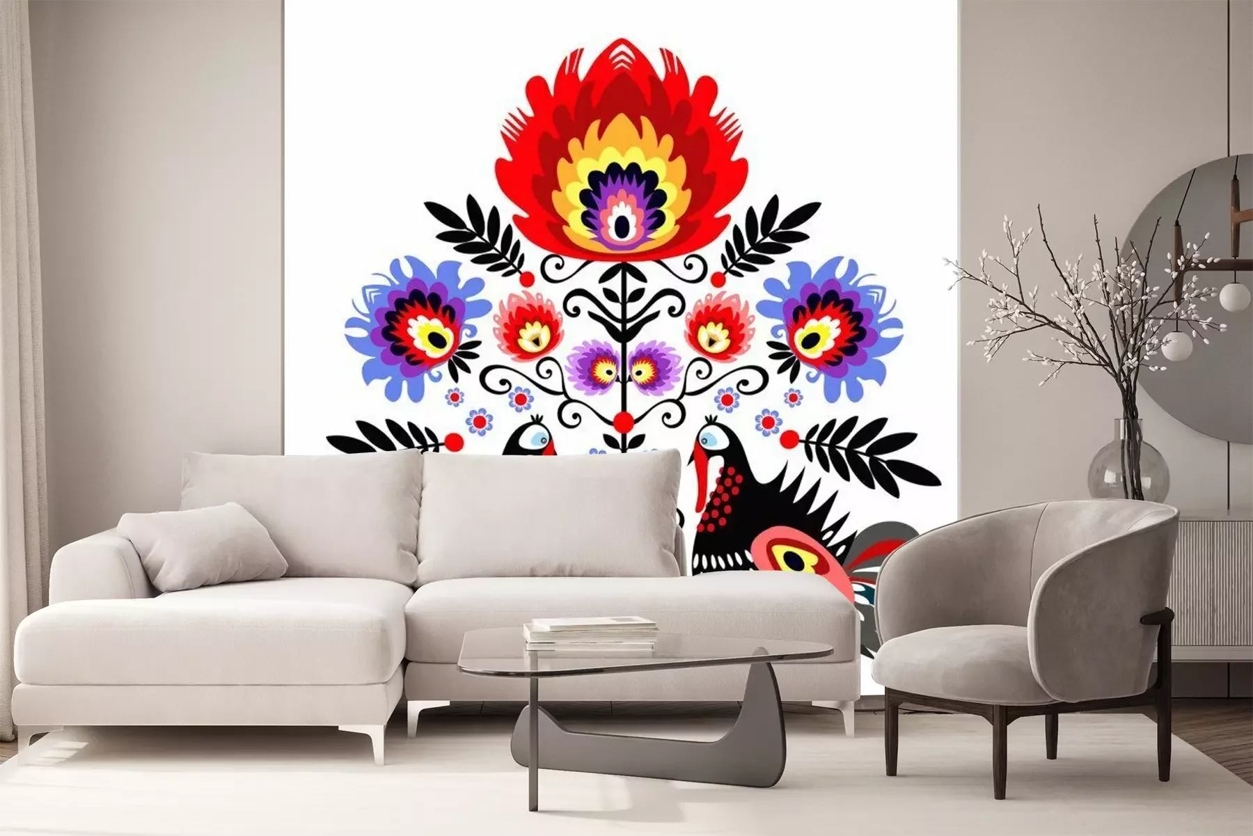 Sticker Ludowa wycinanka z indykami